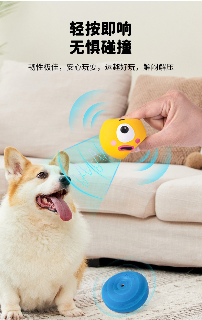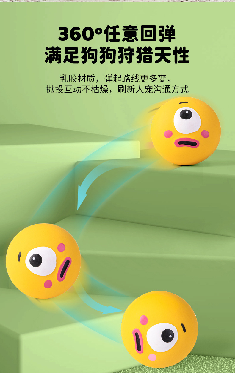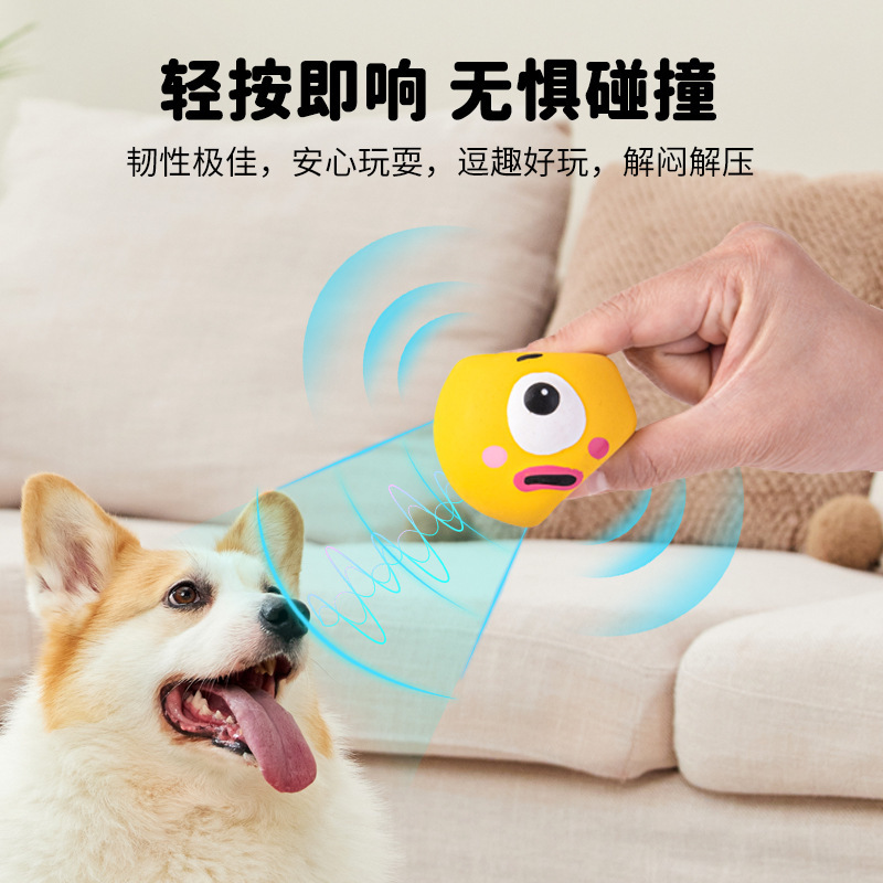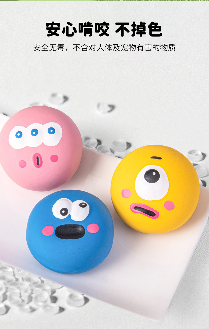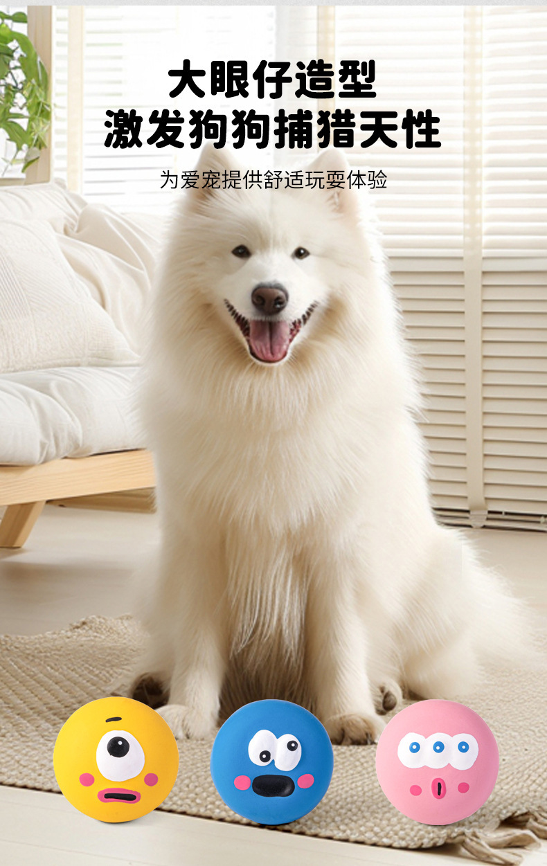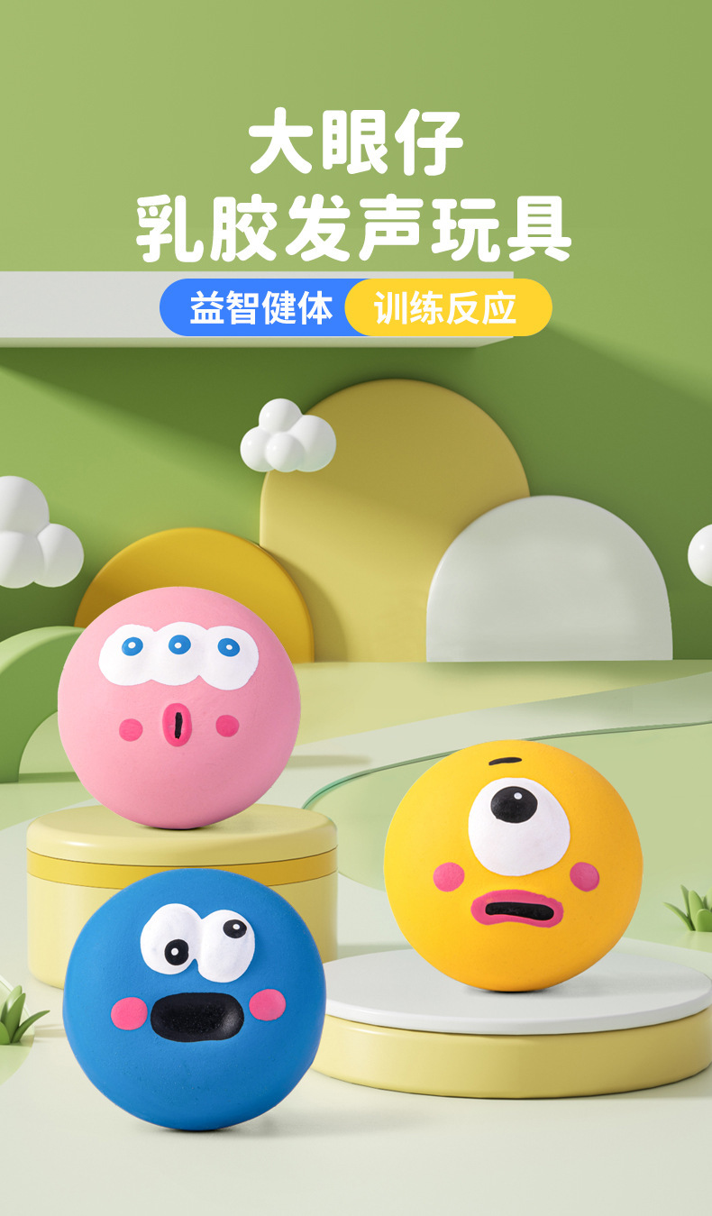 新款跨境宠物卡通大眼狗狗玩具发声球乳胶耐咬磨牙玩具源头工厂