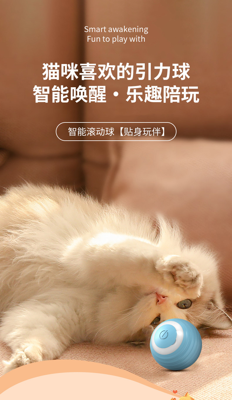宠物玩具引力智能滚滚球跳跳球自动逗猫球发声磨牙耐咬自嗨解闷球