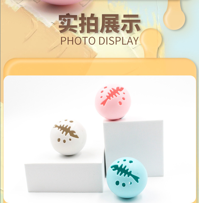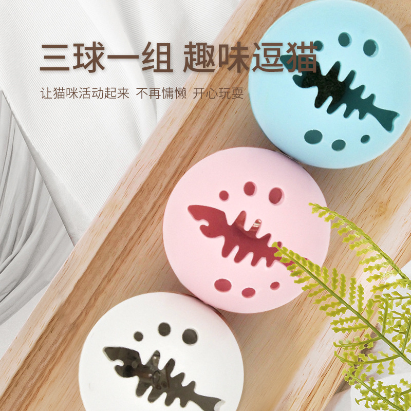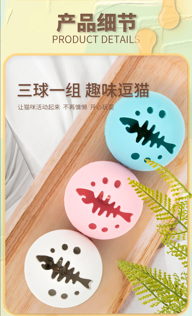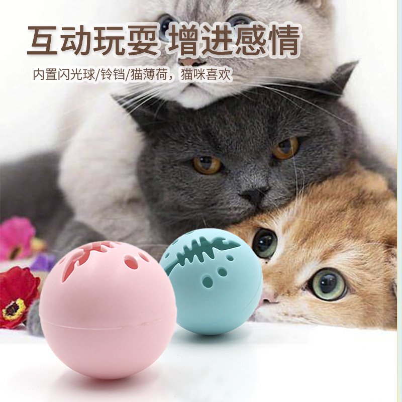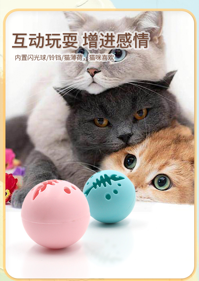 猫咪三色鱼骨逗猫球可发光逗猫薄荷铃铛球啃咬球宠物猫玩具批发