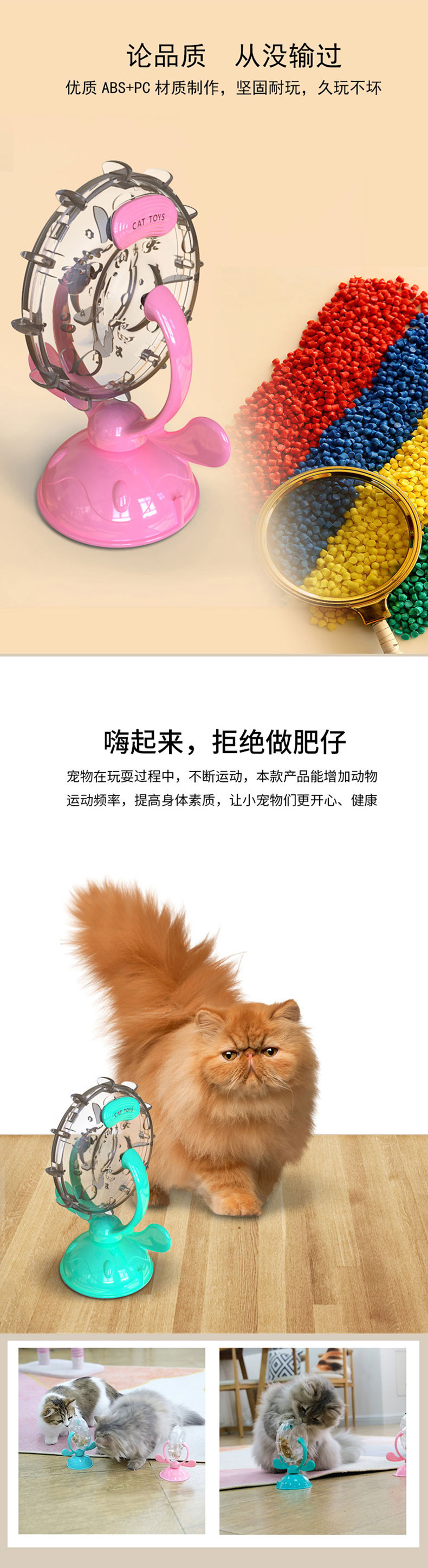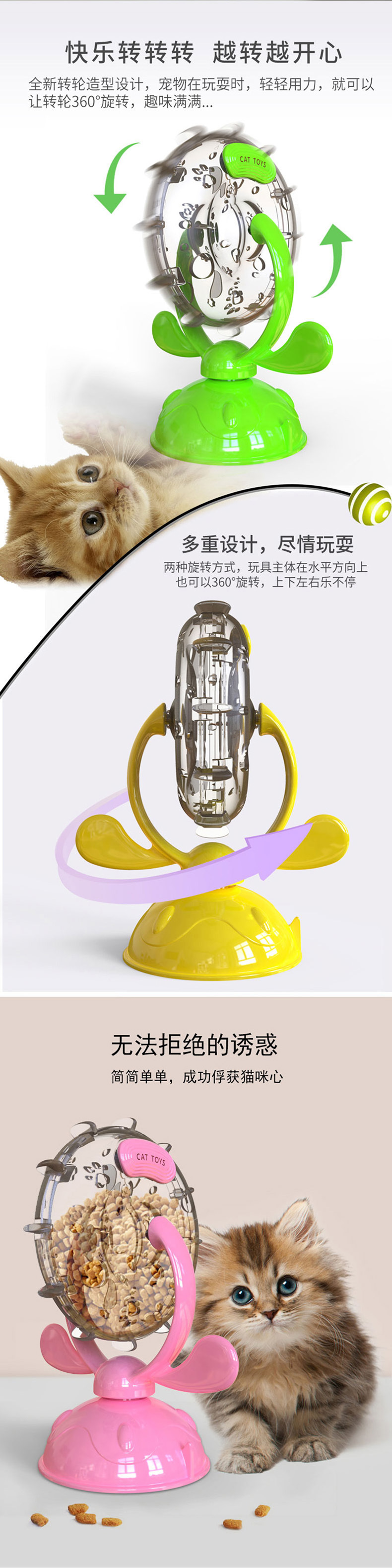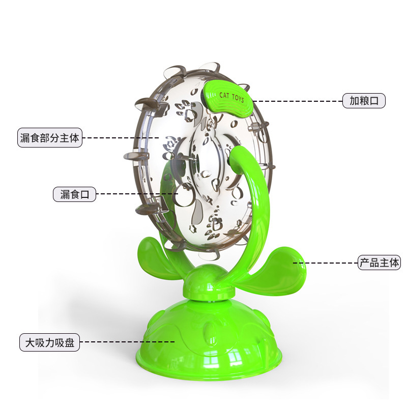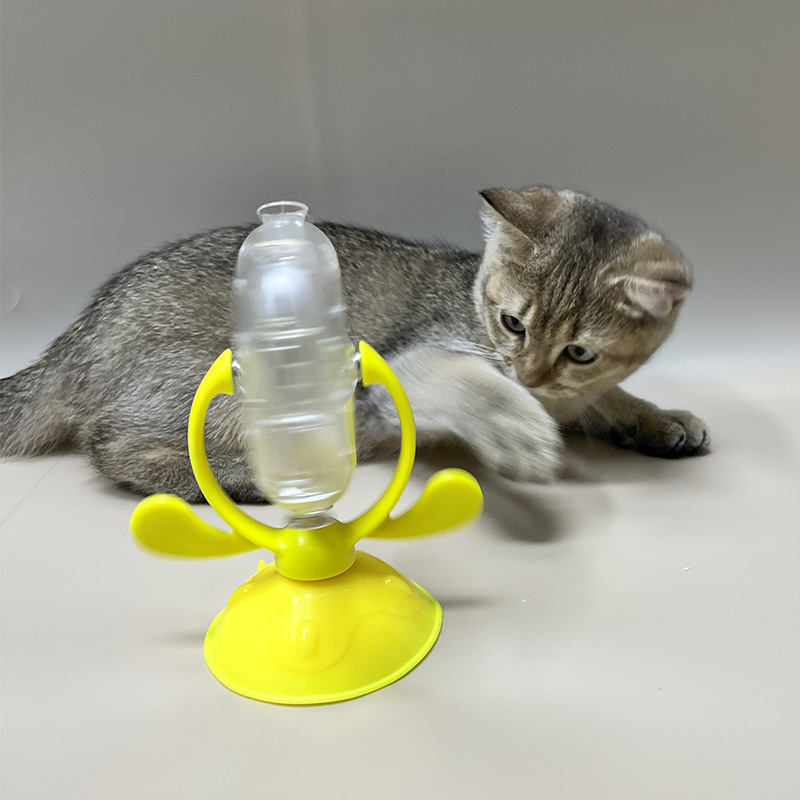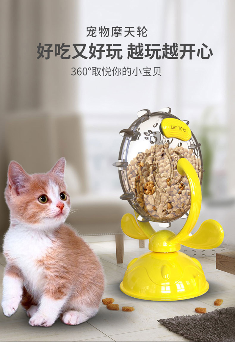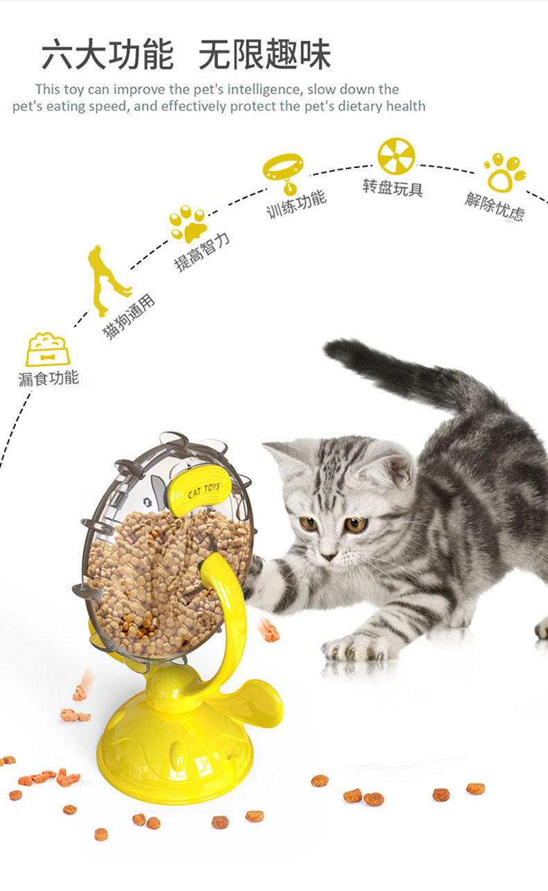 亚马逊新款猫猫玩具逗猫慢食漏食器猫咪旋转风车转盘现货批发