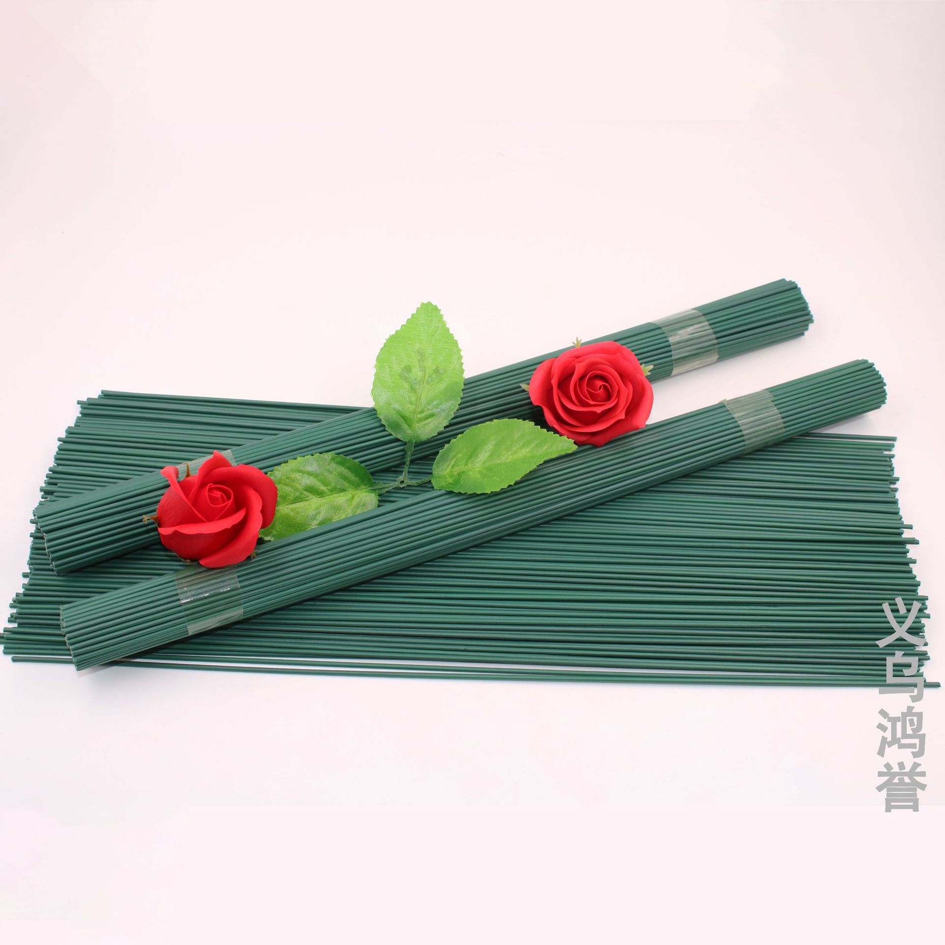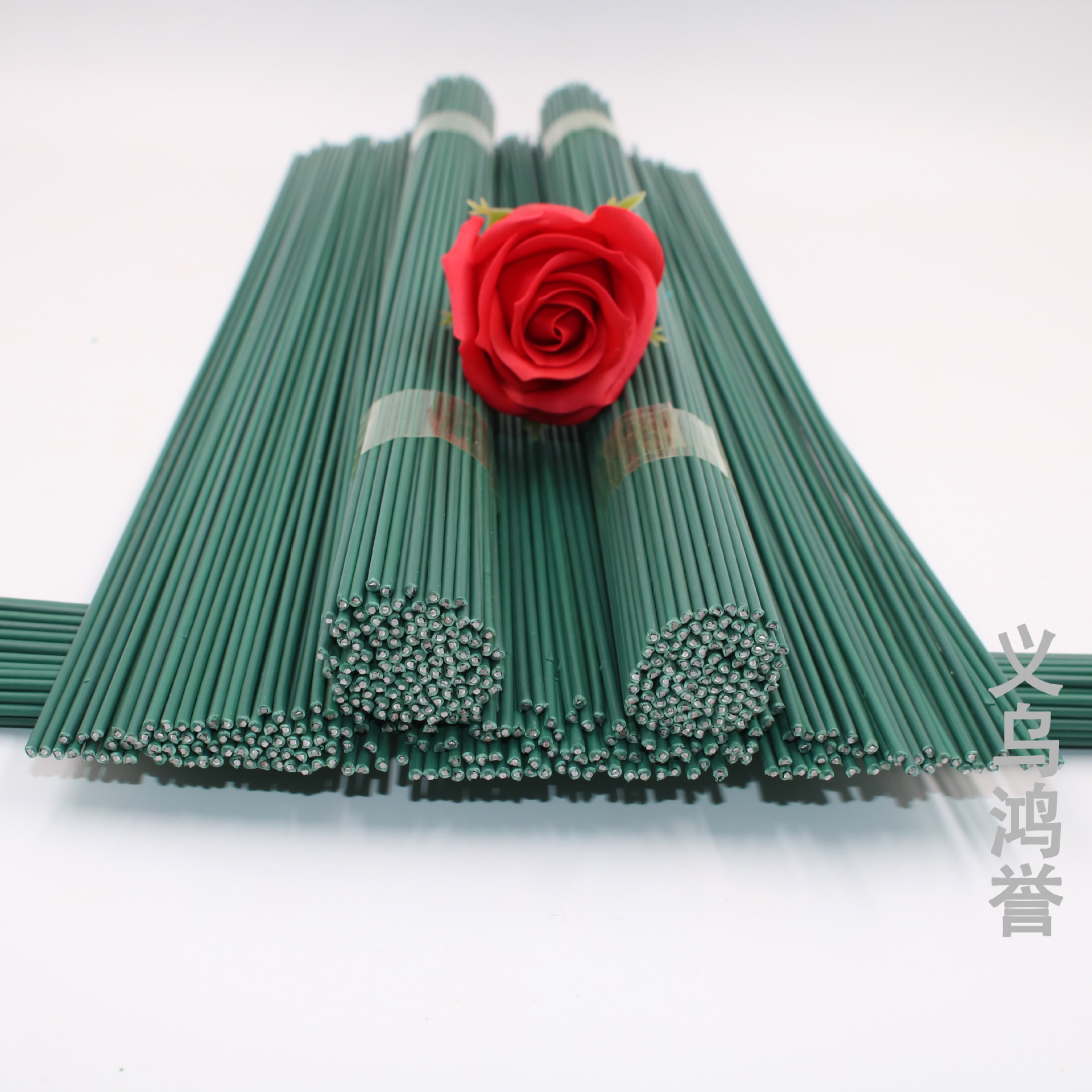 热销DIY2毫米胶包绿色花杆 2号花艺铁丝香皂花玫瑰花仿真花花杆
