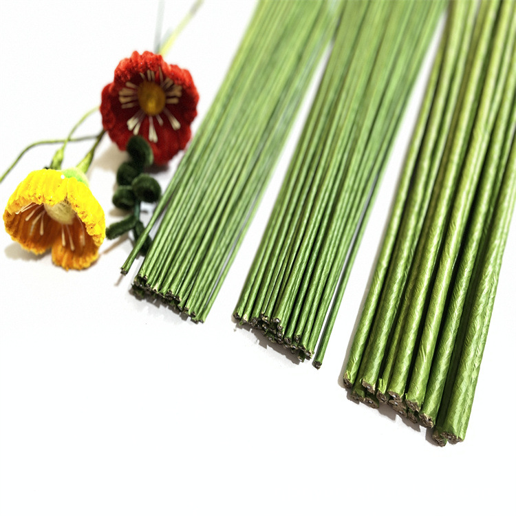 厂家直销绿色纸包花杆玫瑰百合花杆花杆铁丝批发仿真花杆花艺铁丝