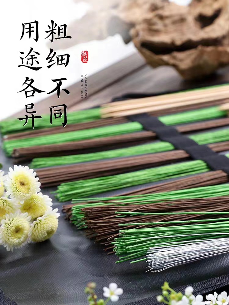 纸包铁丝24号22号花艺细铁丝叶脉皱纹纸花翻糖花永生花纸包铁线