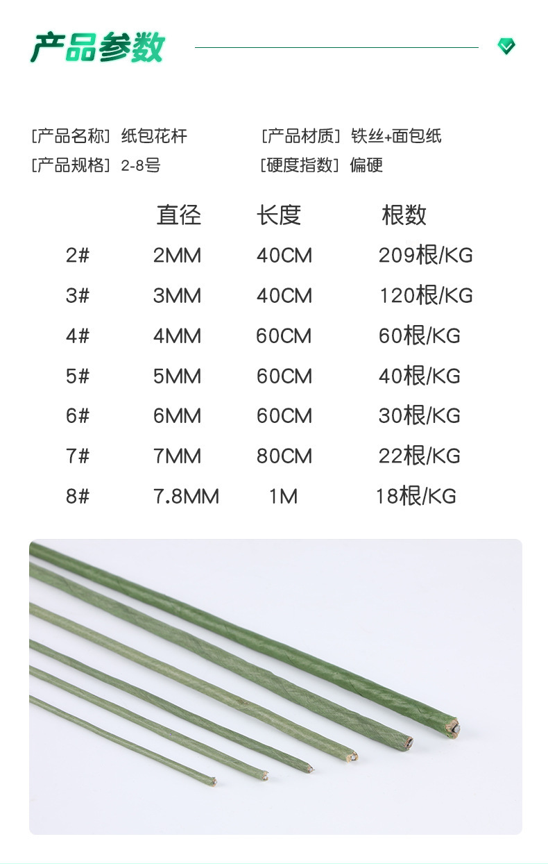 工厂直销咖啡色深绿色纸包花杆松子莲蓬花杆花杆铁丝批发仿真花杆
