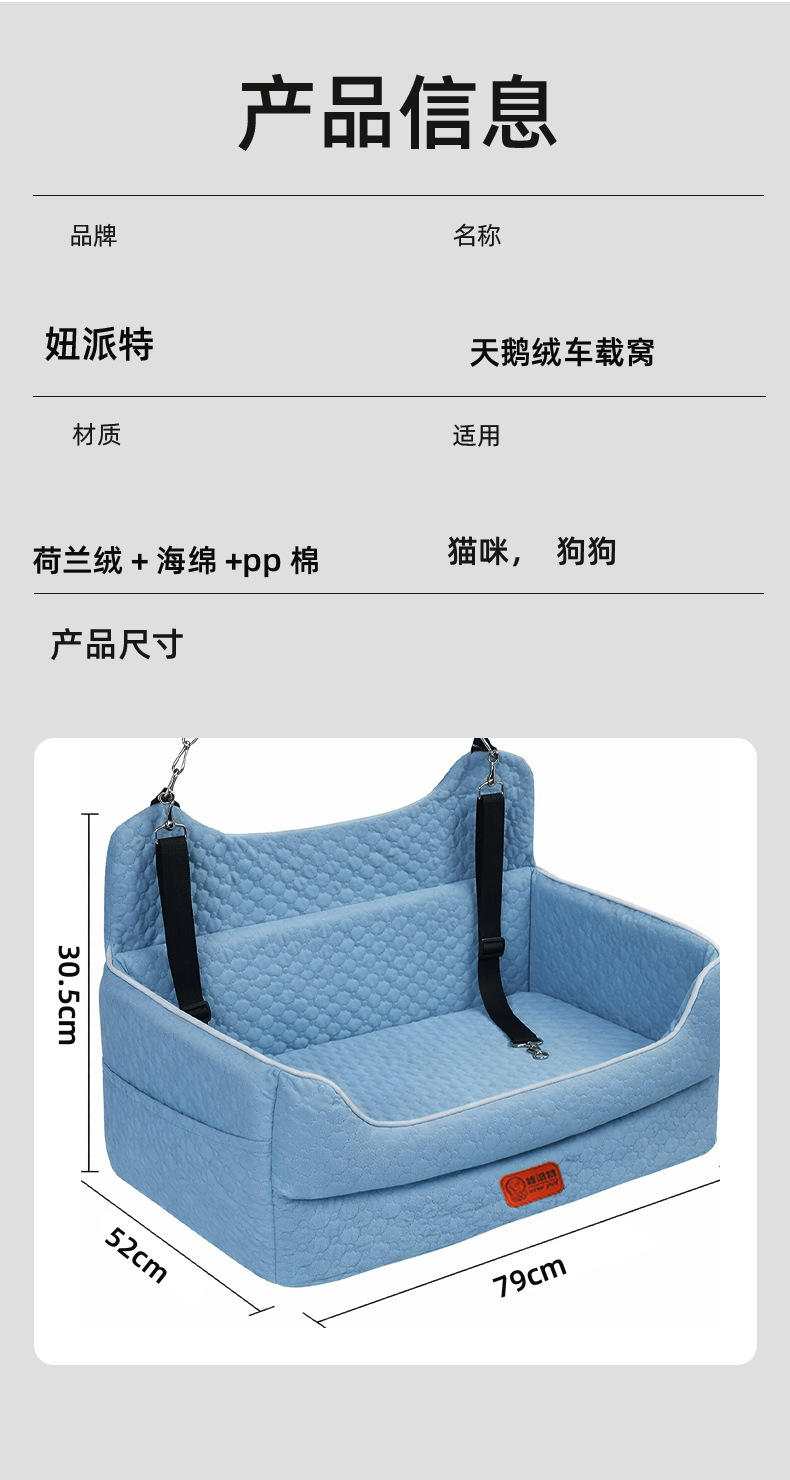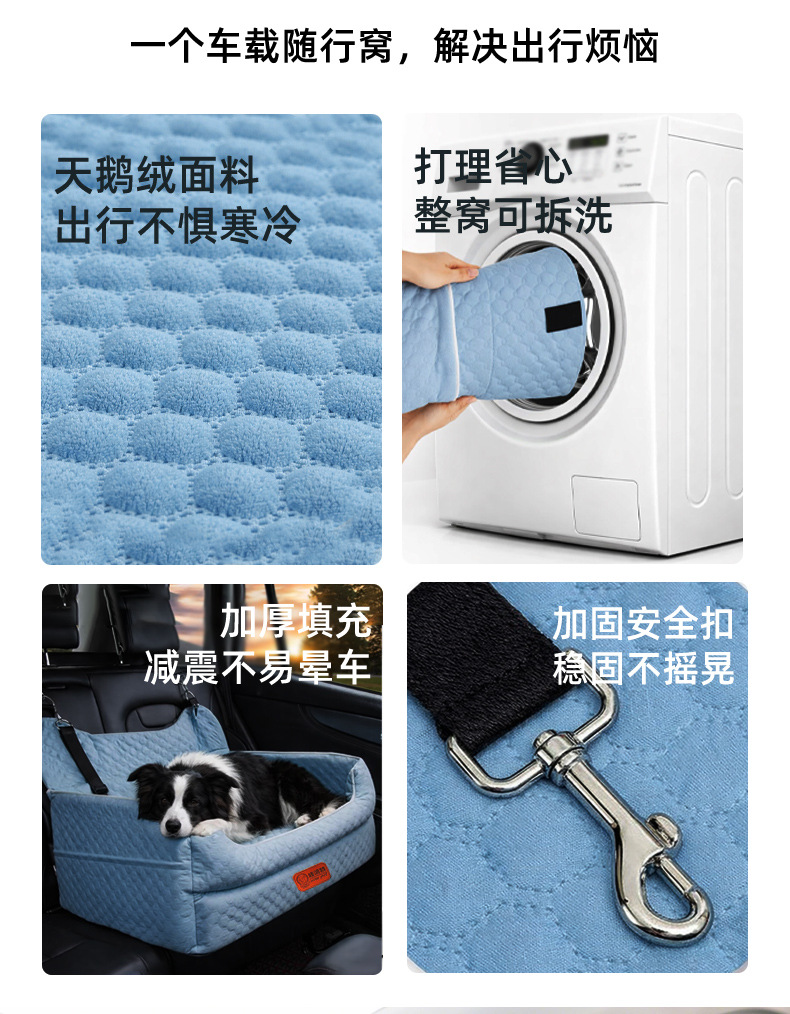 跨境热销车载窝中大型犬窝可拆洗易清洁底部防滑便携宠物安全座椅
