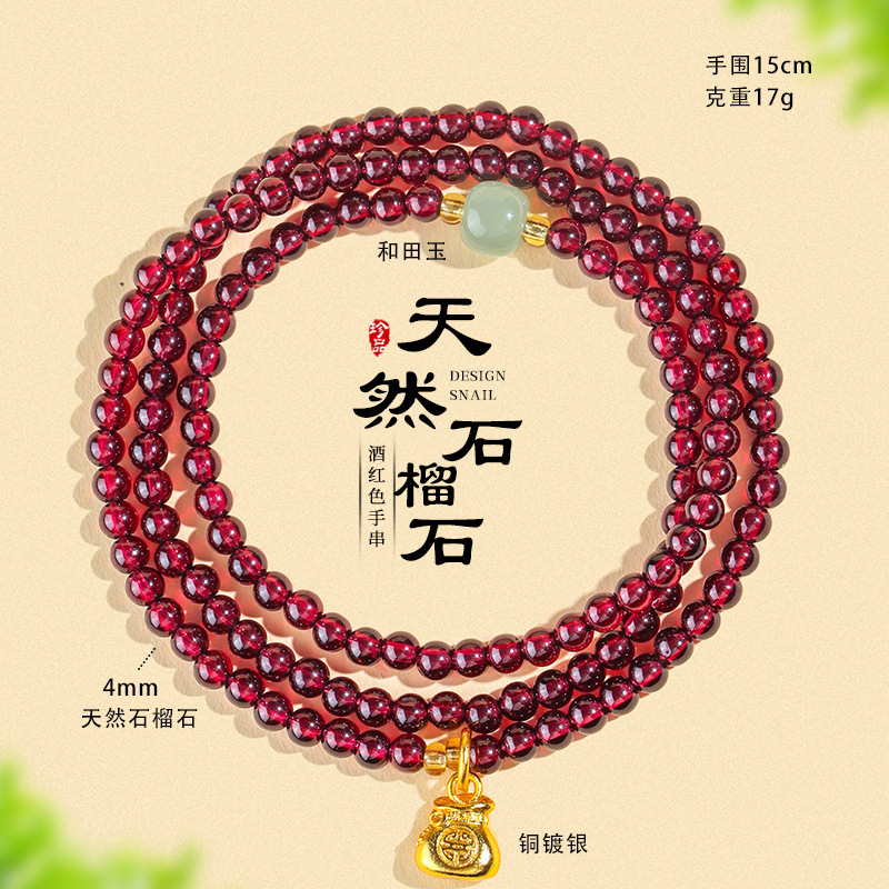 天然酒红真石榴石手链女草莓晶转珠手饰女多圈多层水晶手串批发