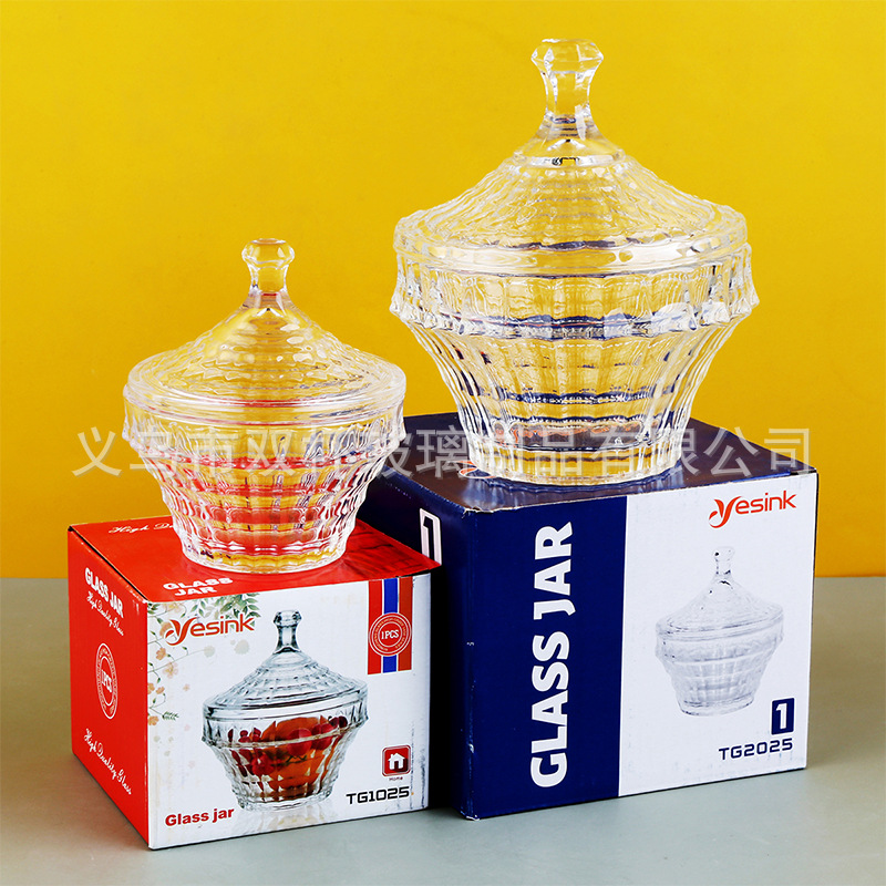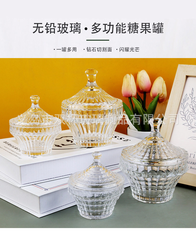 简约欧式玻璃糖果罐透明玻璃带盖储物罐家用杂物收纳盒厨房调味罐