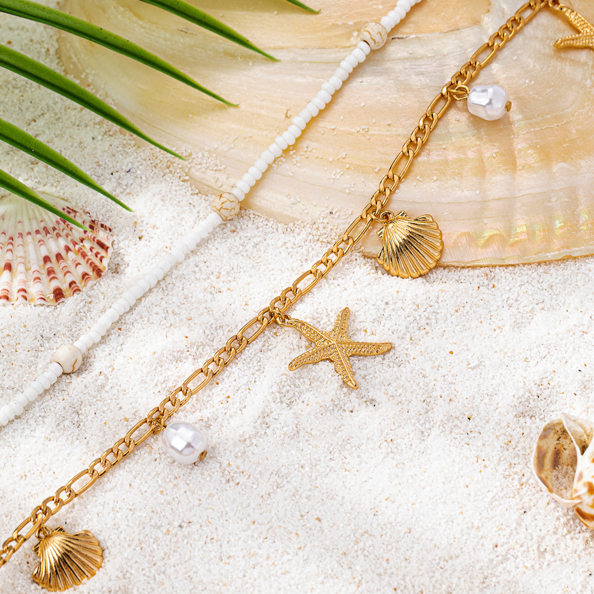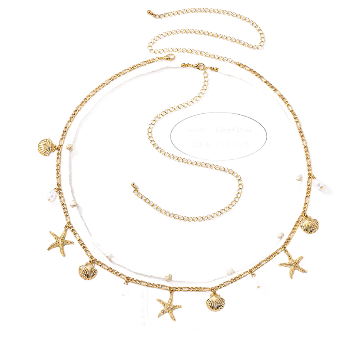 跨境爆款海边度假风海星贝壳腰链女波西米亚沙滩配饰金属链身体链