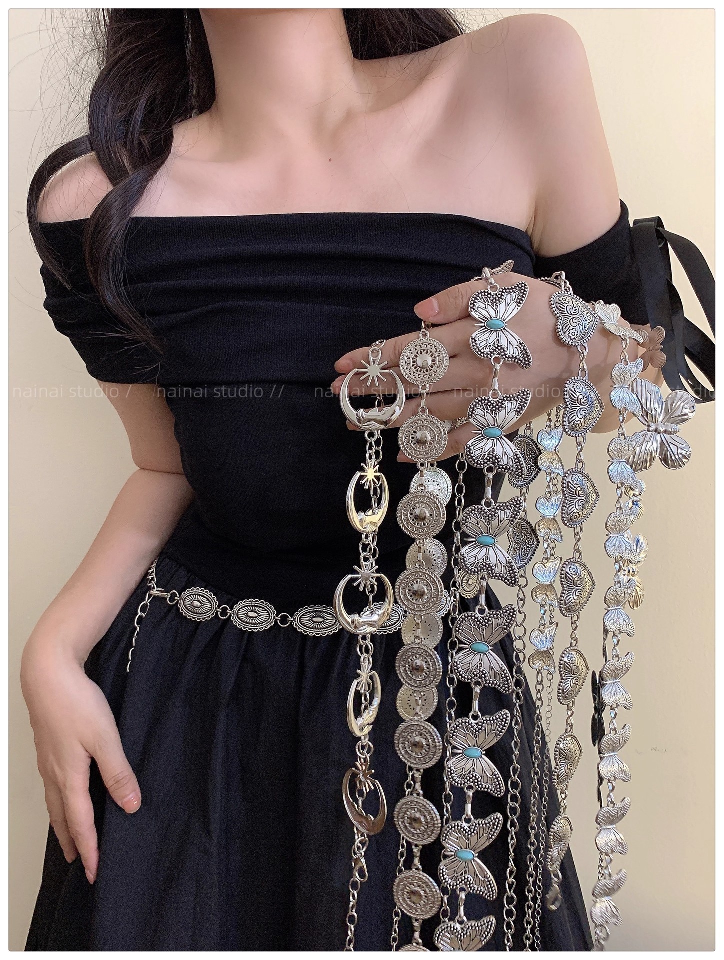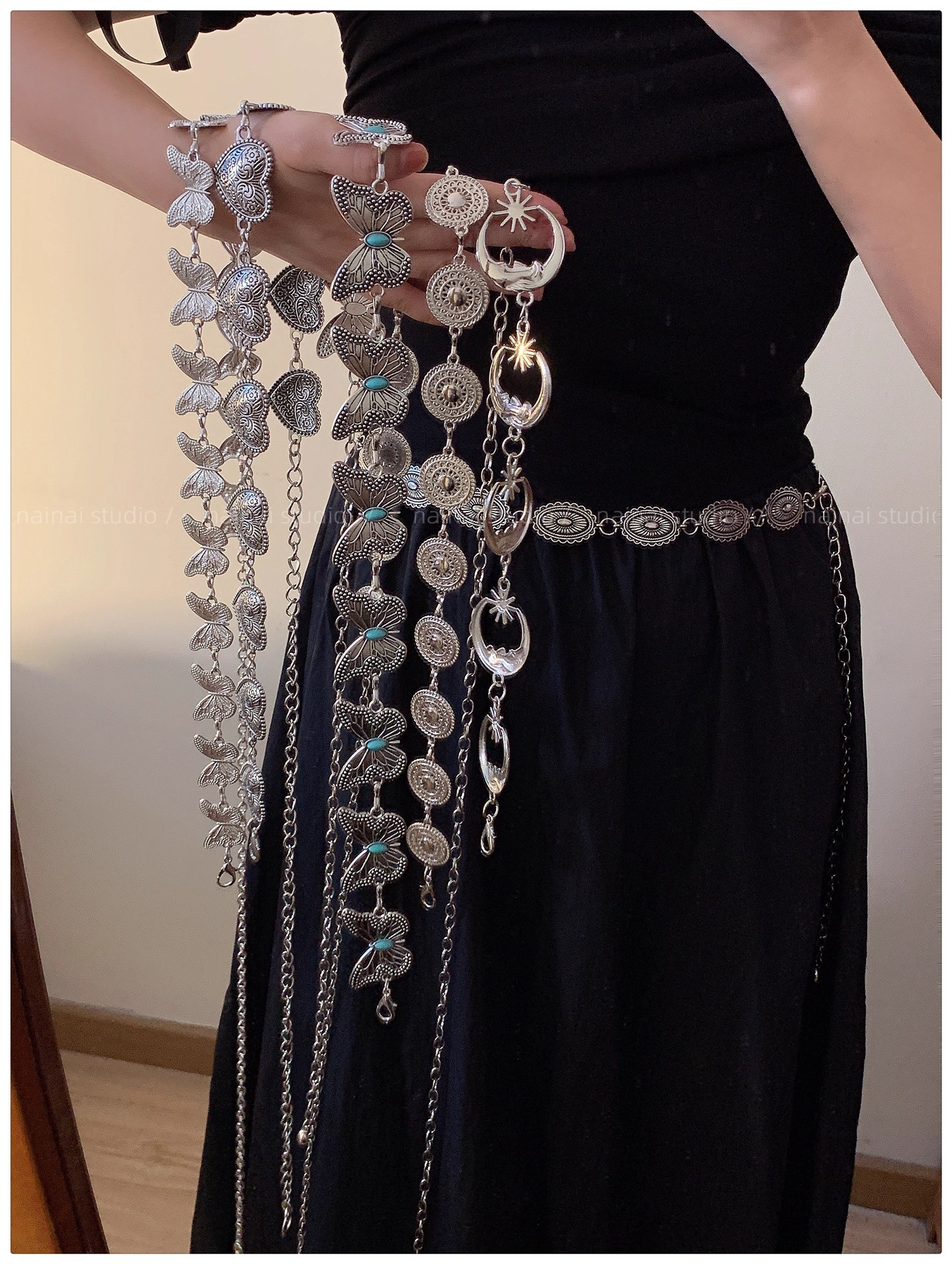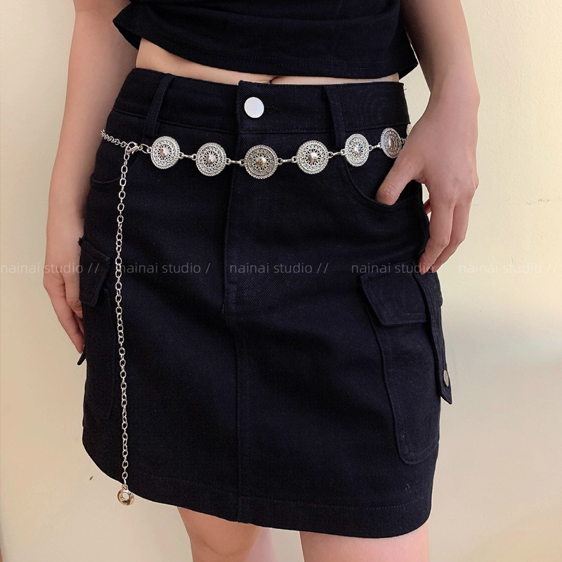 欧美跨境饰品时尚爱心腰链女复古百搭金属月亮圆环身体链厂家批发