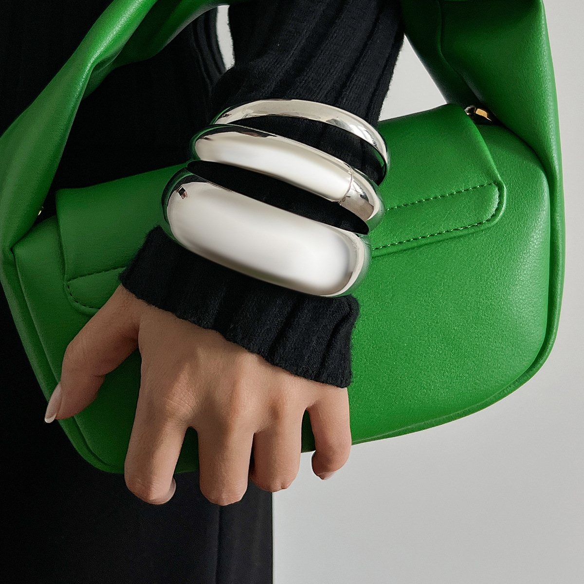 欧美跨境时尚金属风光面手镯套装女 个性夸张螺纹宽手环bracelet