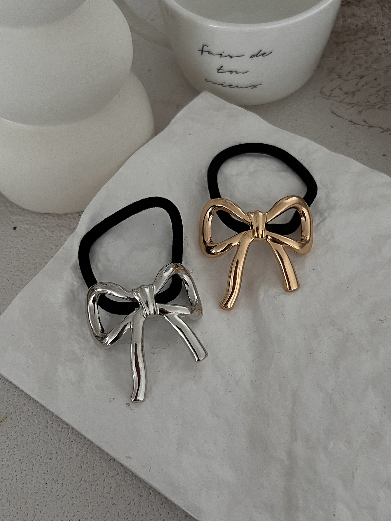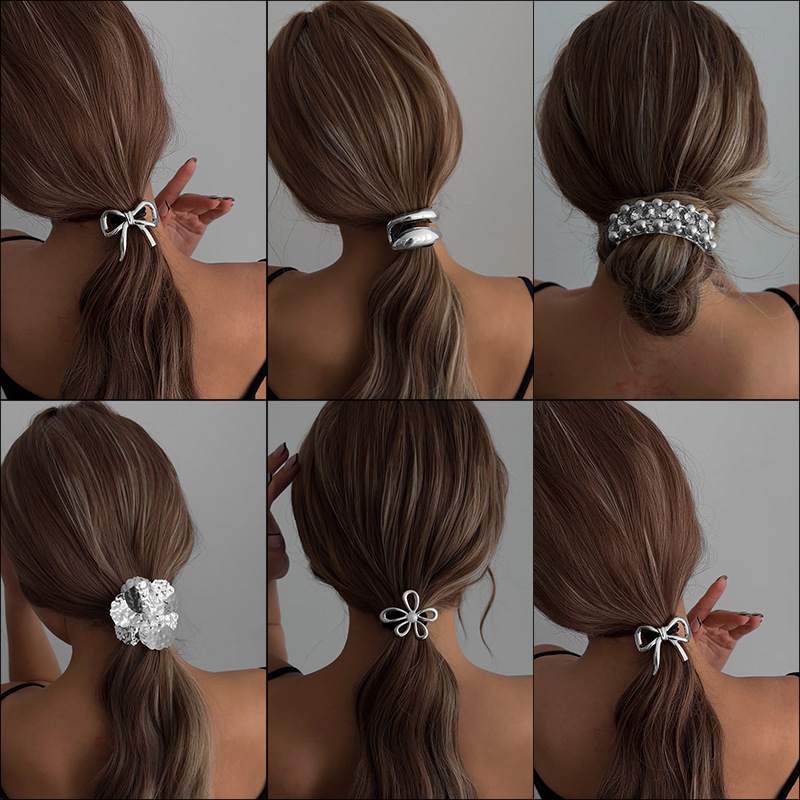 外贸爆款发饰欧美风跨境高级感马尾辫发圈时尚蝴蝶结合金头饰发绳