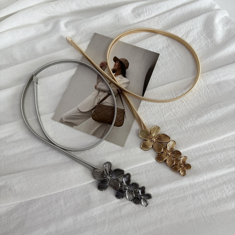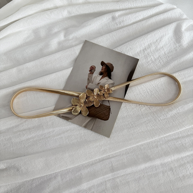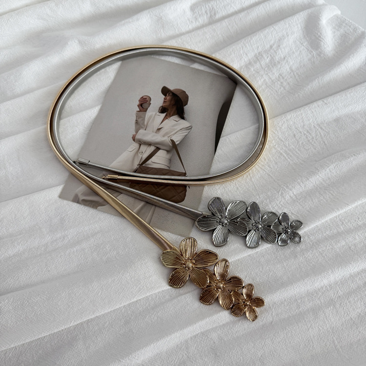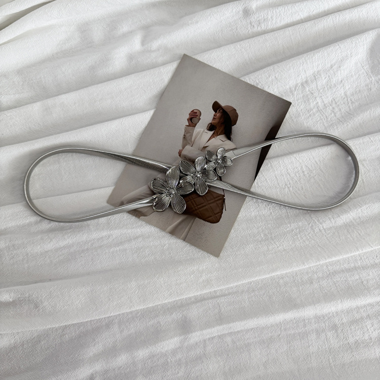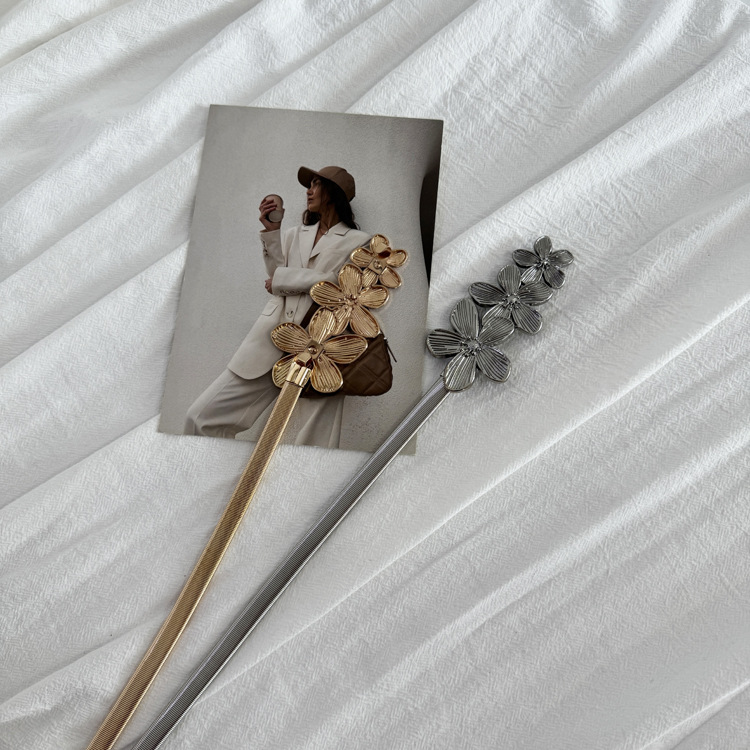 欧美时髦花朵腰带女金属弹力皮带百搭装饰连衣裙子松紧细腰封配饰