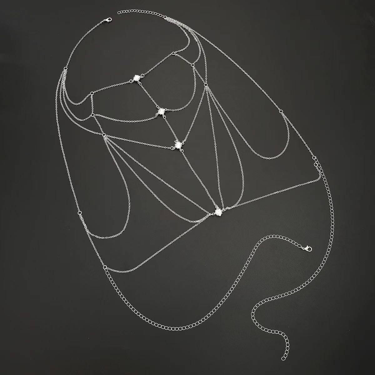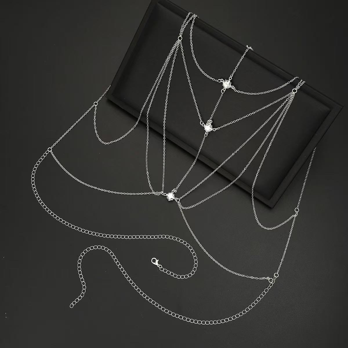 欧美跨境新款珍珠身体链时尚锁骨链 ins轻奢风珍珠火辣高级感胸链