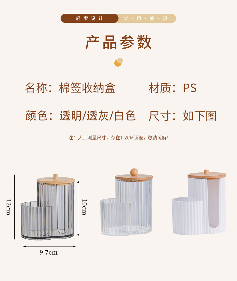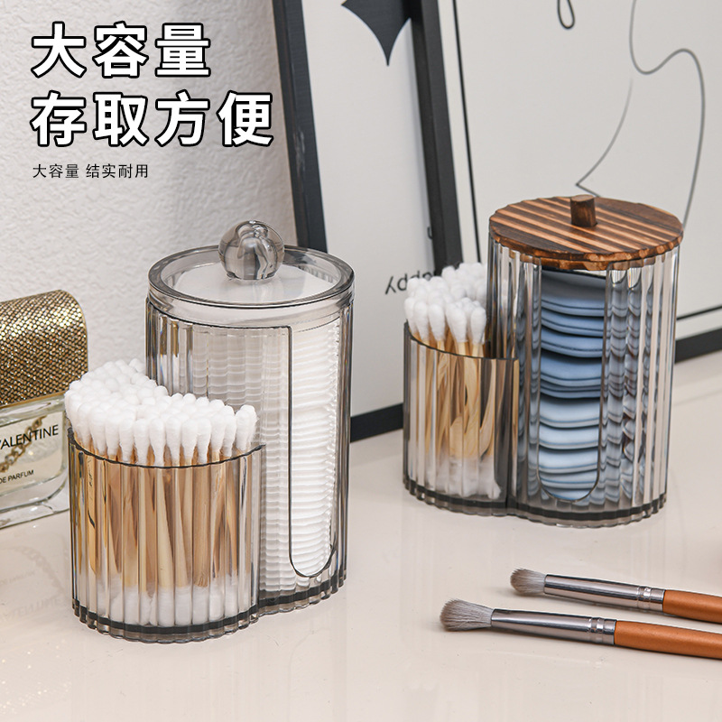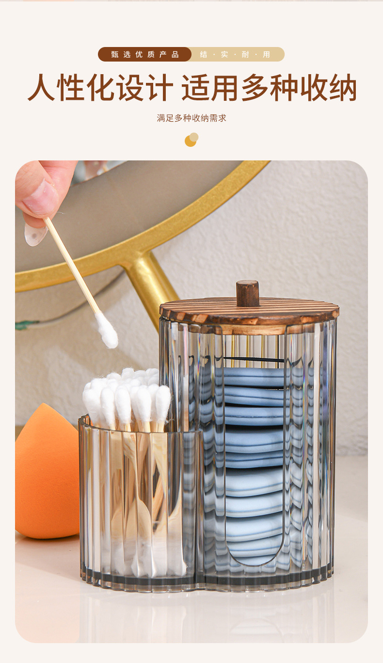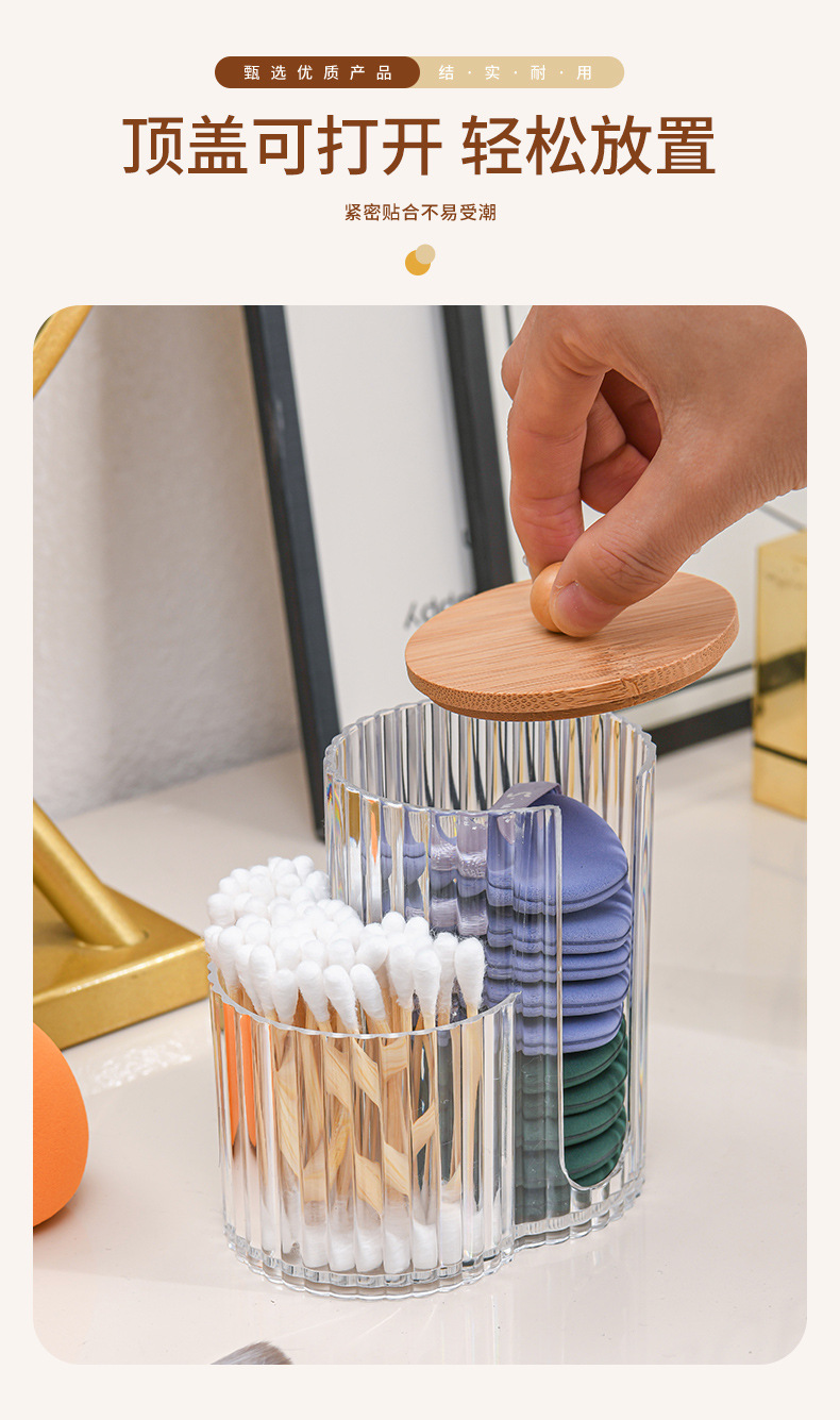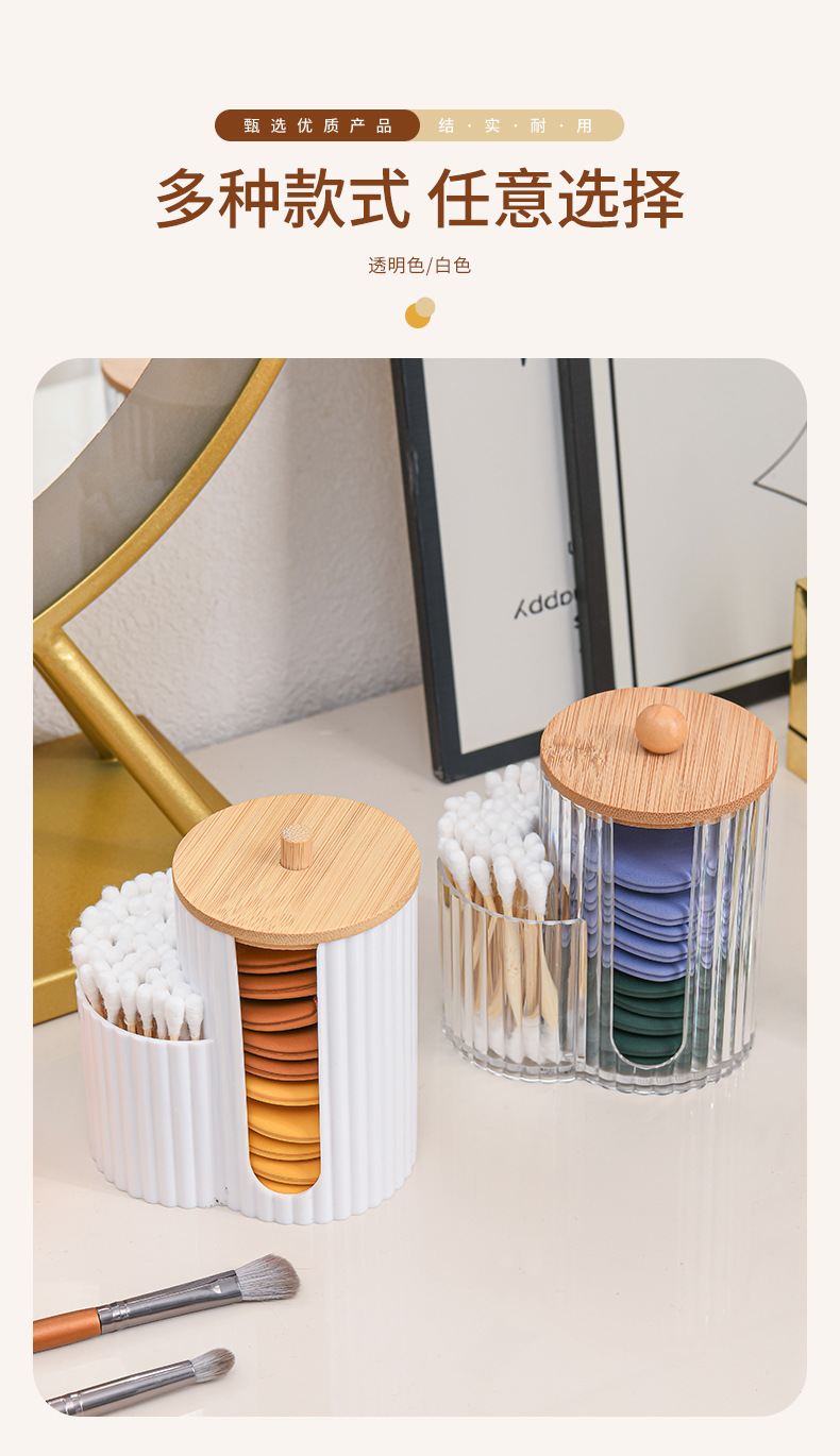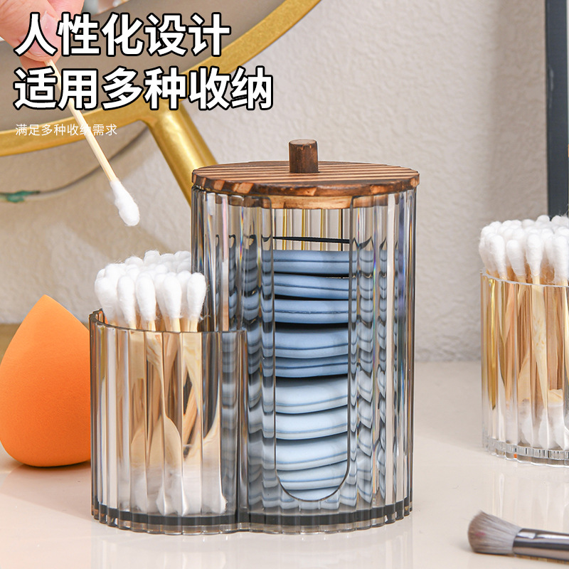 二合一连体竹盖棉签盒卸妆棉双孔收纳盒带盖防尘化妆棉粉扑整理盒