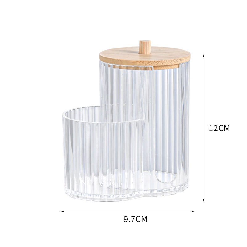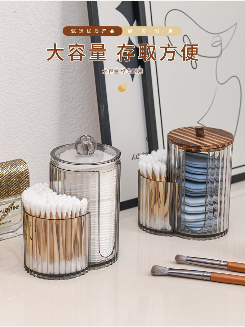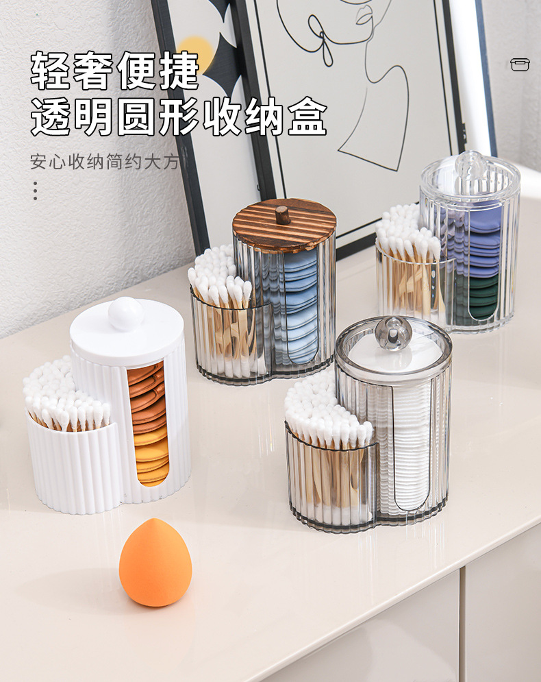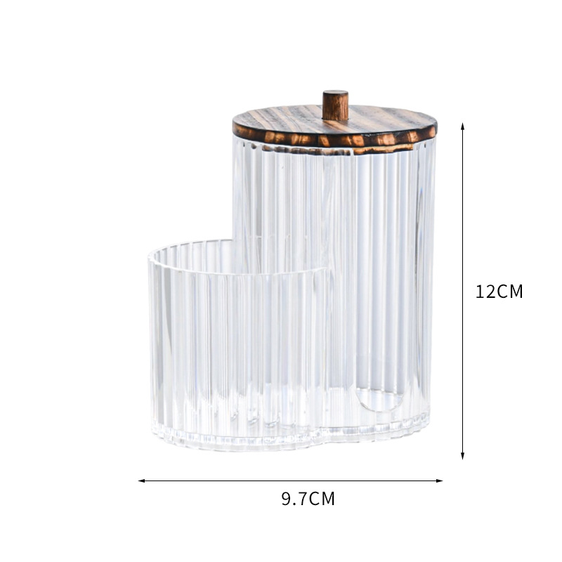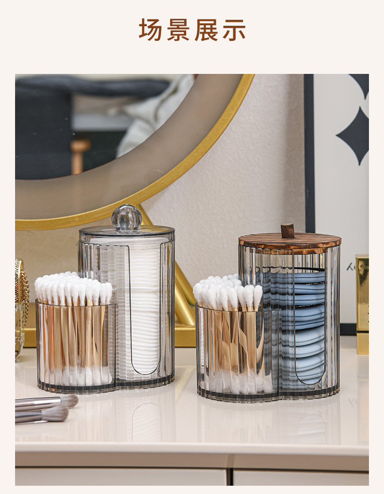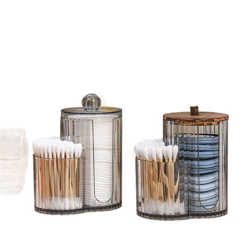 二合一连体竹盖棉签盒卸妆棉双孔收纳盒带盖防尘化妆棉粉扑整理盒