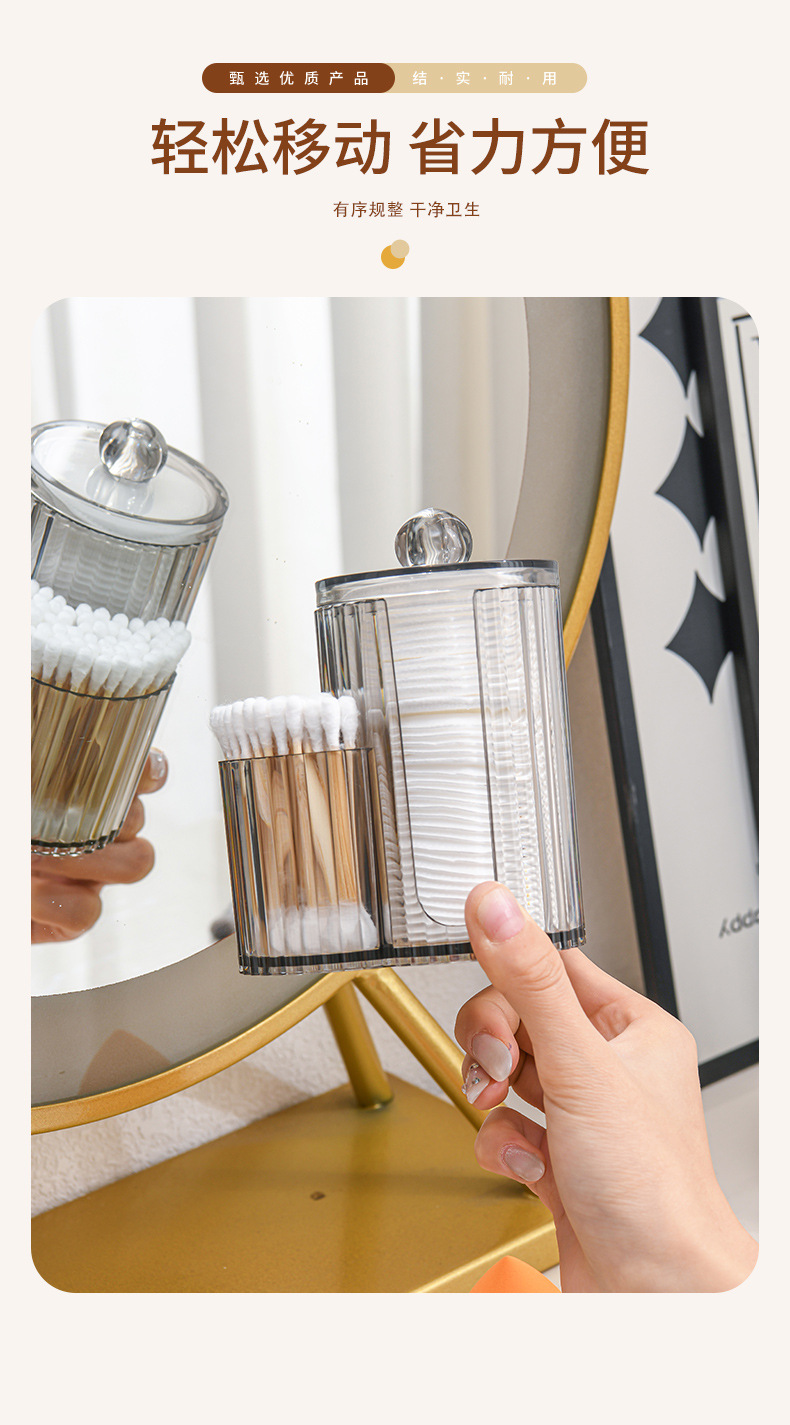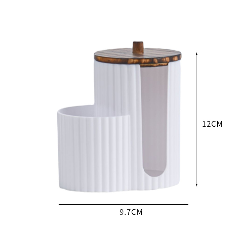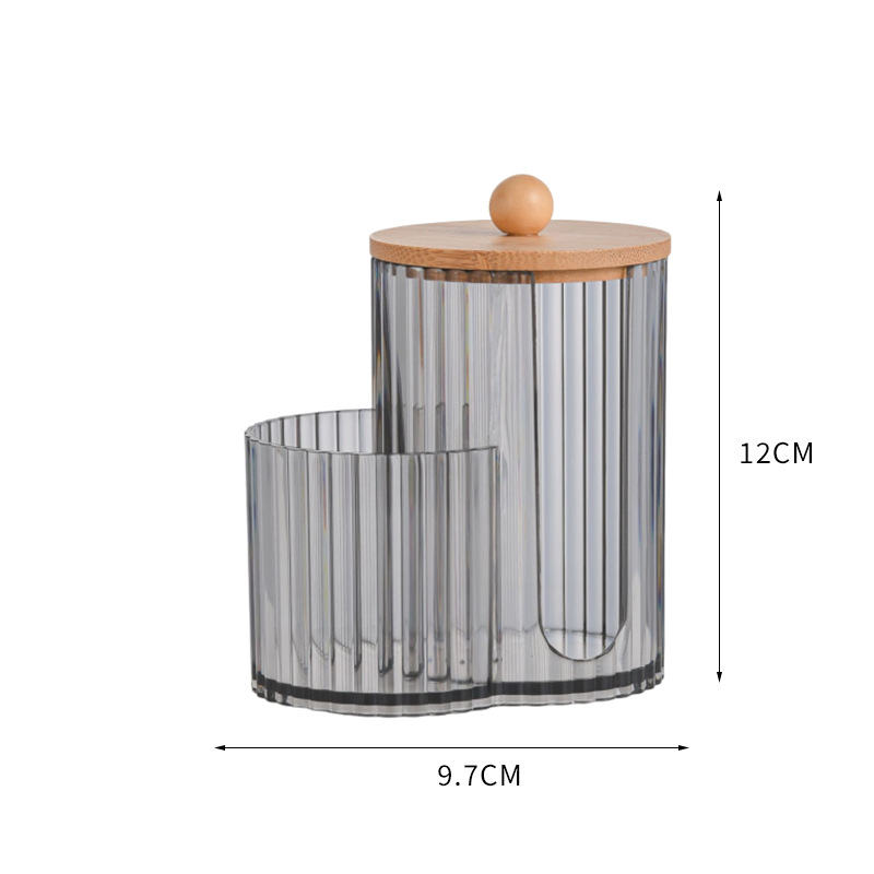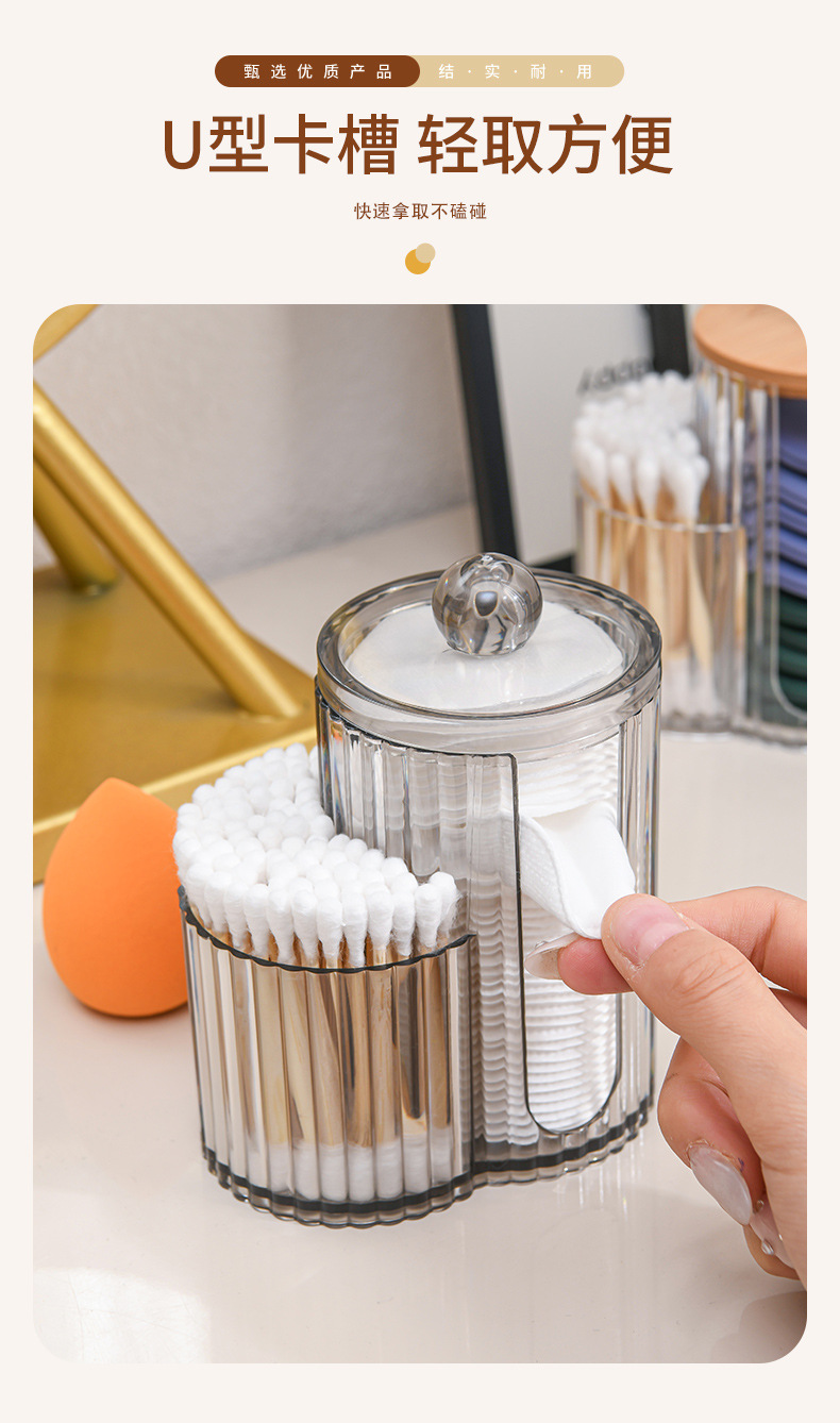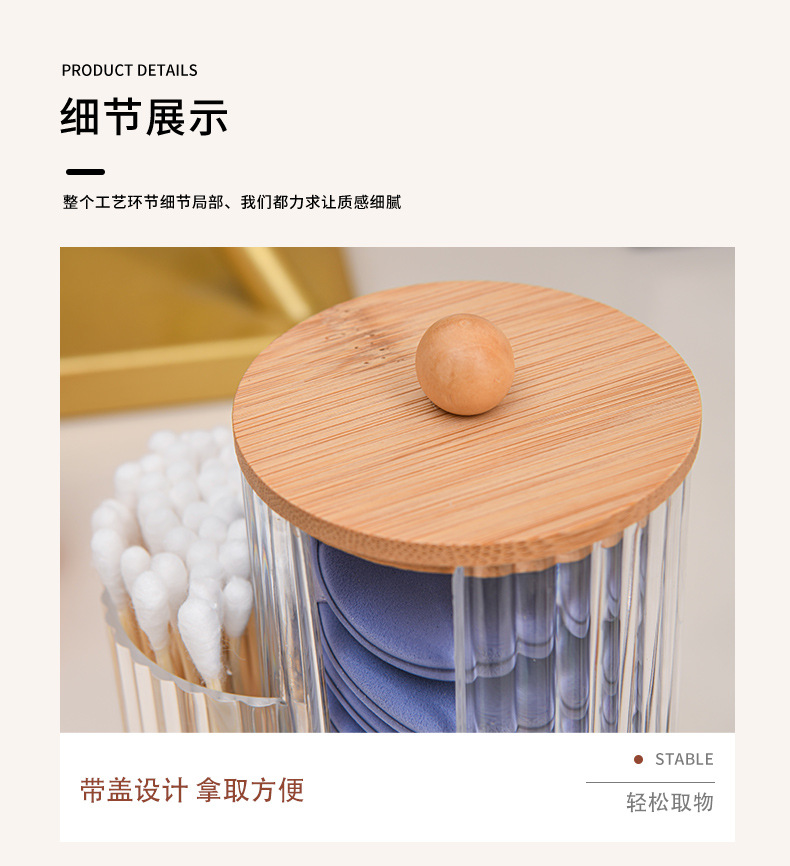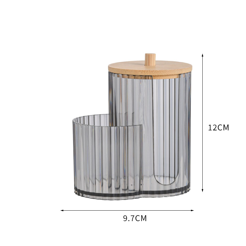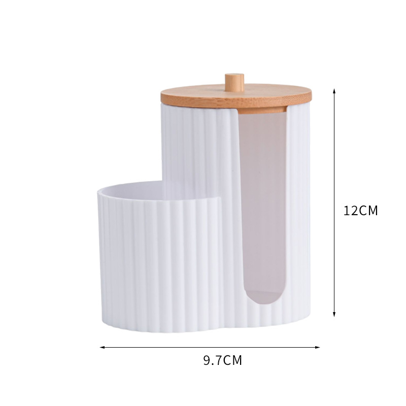 二合一连体竹盖棉签盒卸妆棉双孔收纳盒带盖防尘化妆棉粉扑整理盒