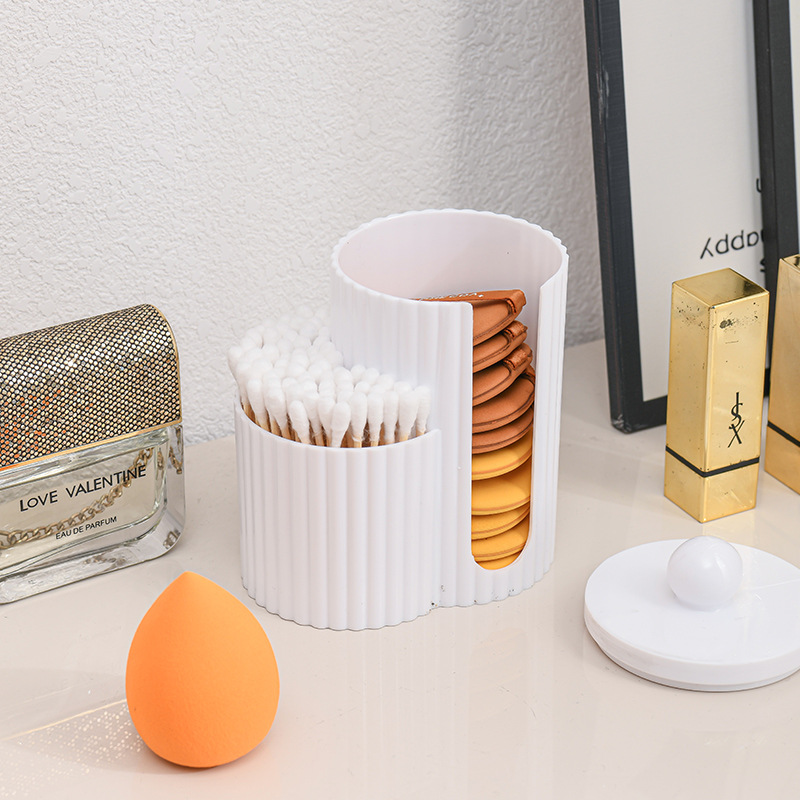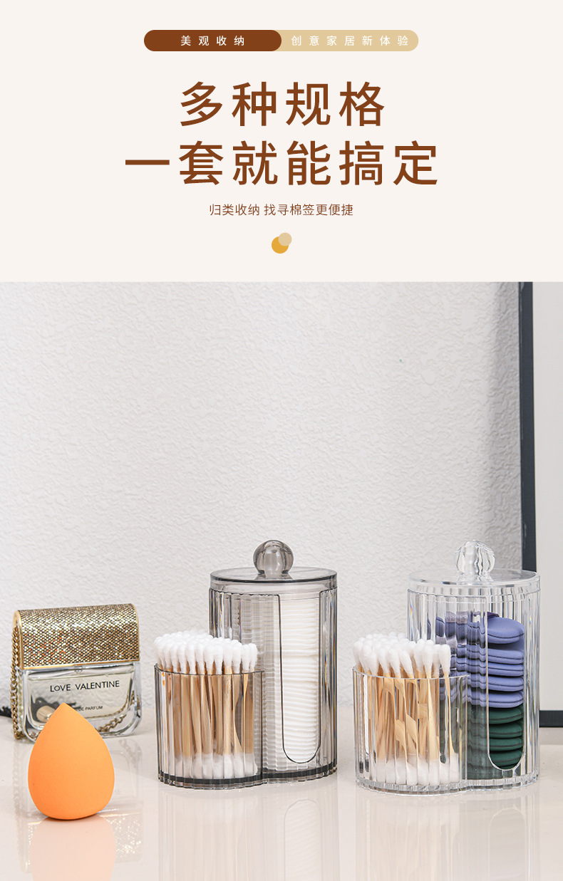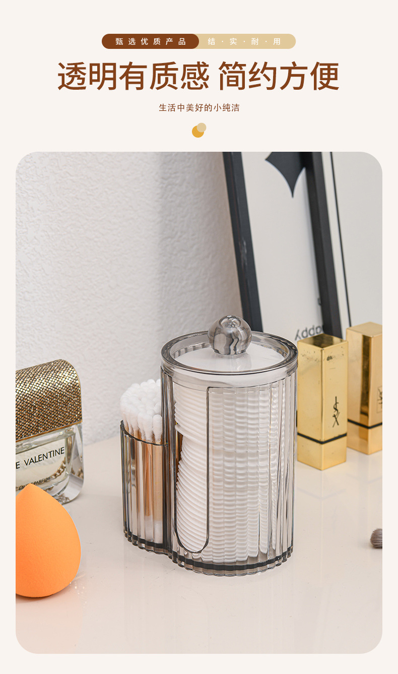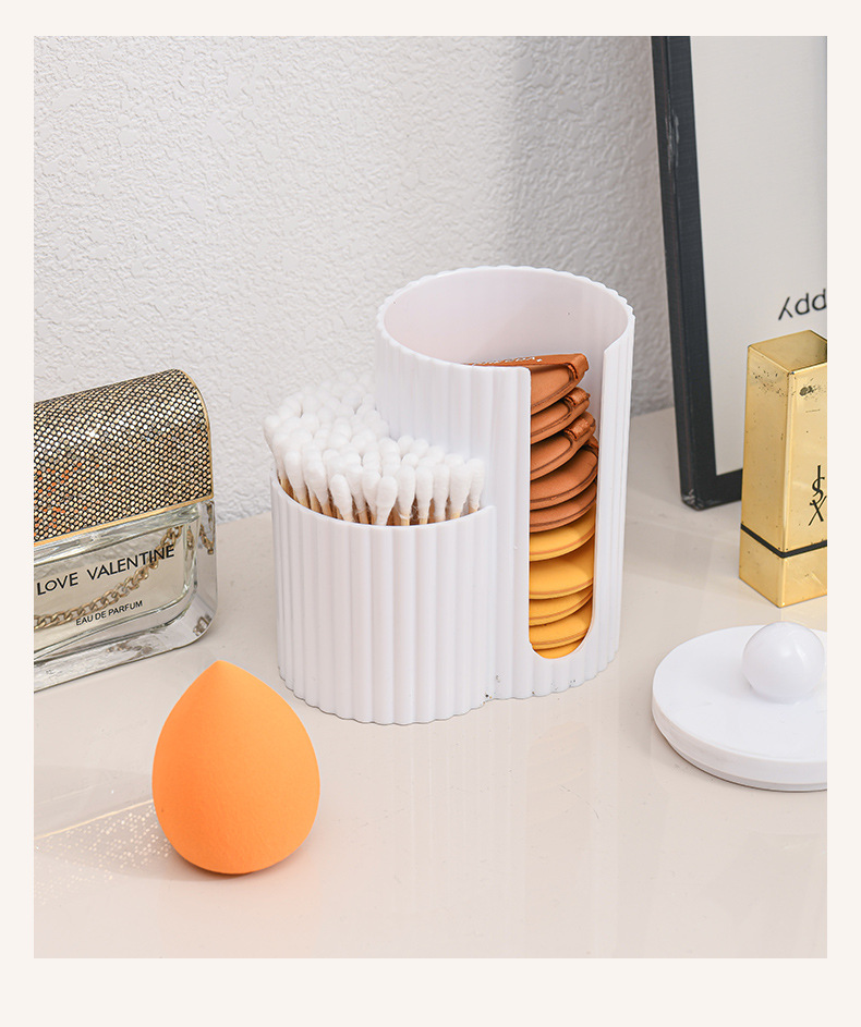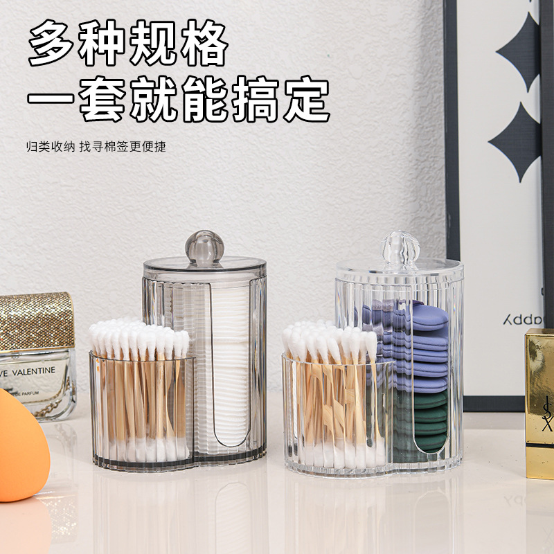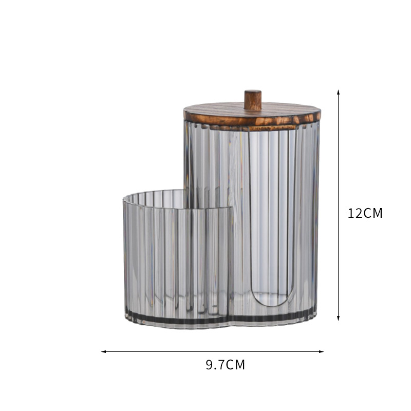 二合一连体竹盖棉签盒卸妆棉双孔收纳盒带盖防尘化妆棉粉扑整理盒