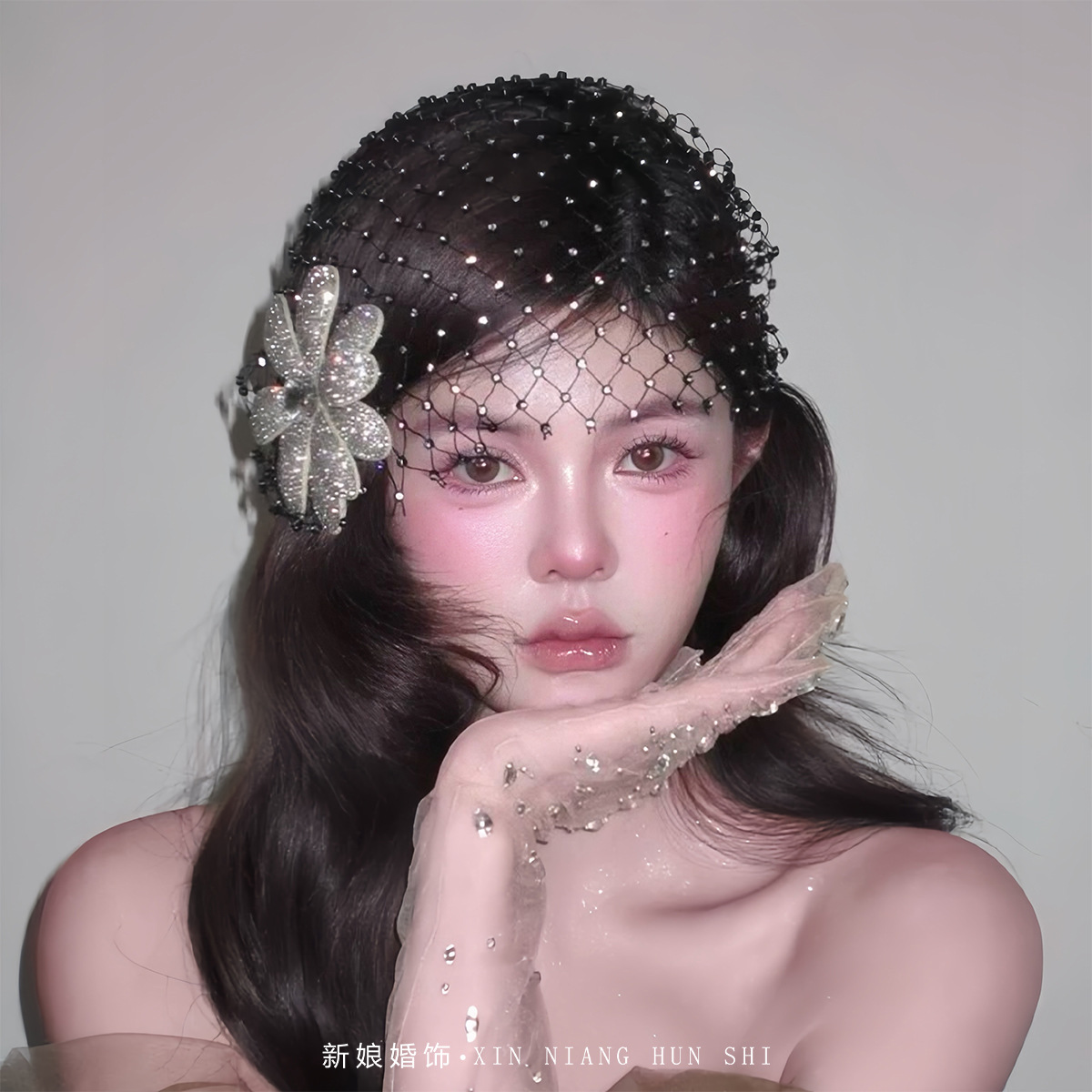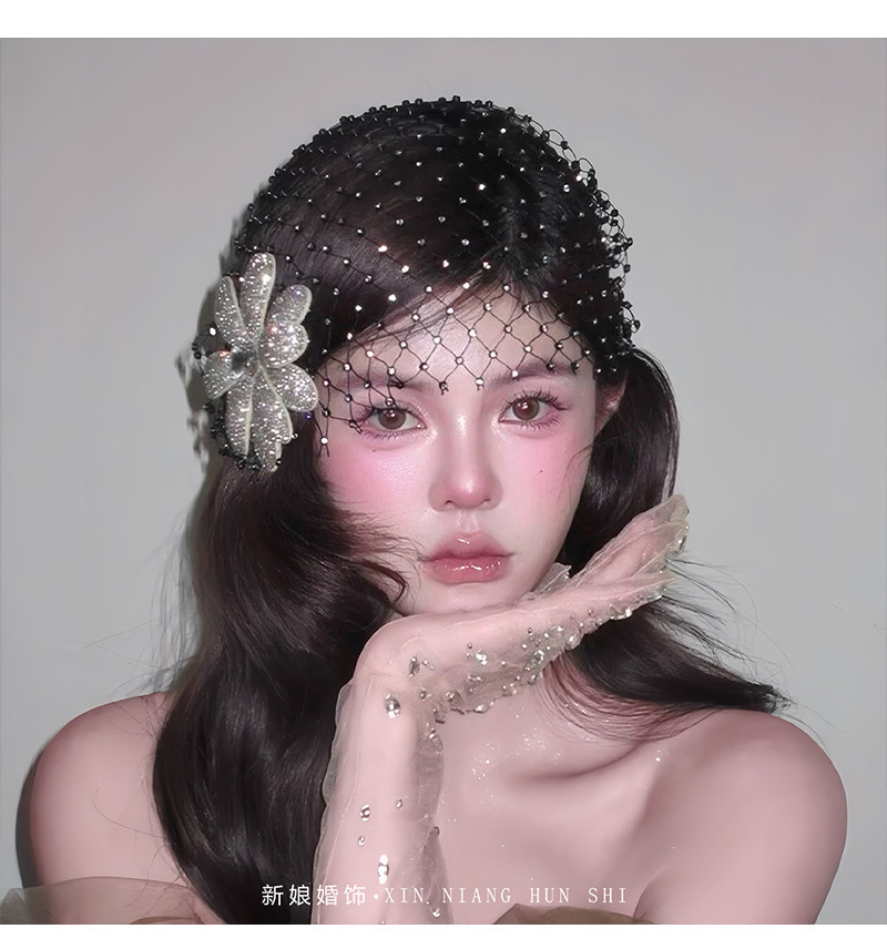 新款法式复古优雅气质闪钻花朵发饰帽子高级感轻奢名媛风礼服头饰