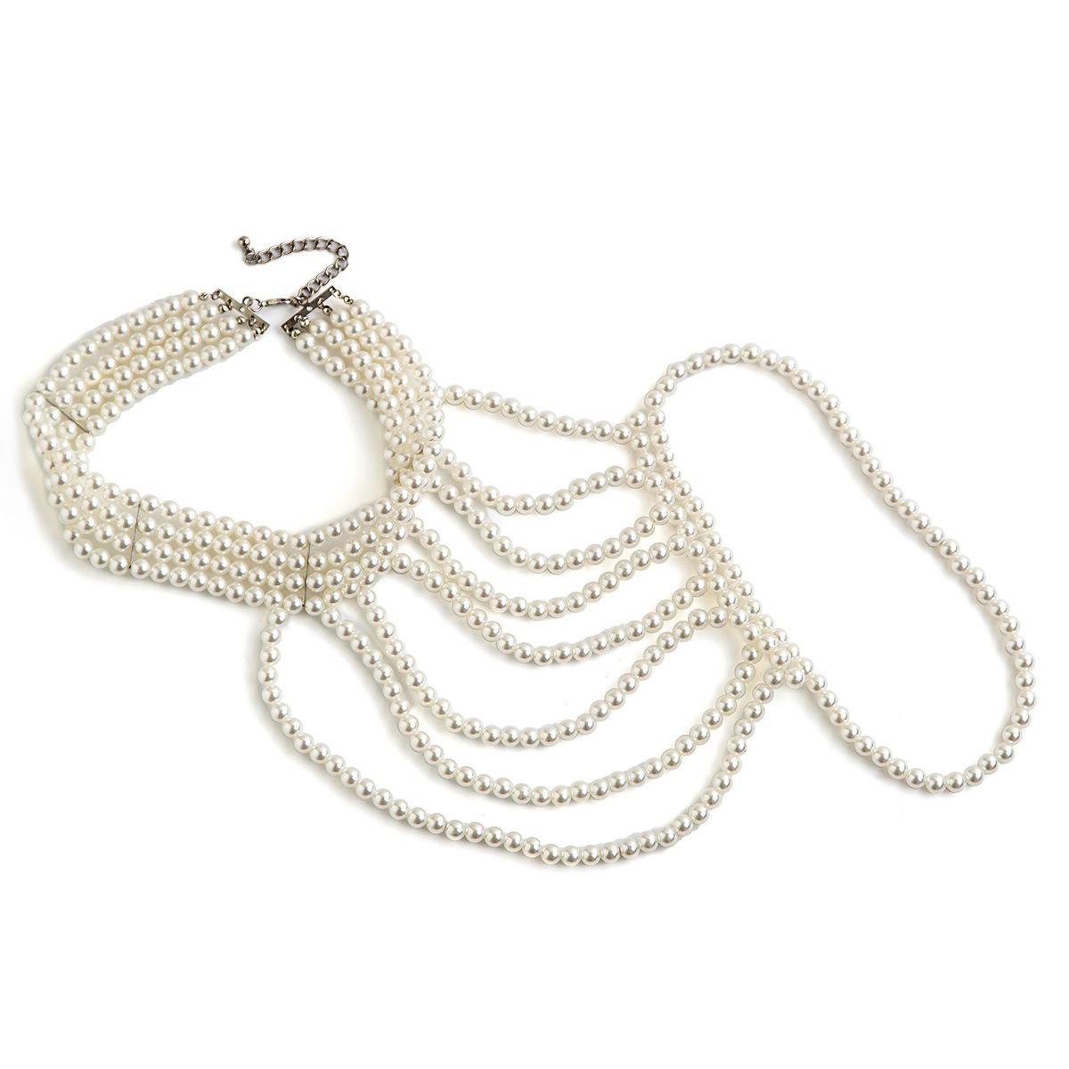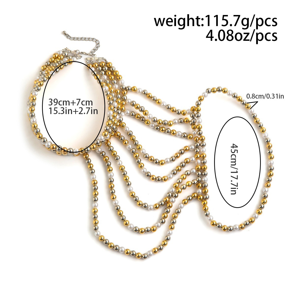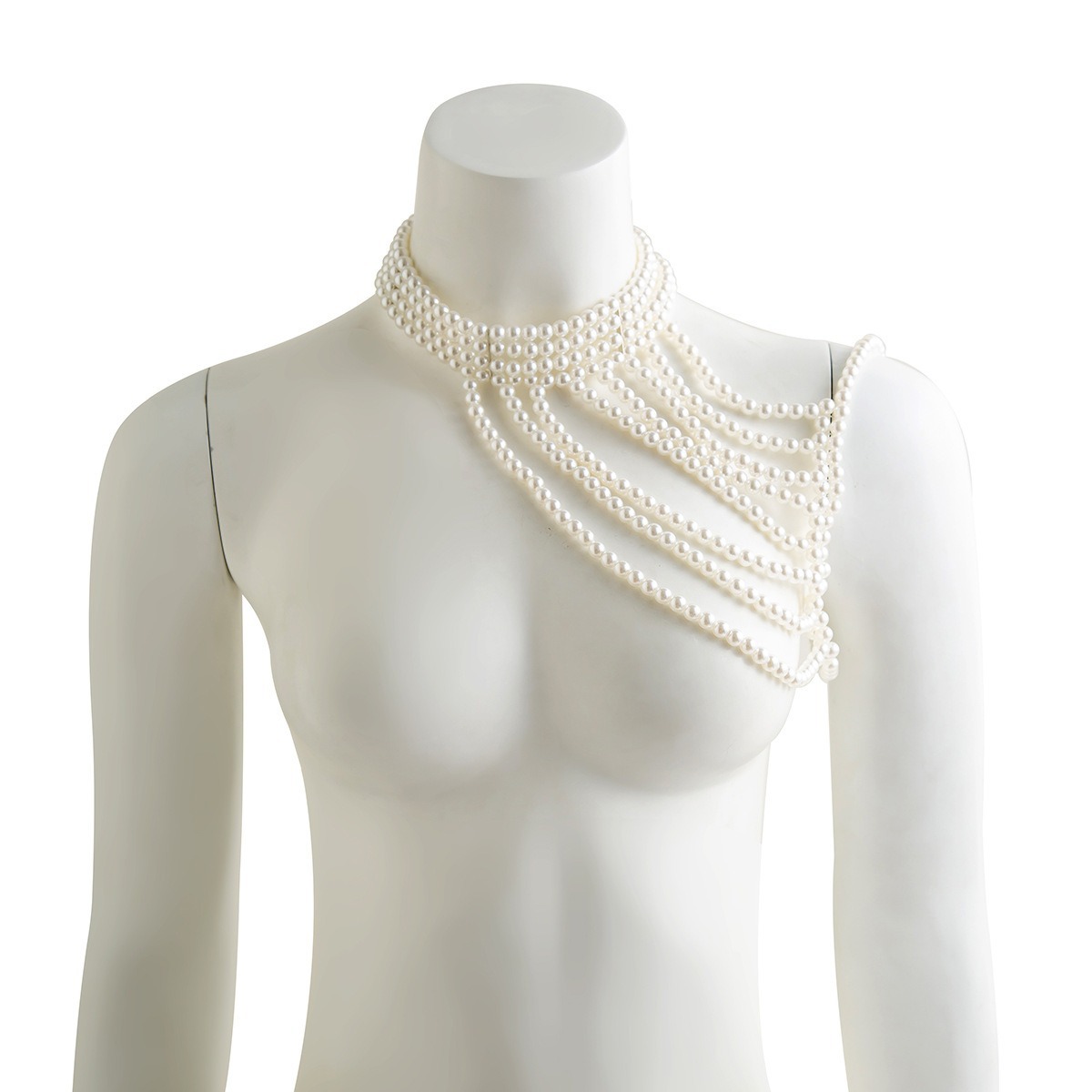 欧美跨境饰品时尚气质多层仿珍珠流苏肩链礼服搭配衣饰身体链胸链