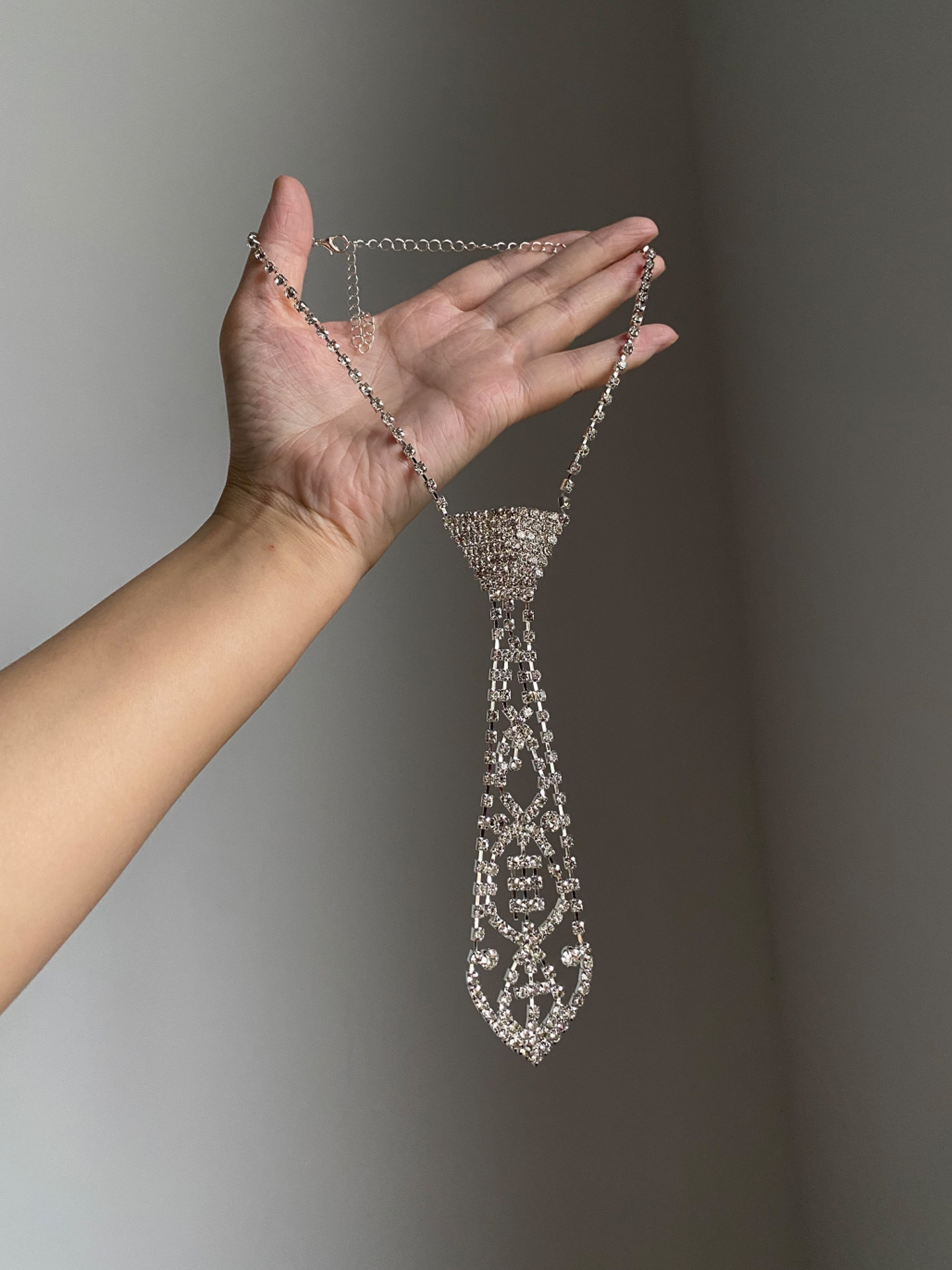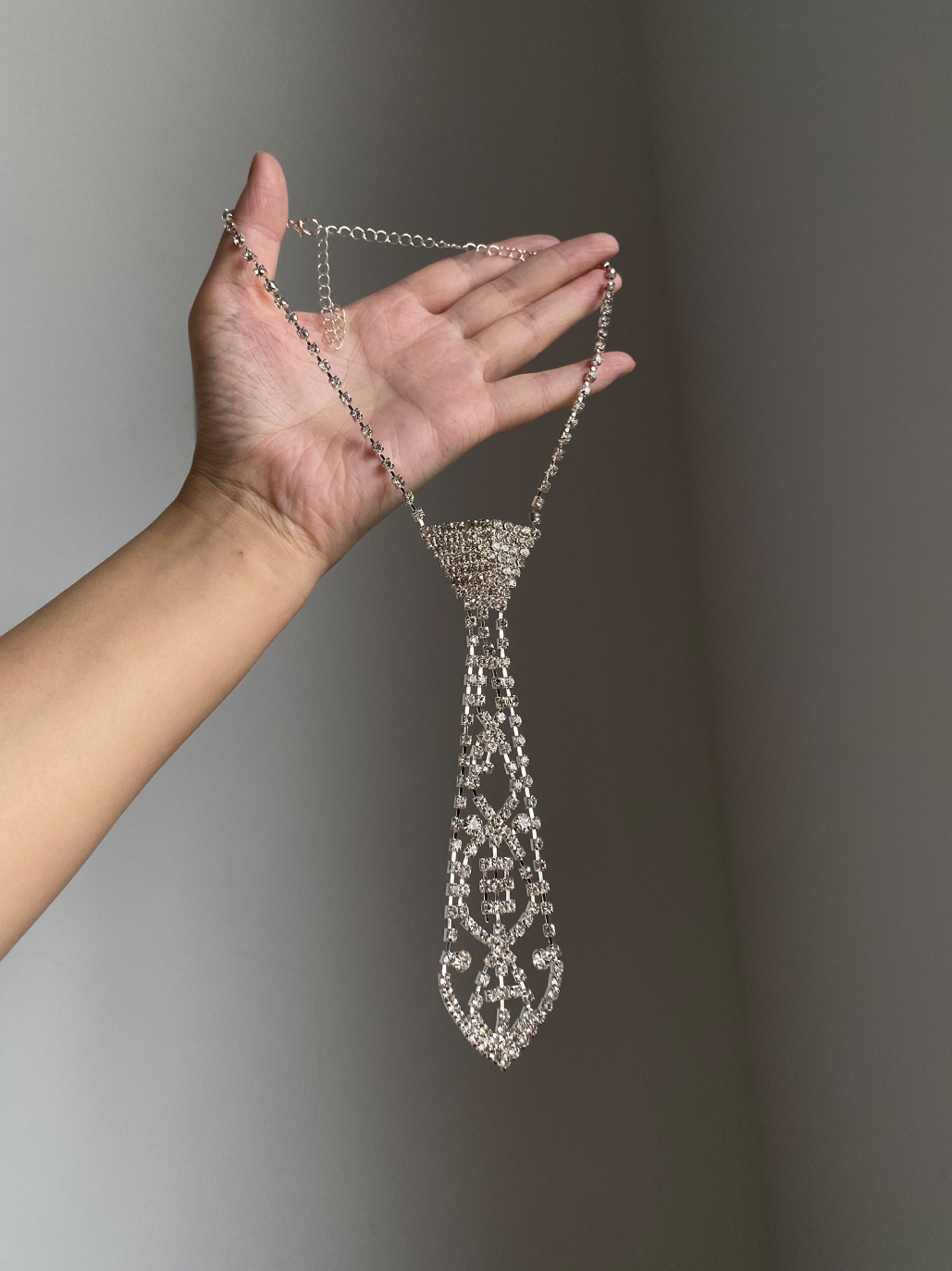 镶钻领带三角形流苏项链个性冷淡风choker锁骨链轻奢高级感项饰女