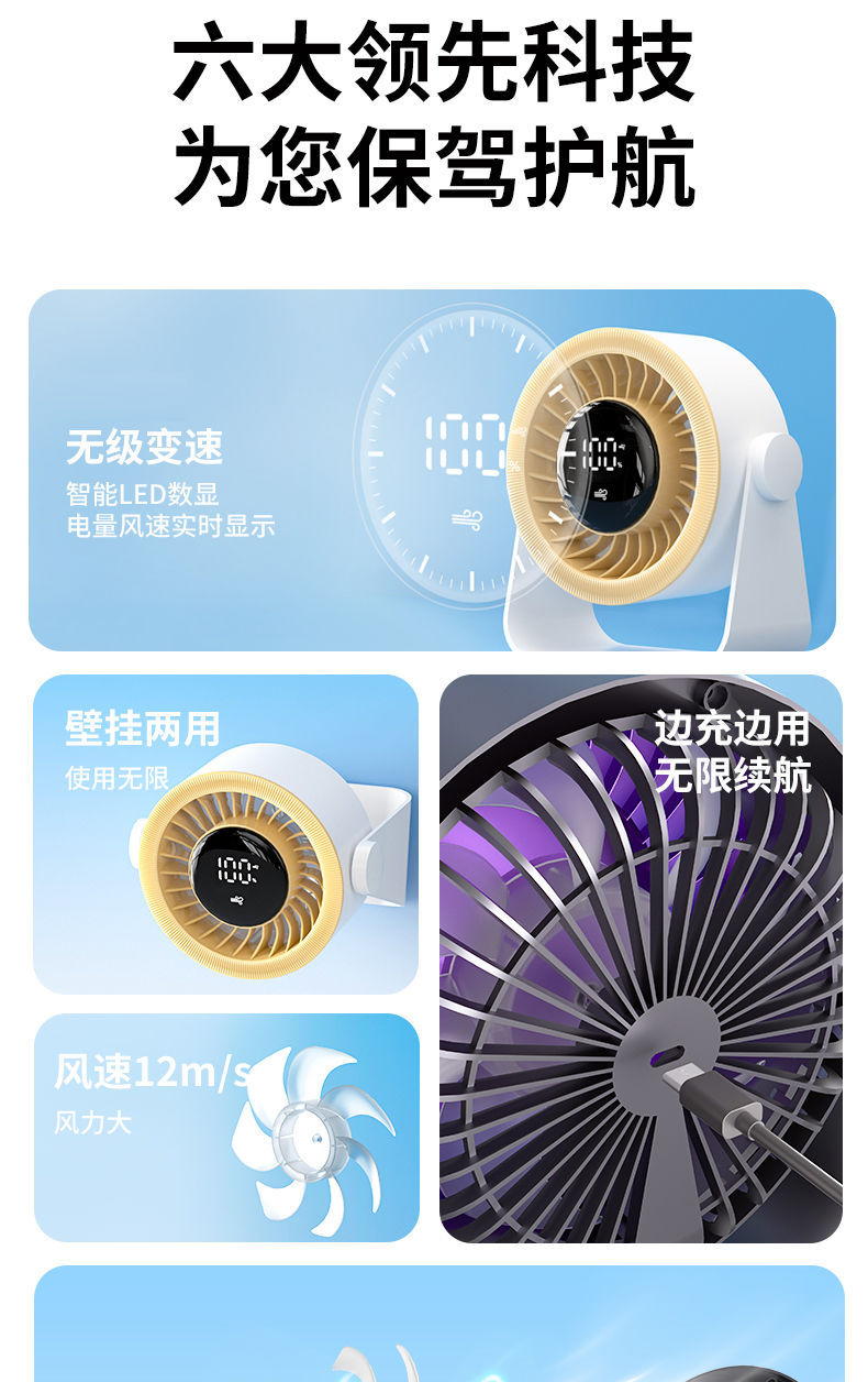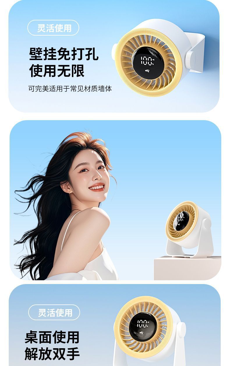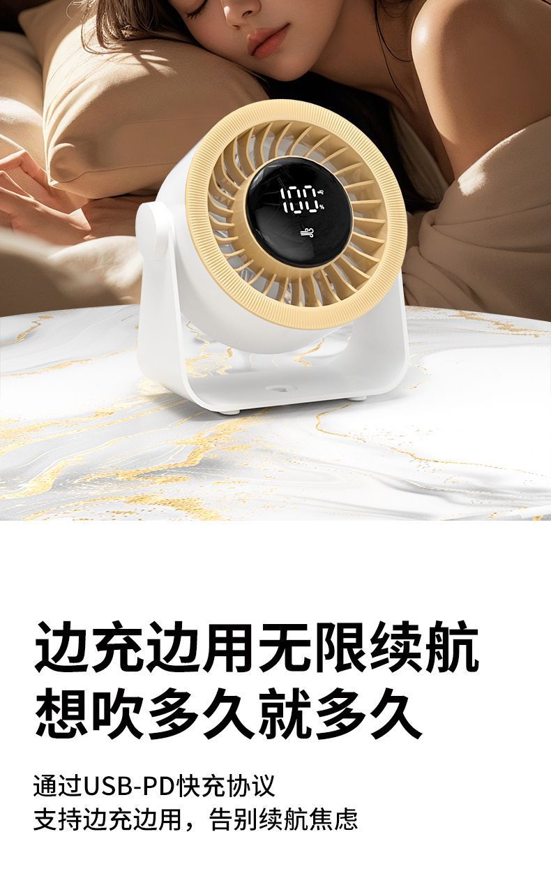 桌面台式风扇usb办公室学生静音小风扇数显涡扇高速居家用小电扇