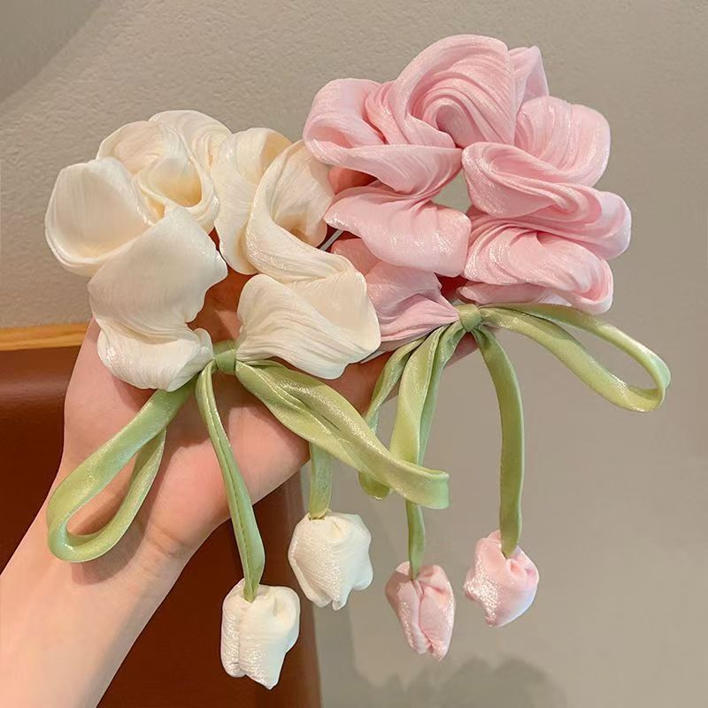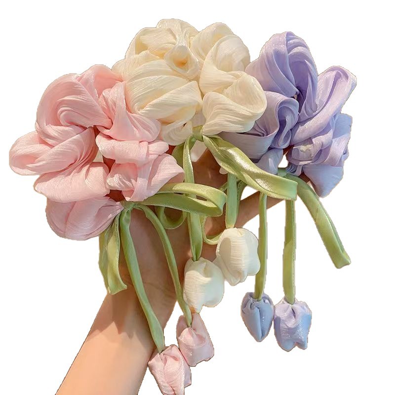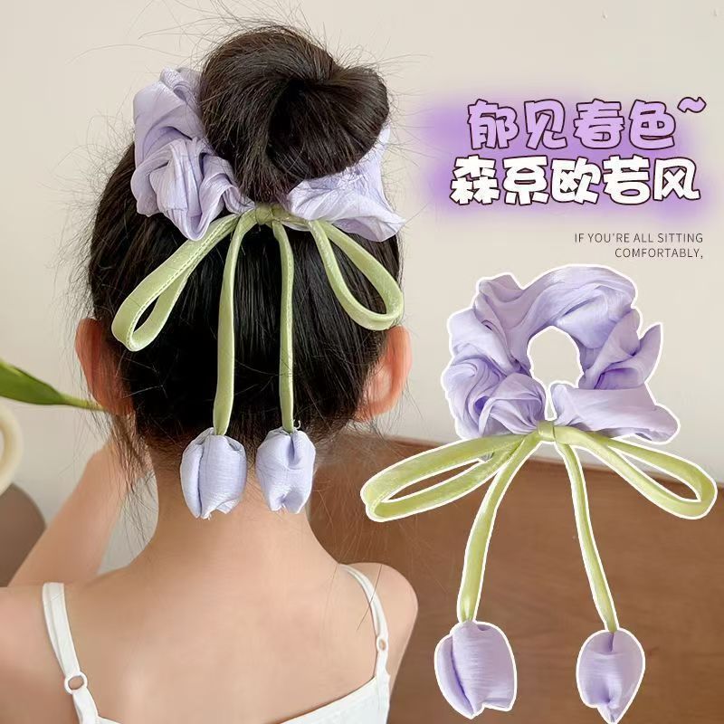 儿童郁金香花朵发圈女童扎丸子头大肠圈头绳高级感女孩扎马尾发饰