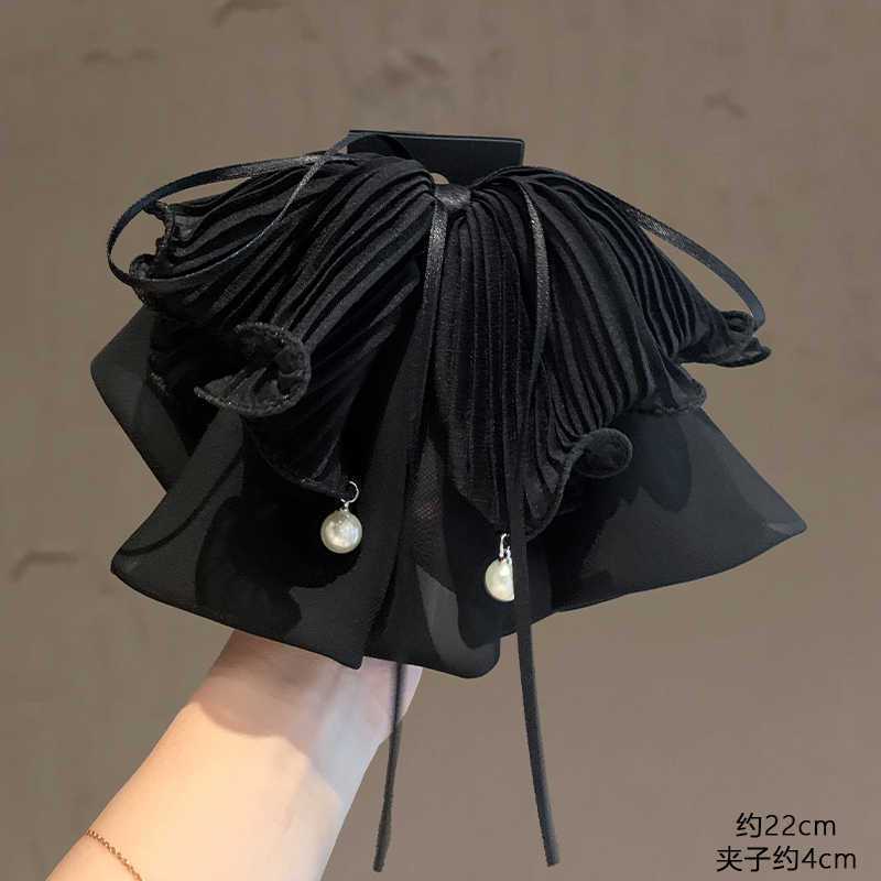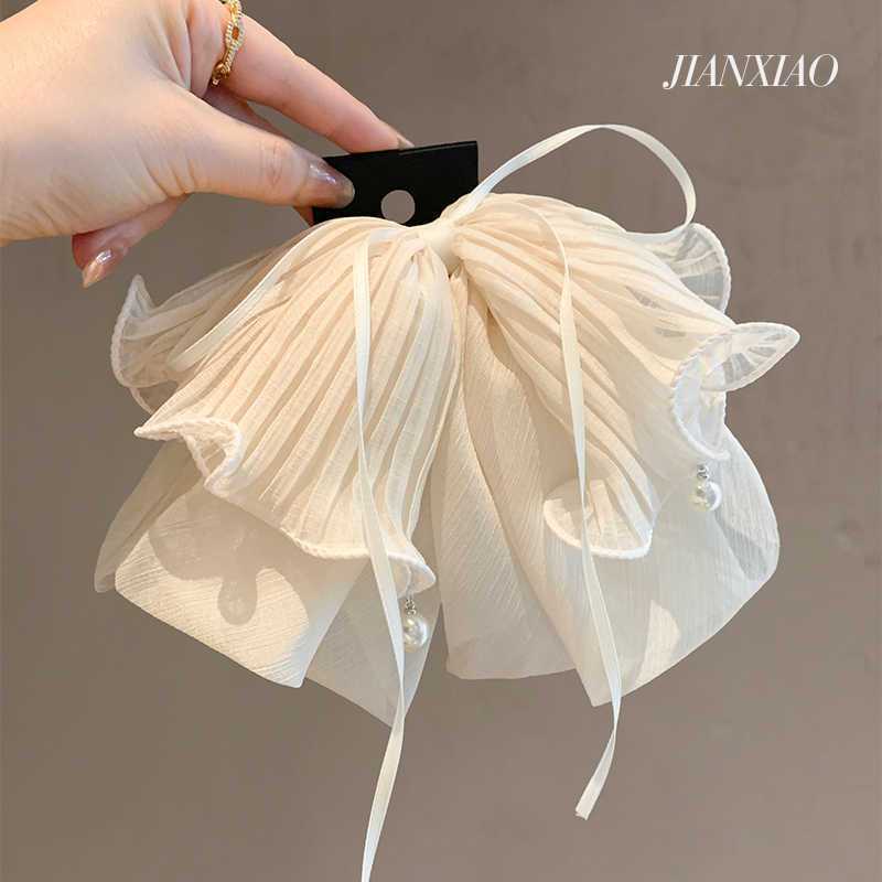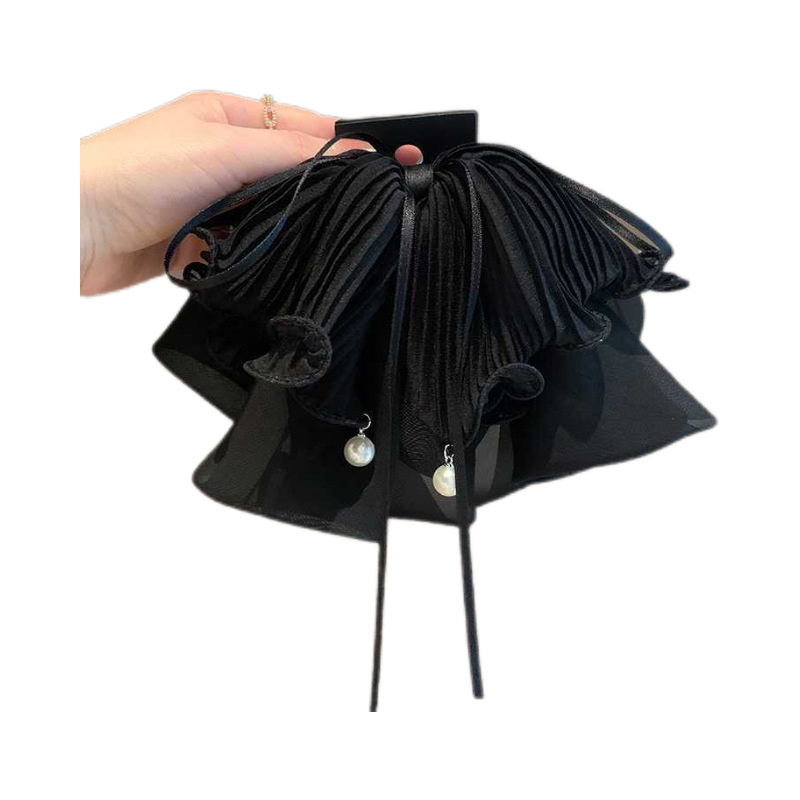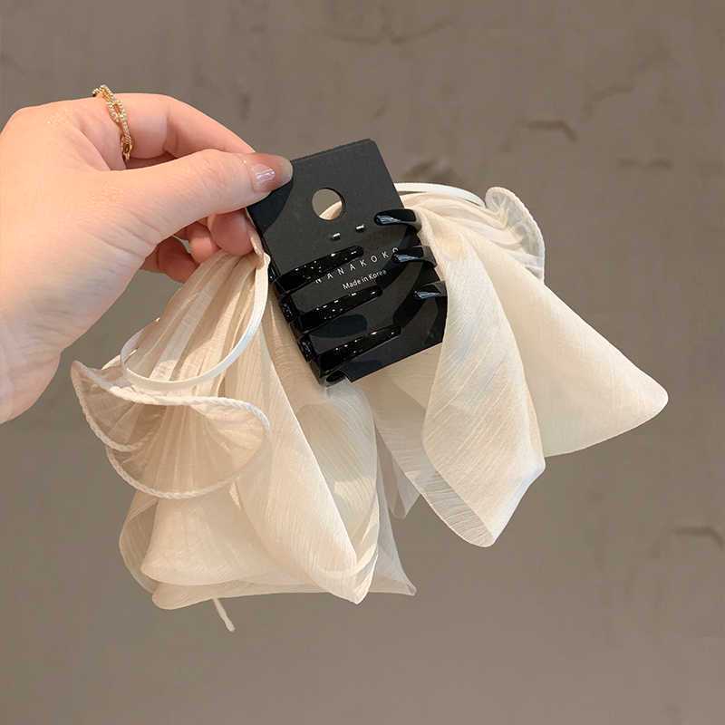 2025韩版褶皱雪纺网纱大蝴蝶结马尾发夹高端气质抓夹半扎发鲨鱼夹