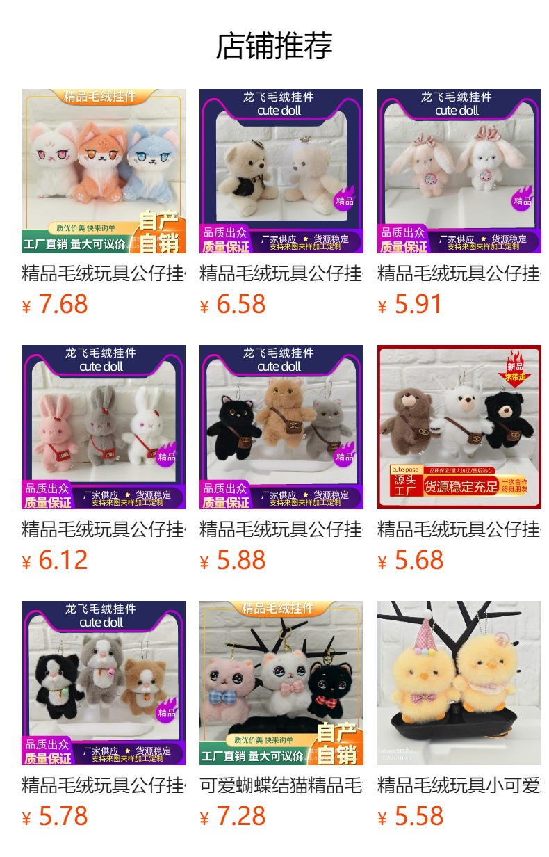 精品毛绒玩具公仔挂件长腿胡子猫钥匙挂件玩偶厂家批发直销