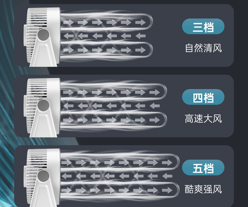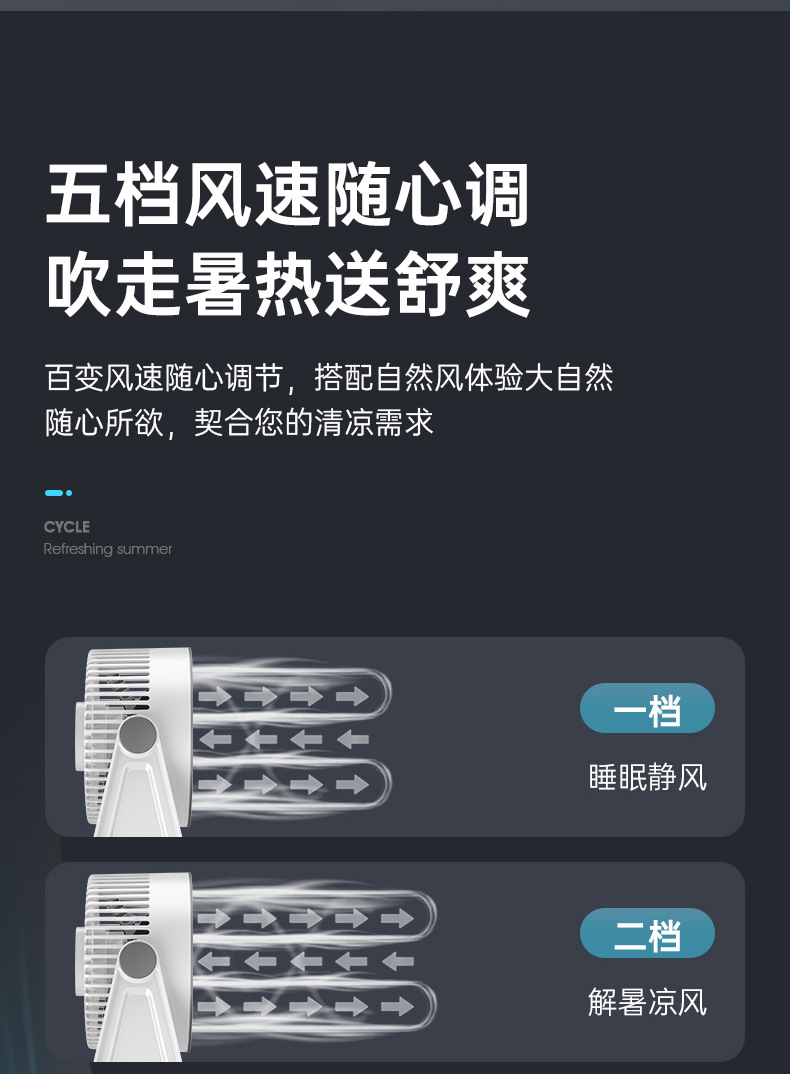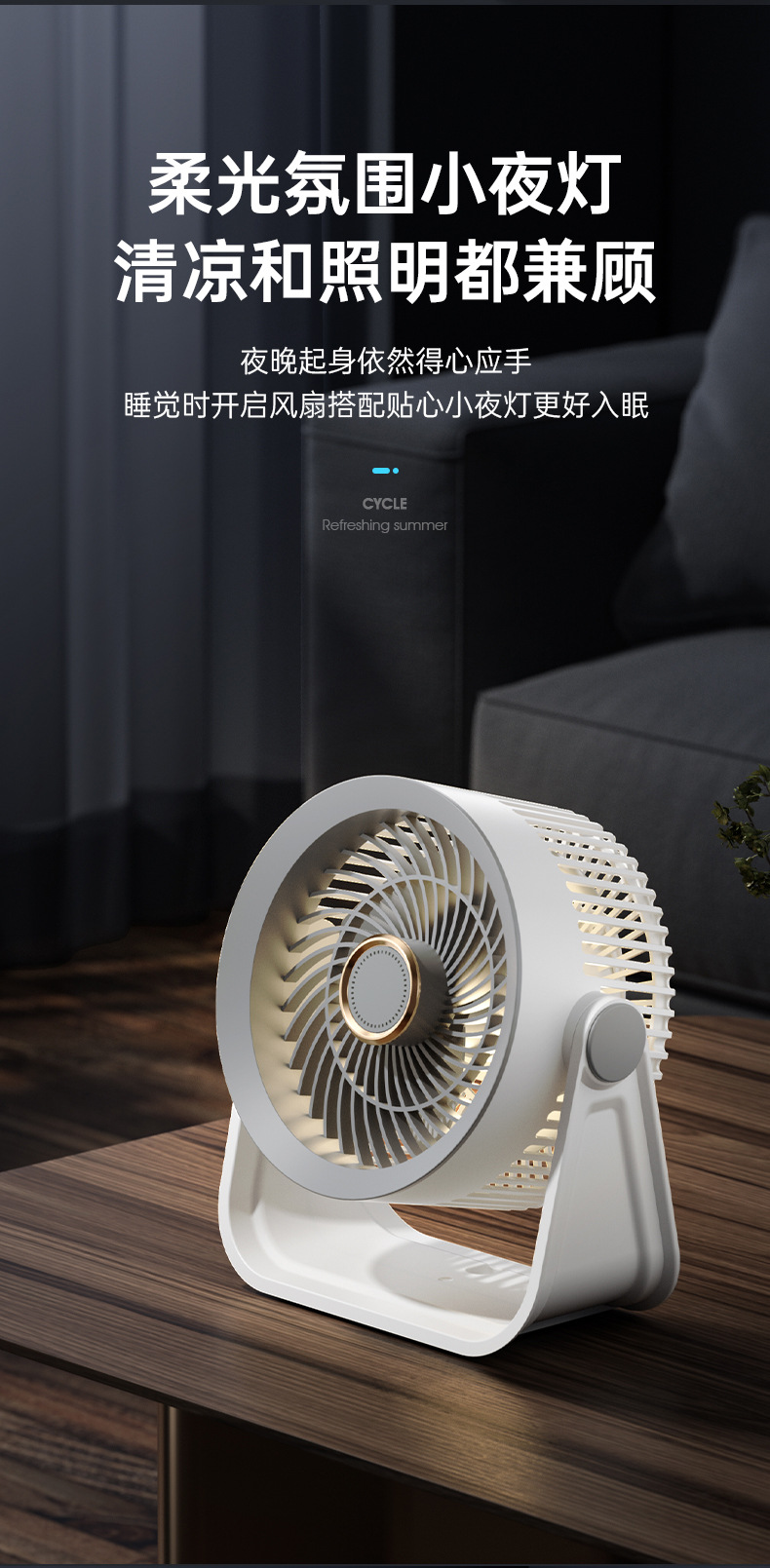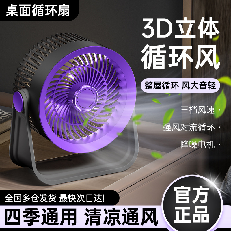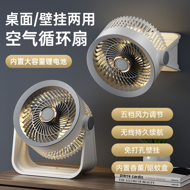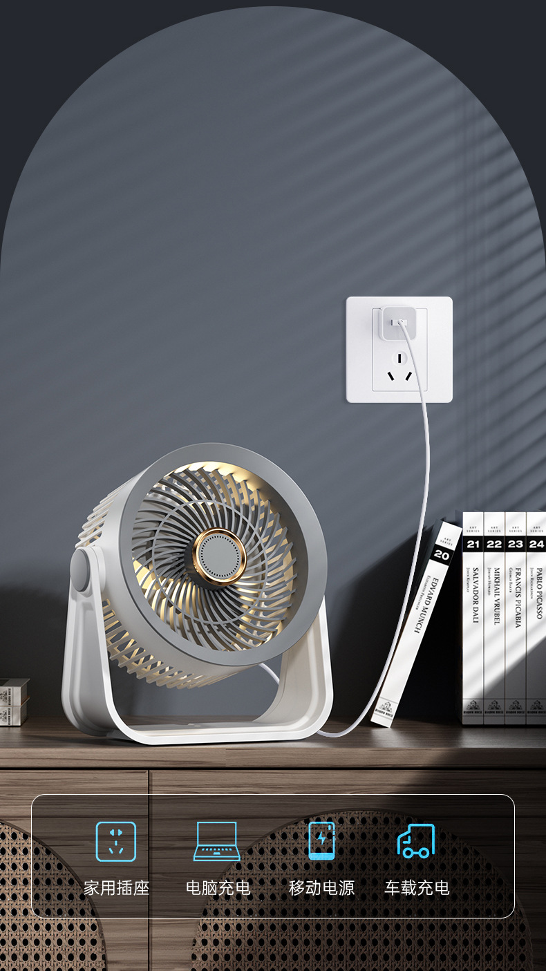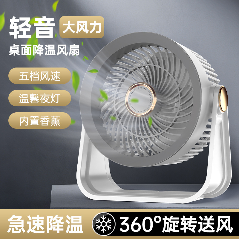 新款桌面小风扇循环扇夜灯风扇长续航台式大风力家用风扇usb充电