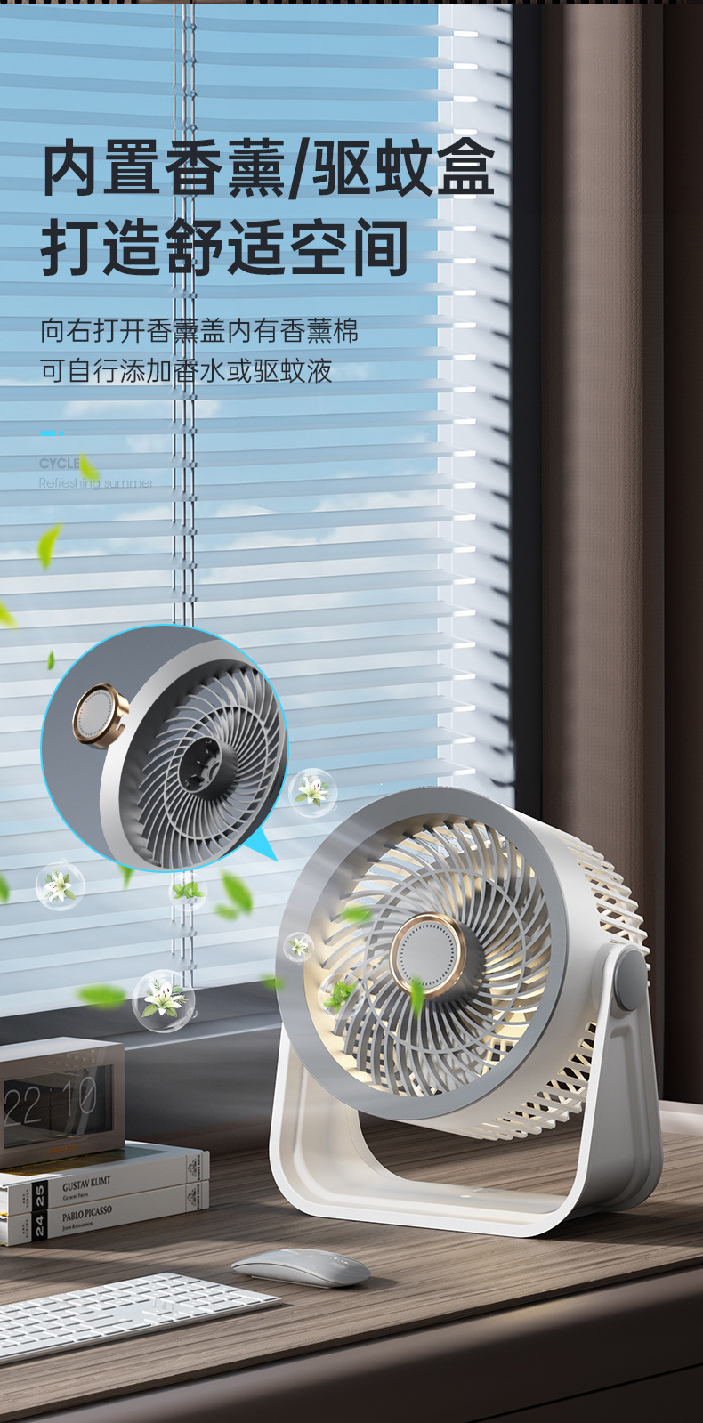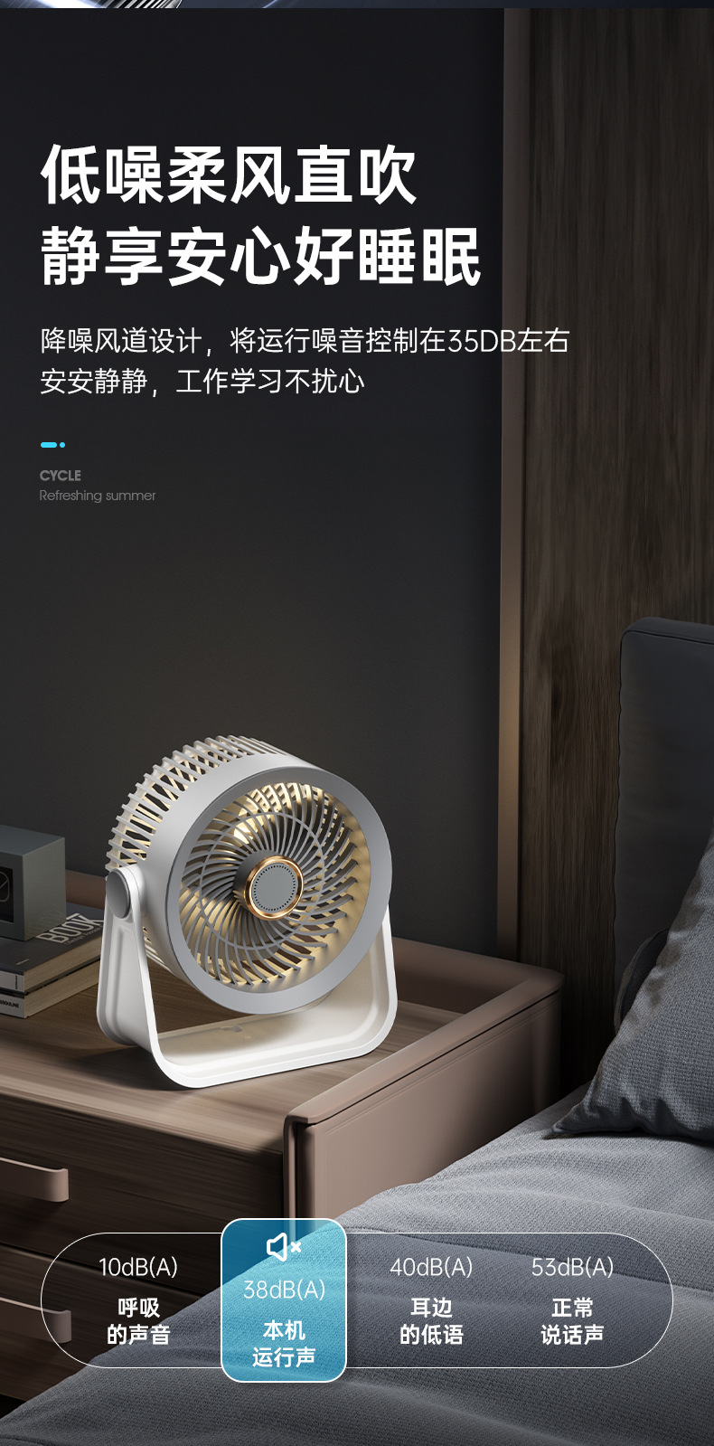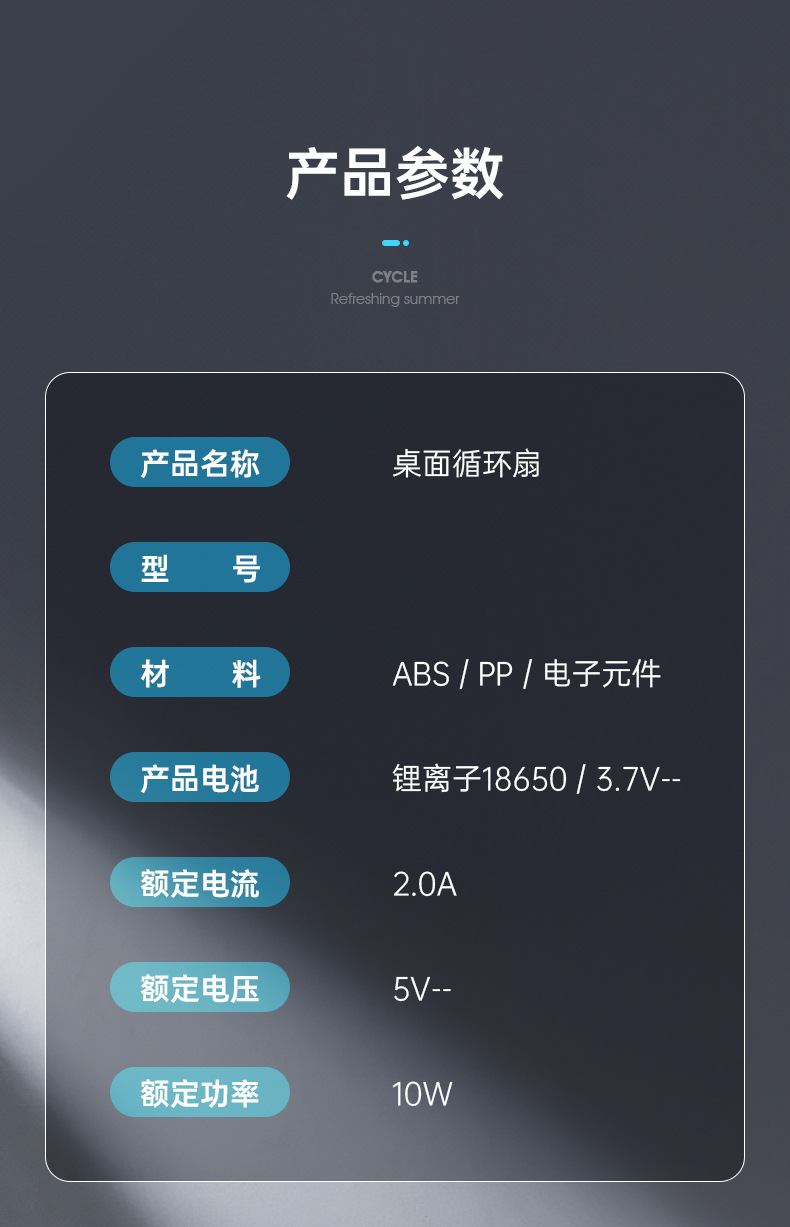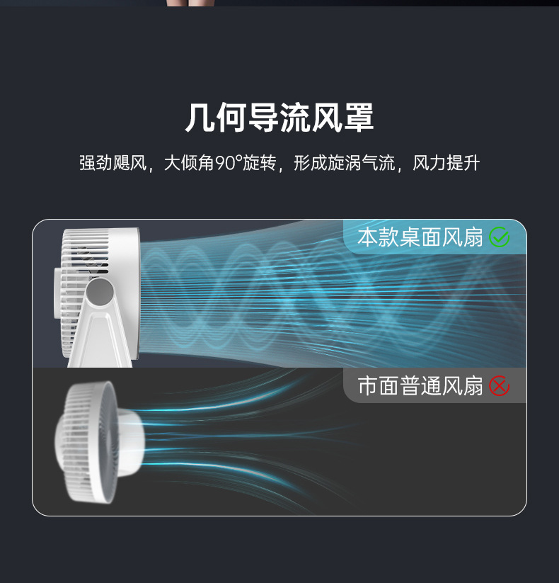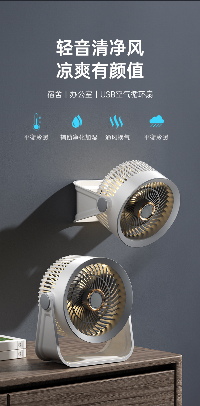 新款桌面小风扇循环扇夜灯风扇长续航台式大风力家用风扇usb充电