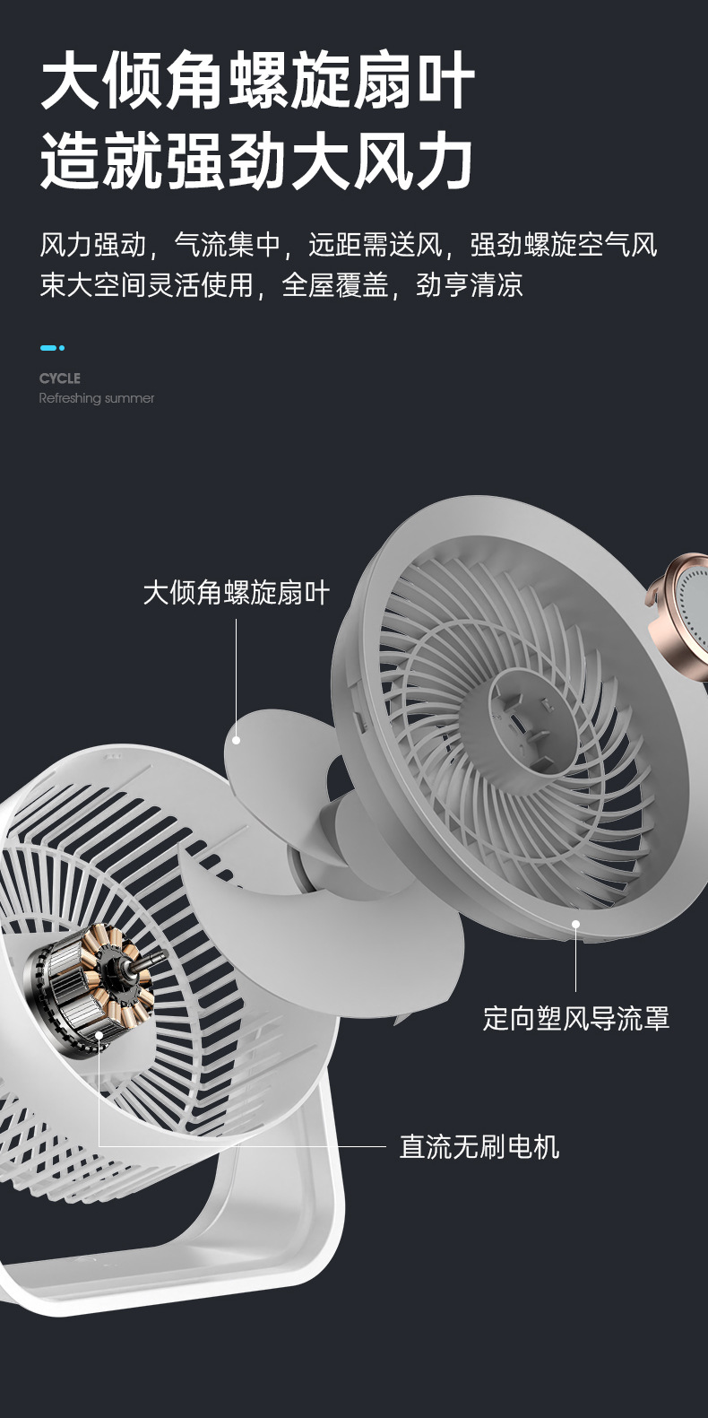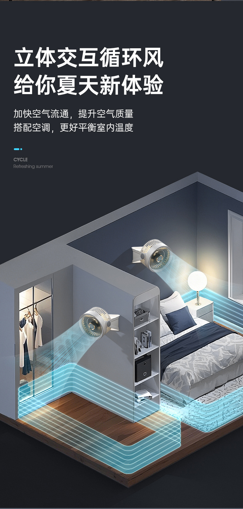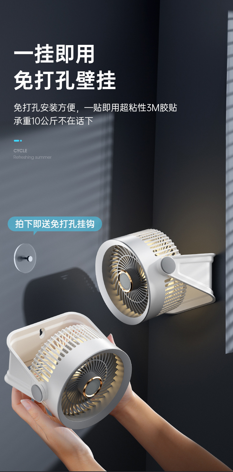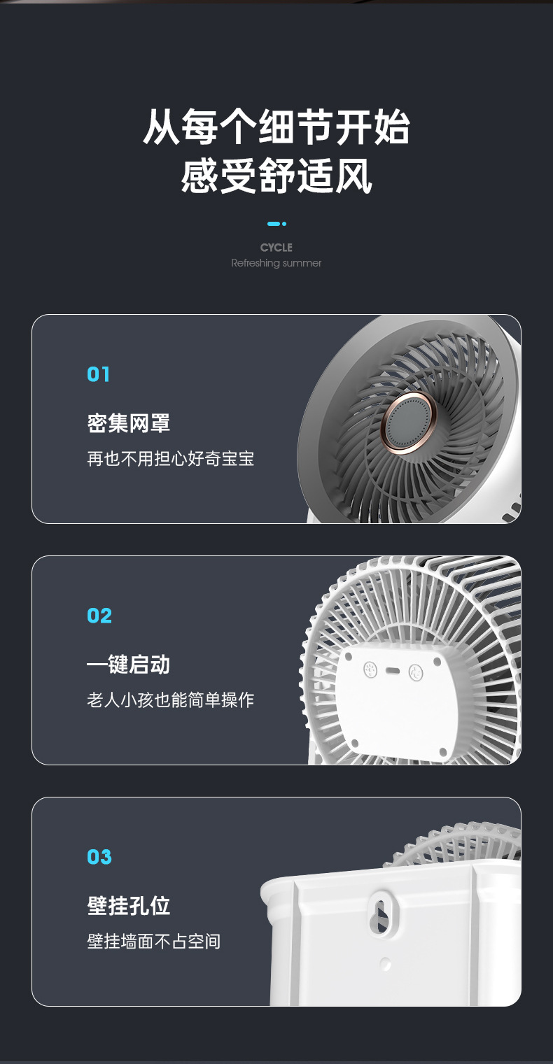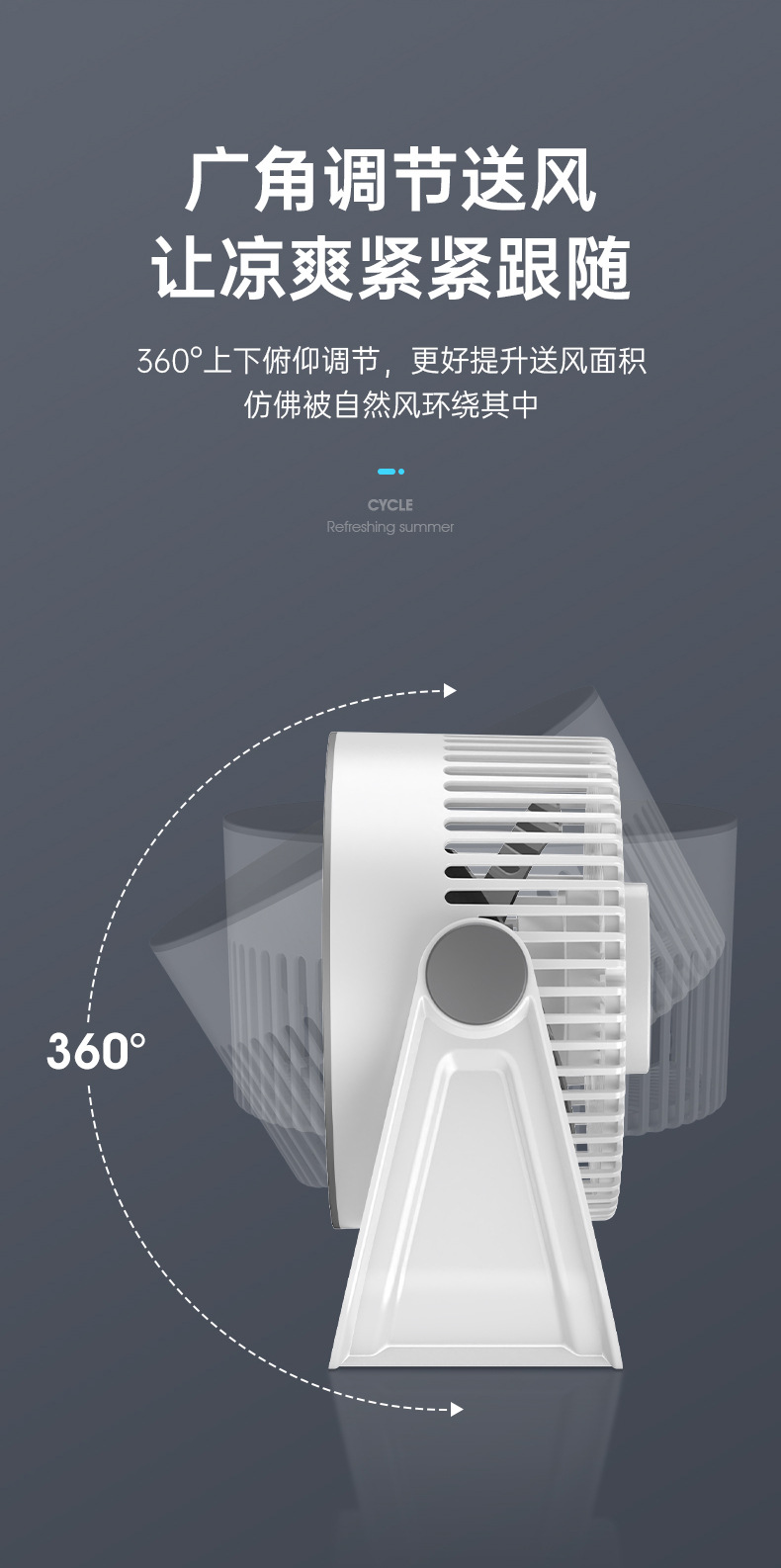 新款桌面小风扇循环扇夜灯风扇长续航台式大风力家用风扇usb充电
