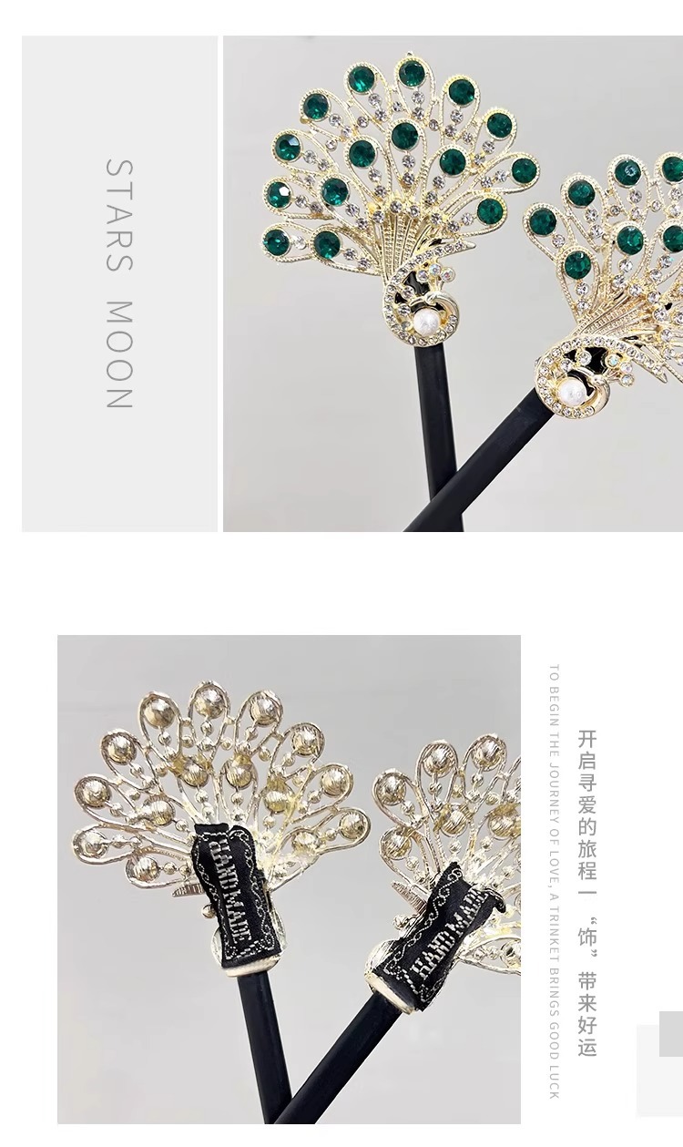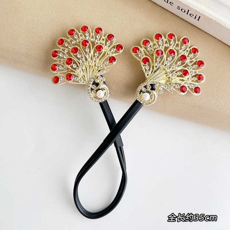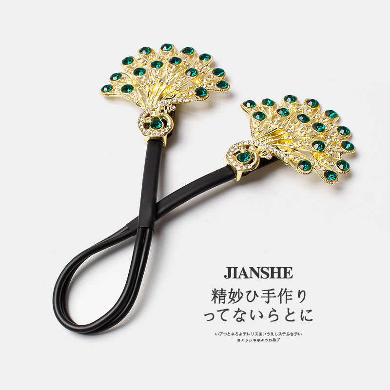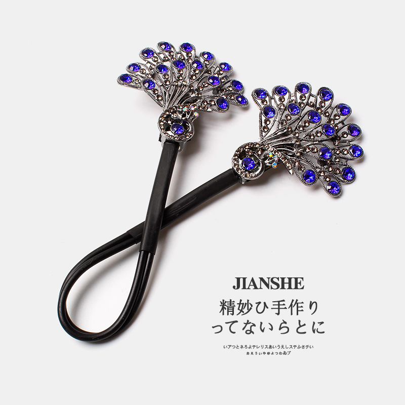 气质仿水晶孔雀盘发神器新款懒人扭扭夹发卡丸子头水钻后脑勺发饰