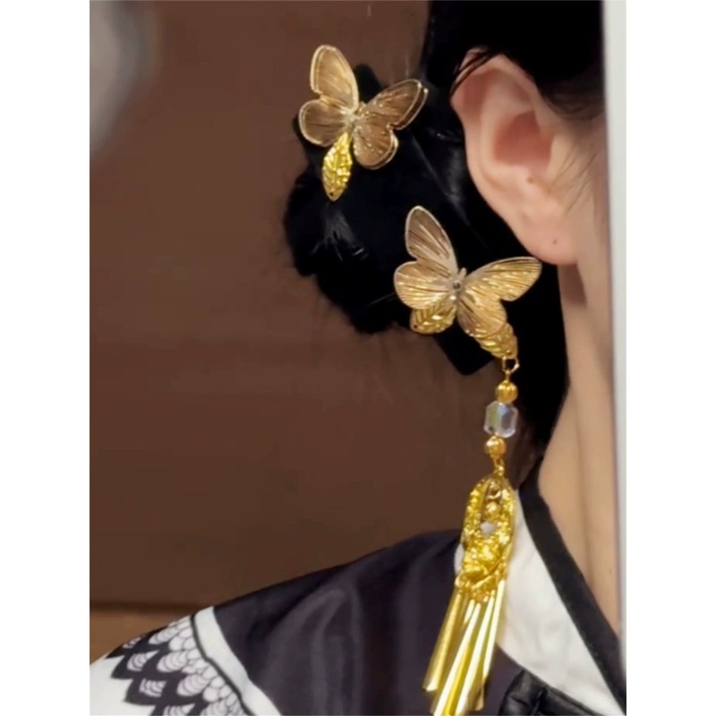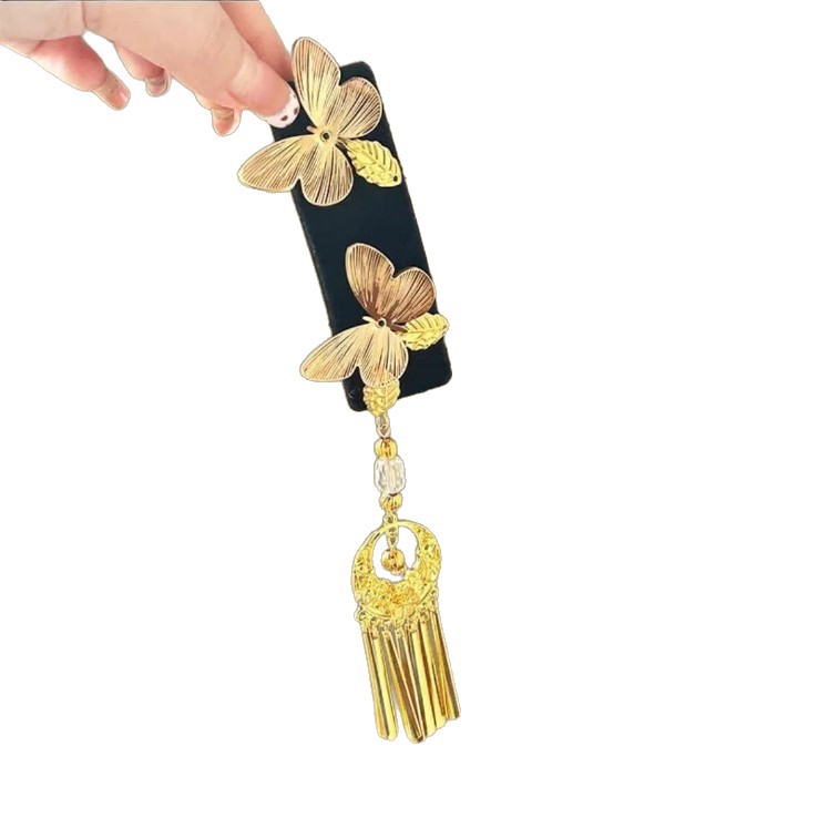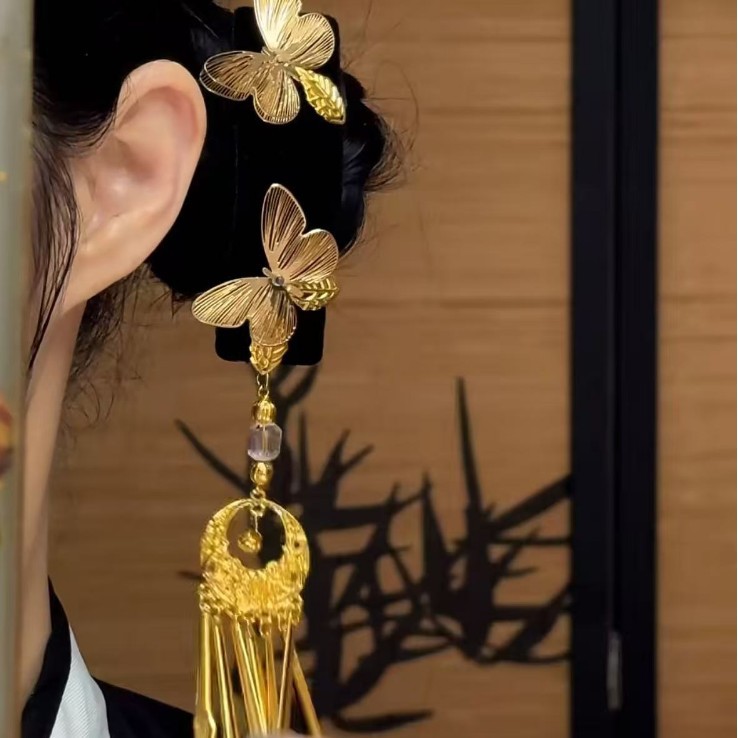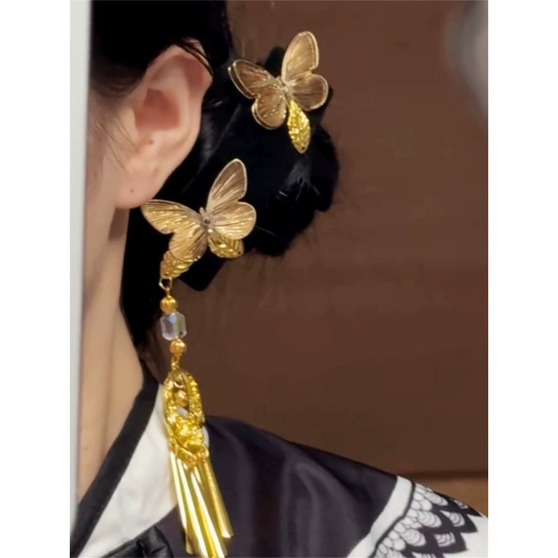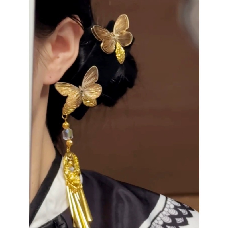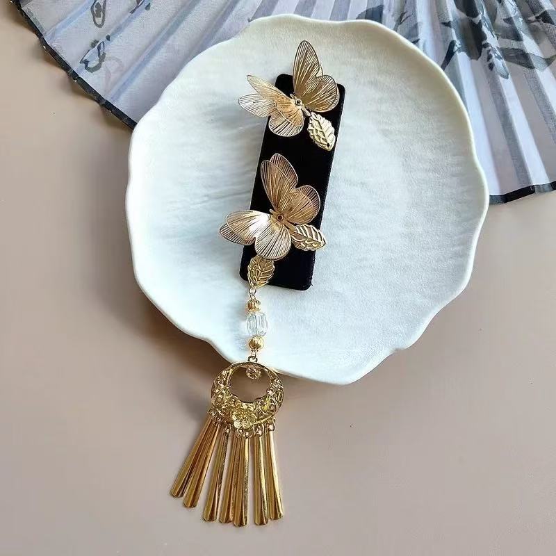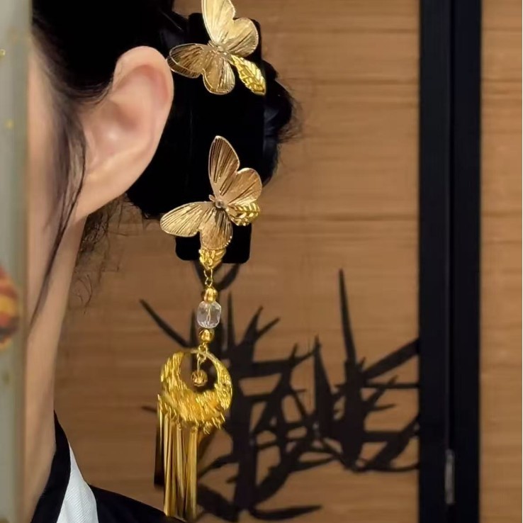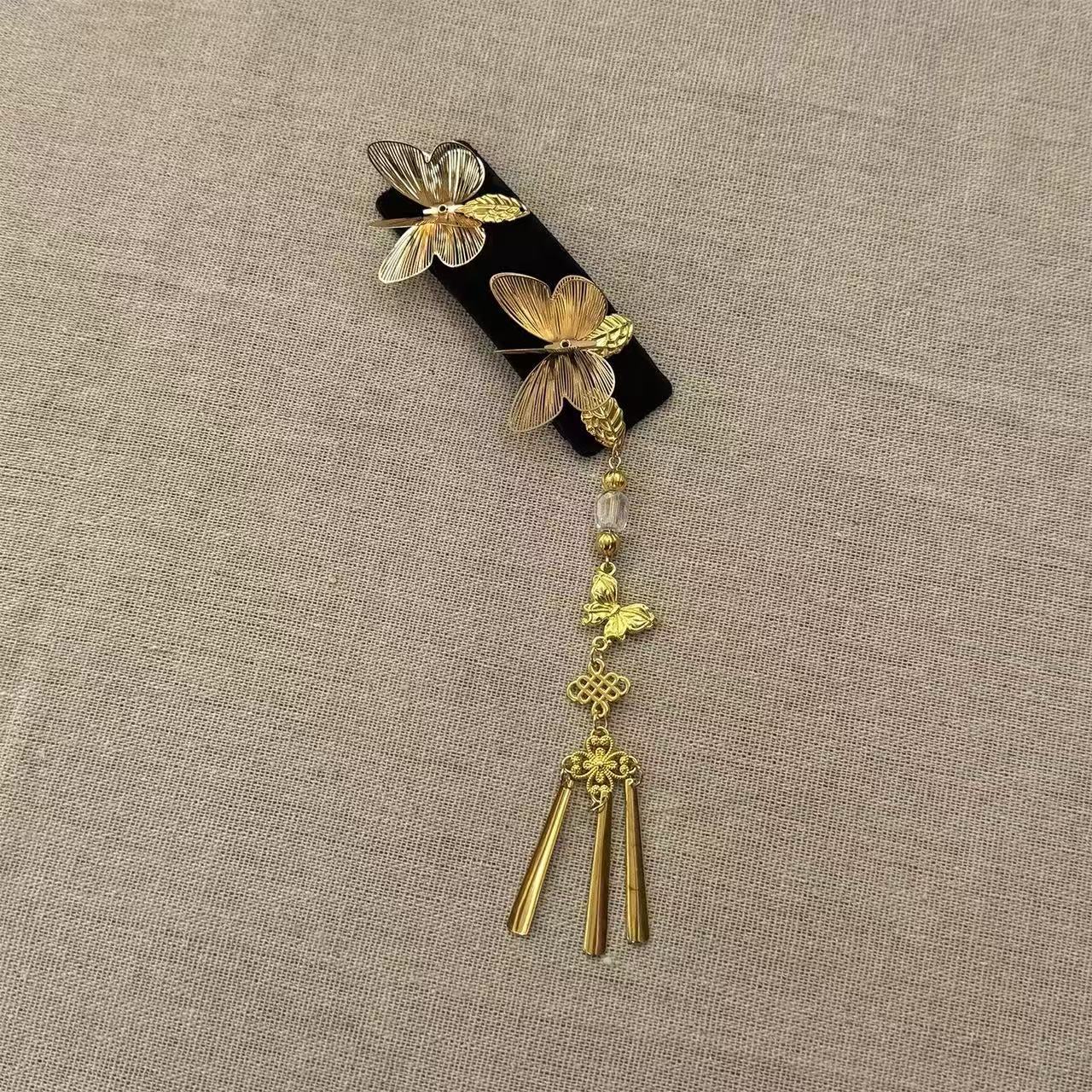 新中式金色双蝴蝶流苏发夹女复古民族风高级感发卡古风精致侧边夹