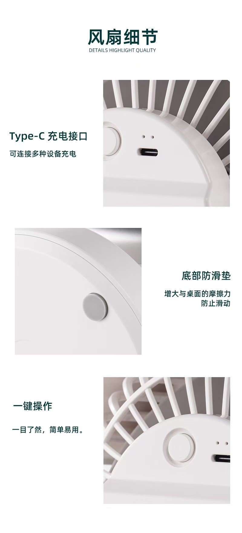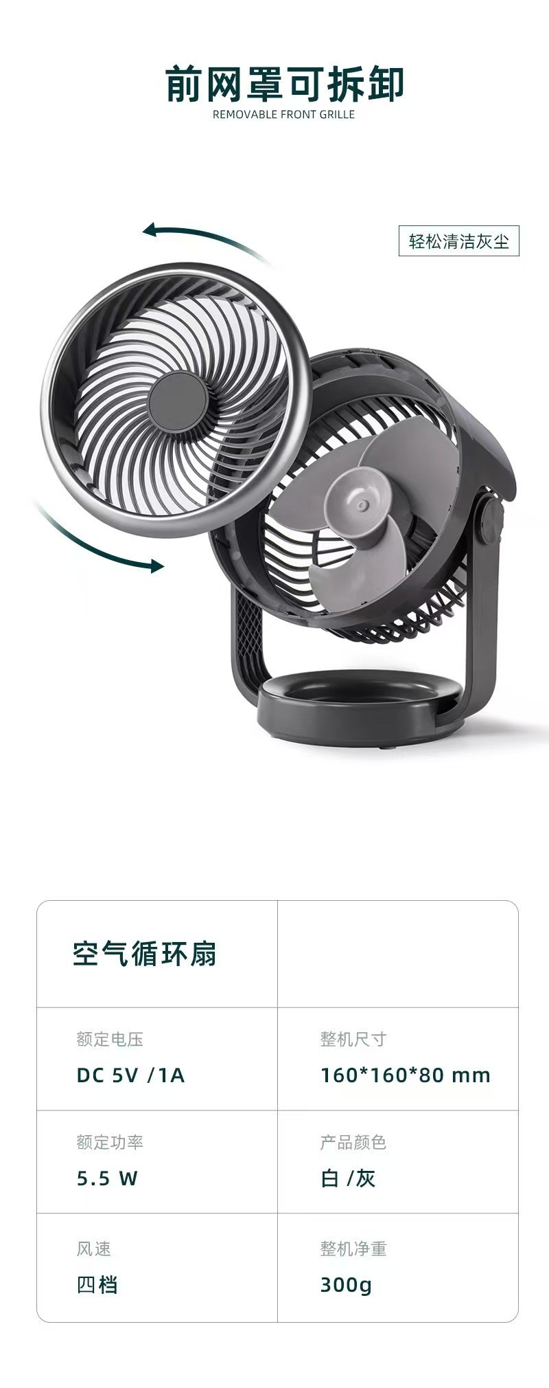 静音桌面风扇便携式学生宿舍床头办公室循环风扇办公桌usb台式扇