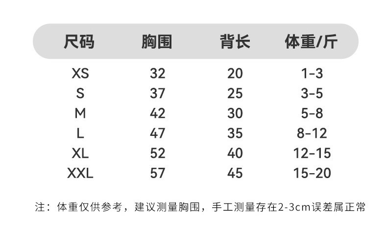 | XS(建议体重1-3斤) | USD $3.07 | 57 piece available |