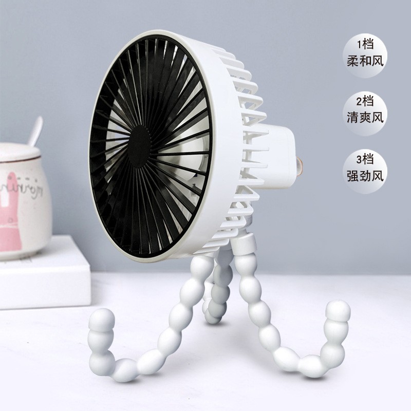跨境新品八爪鱼风扇usb充电桌面手持婴儿车夹子便携式静音小风扇