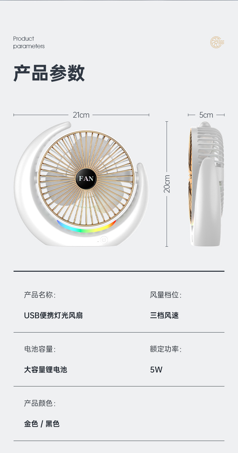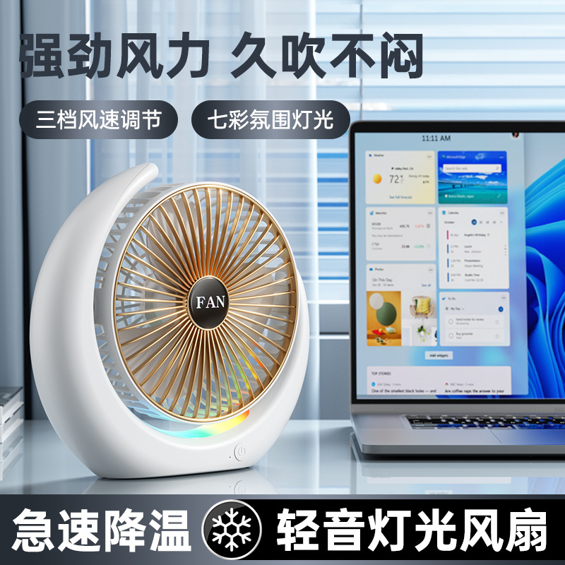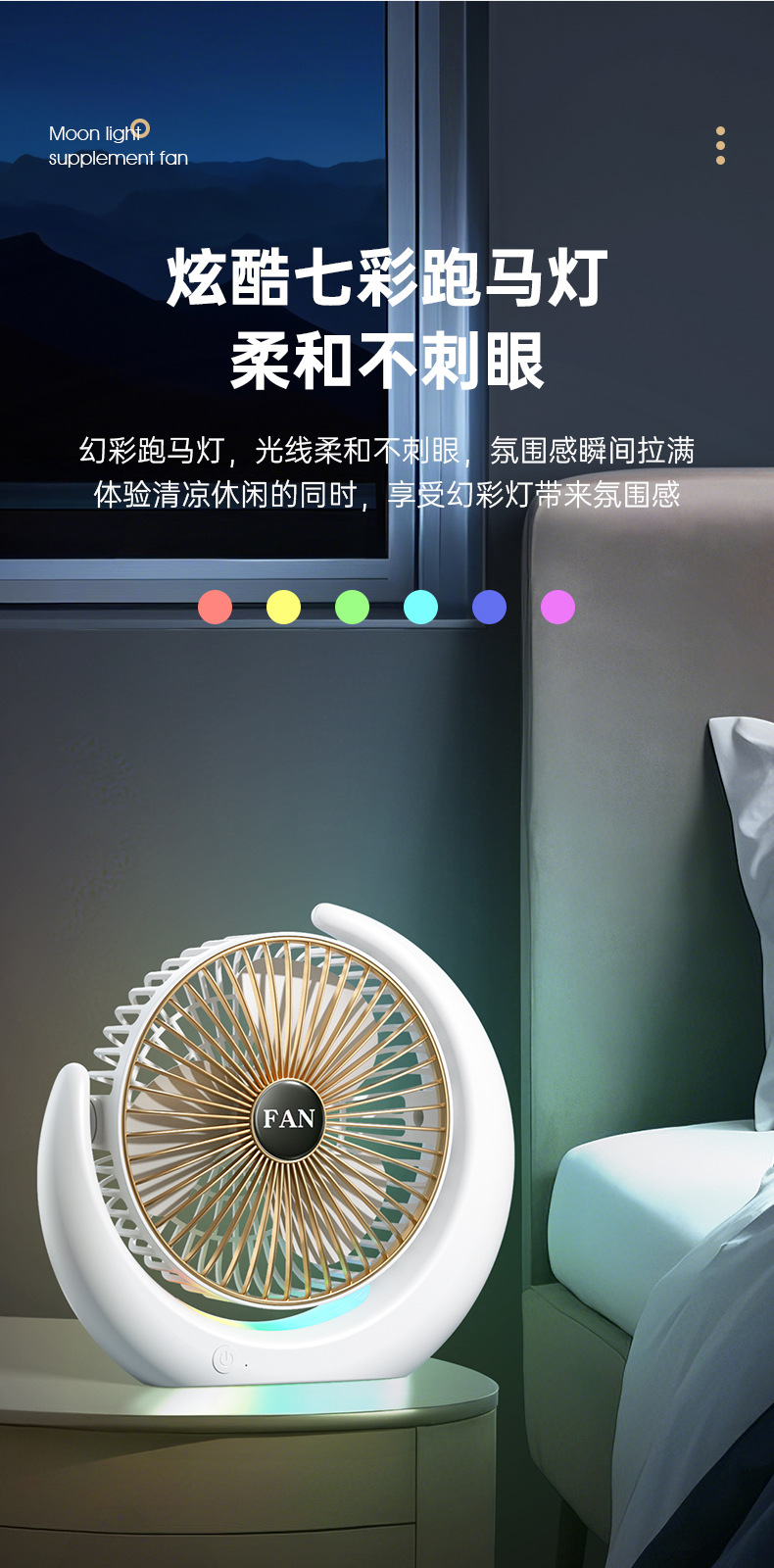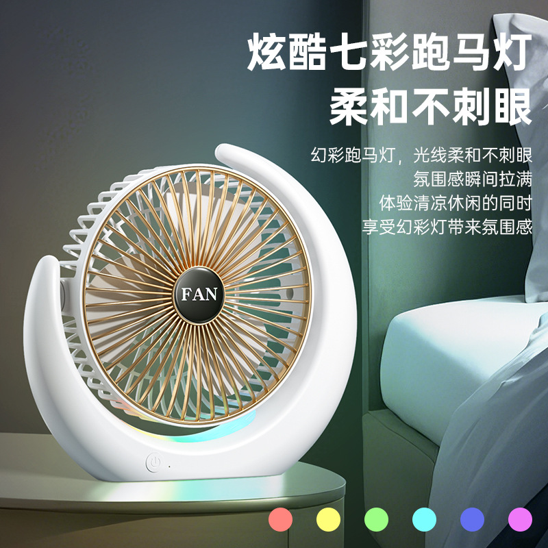 彩色跑马灯风扇usb充电式便携小风扇办公学生宿舍迷你桌面风扇