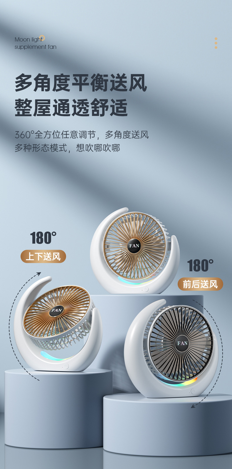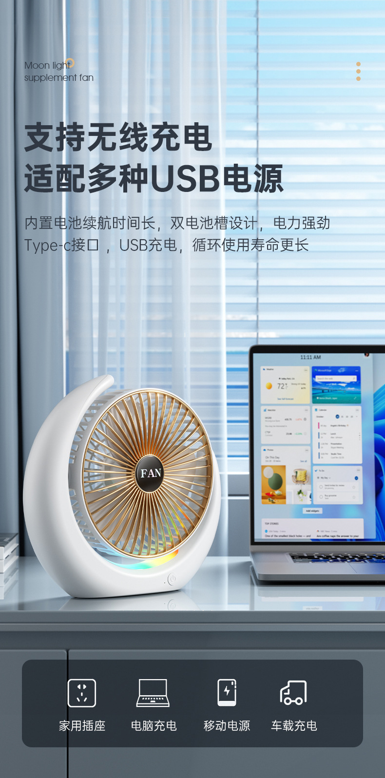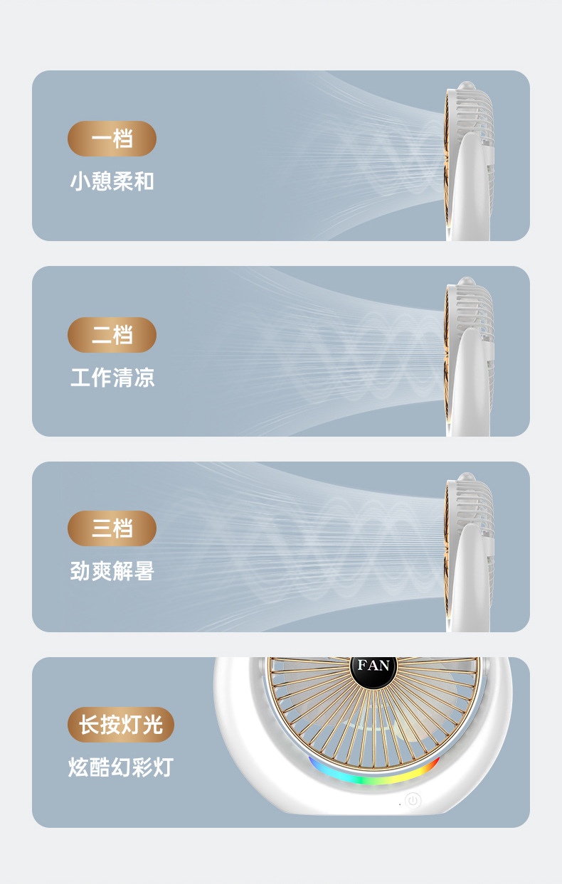 彩色跑马灯风扇usb充电式便携小风扇办公学生宿舍迷你桌面风扇