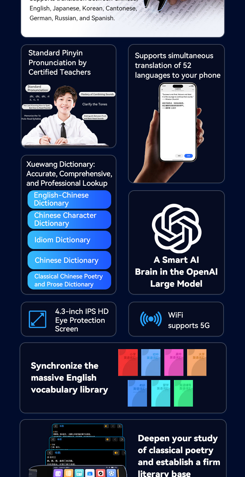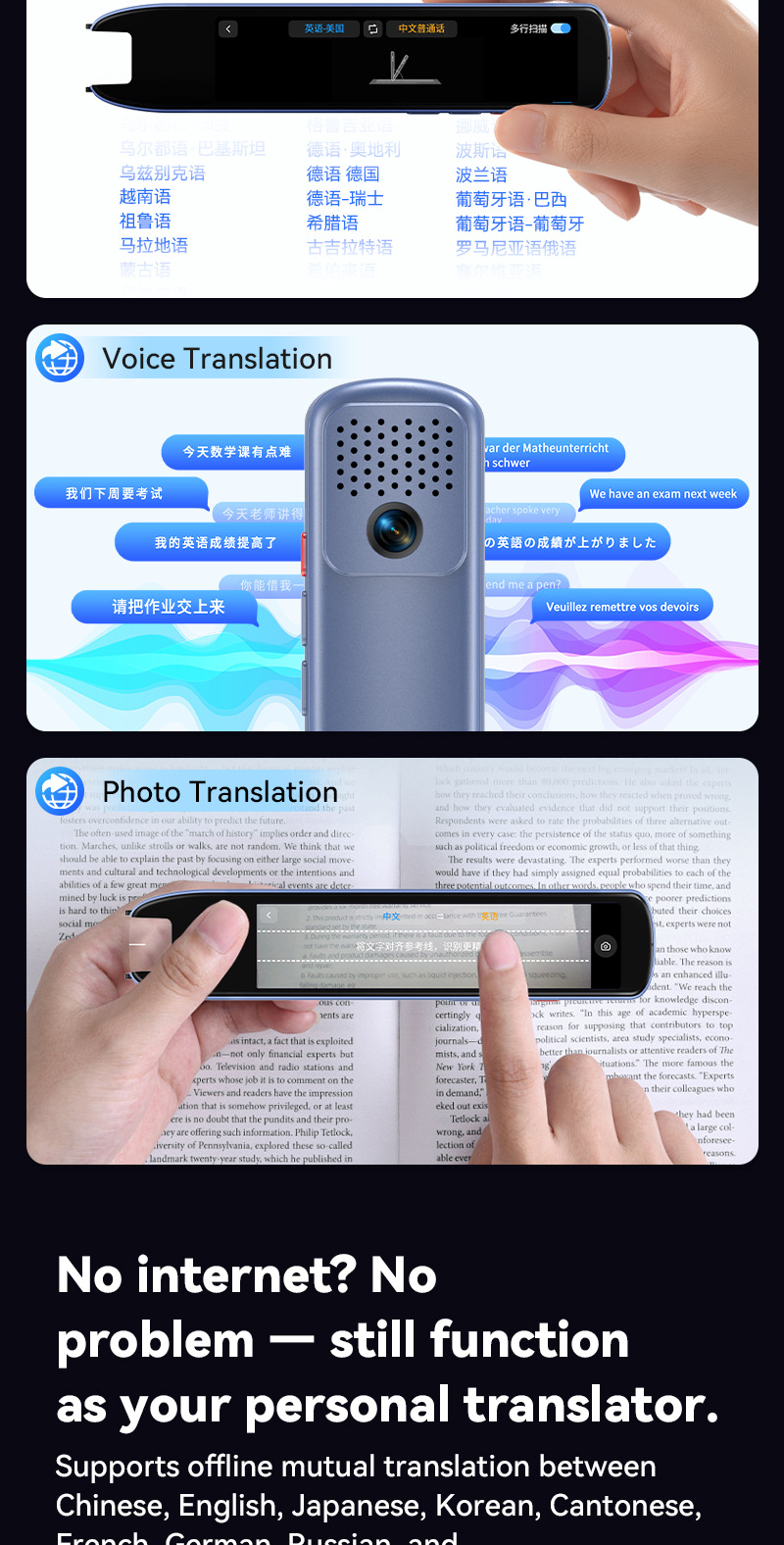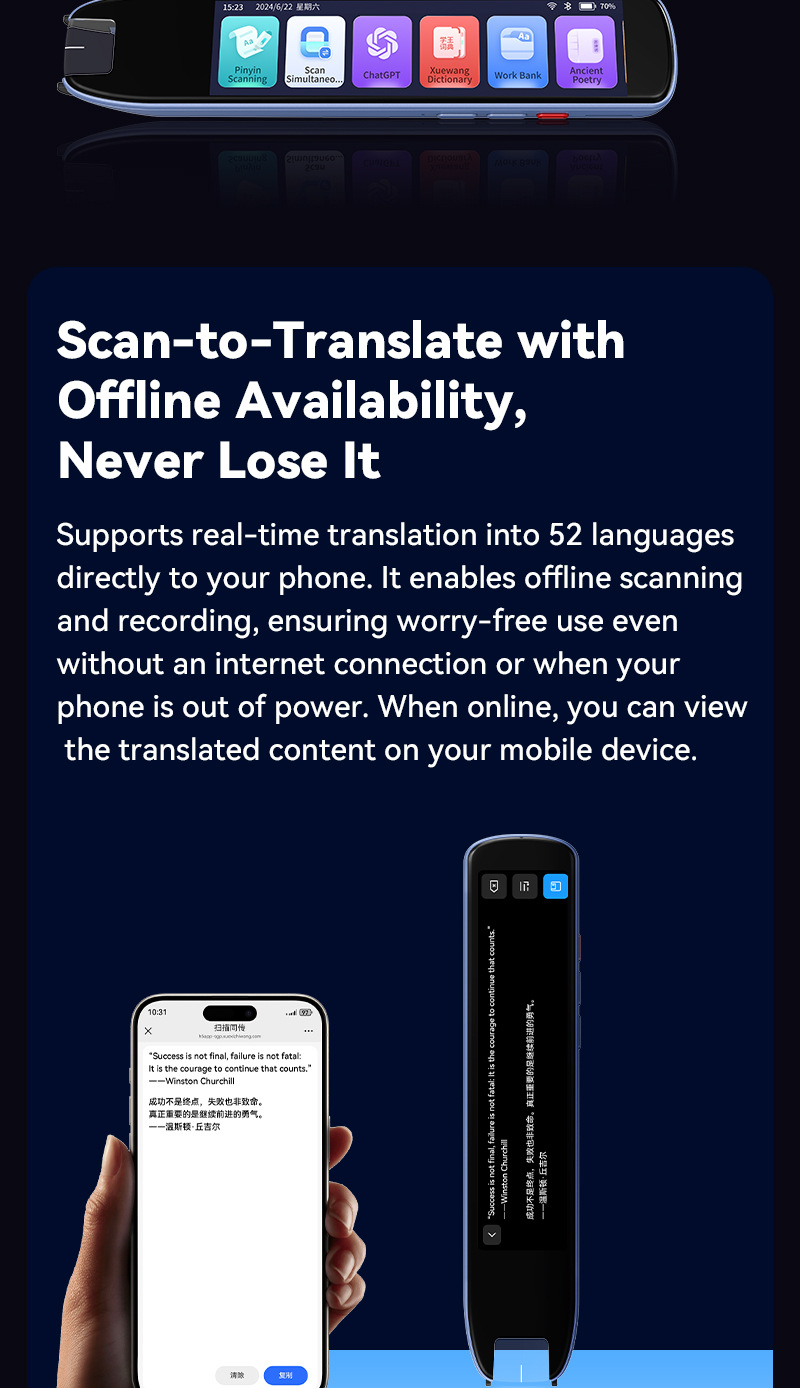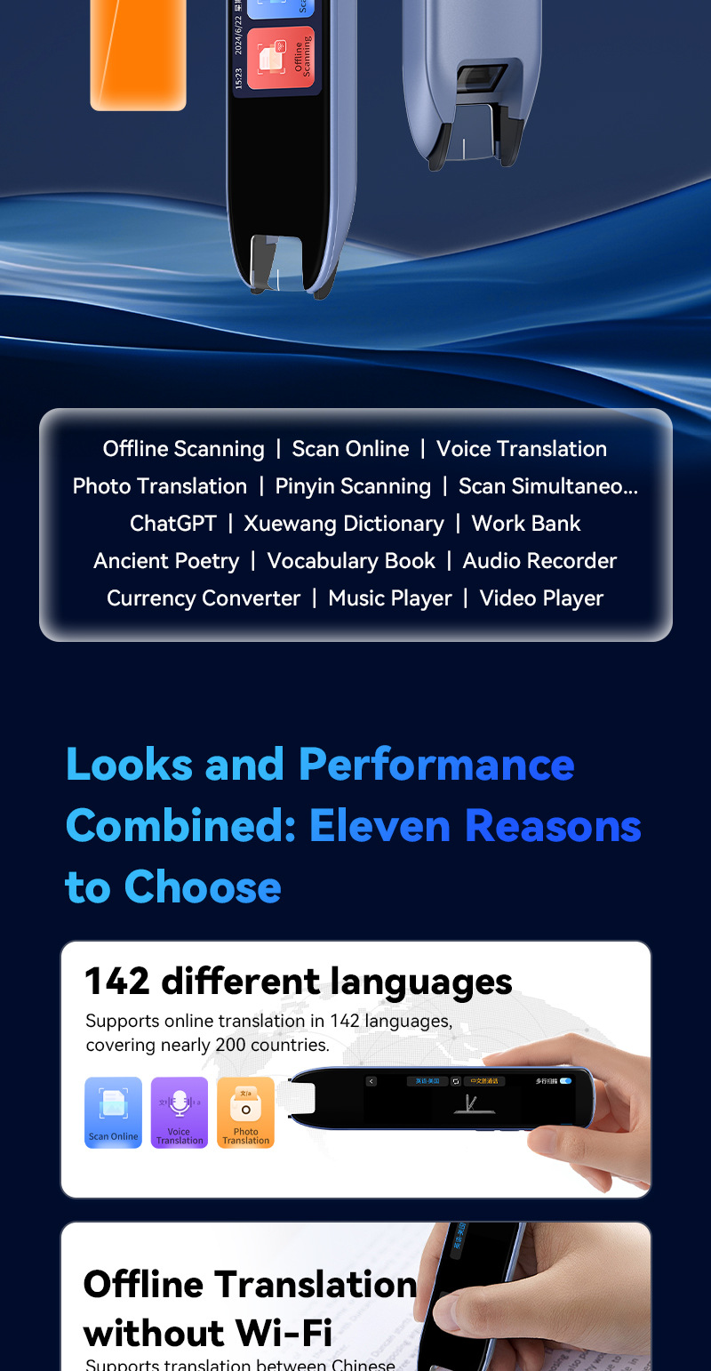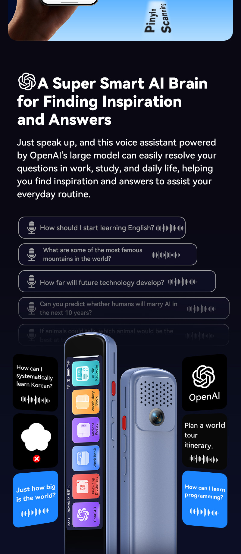 外贸版GPT扫描Ai翻译词典笔中英德法日韩粤语繁体多语言扫题答疑