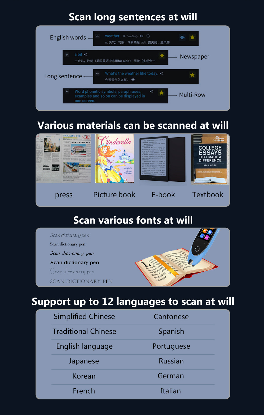 跨境热销S50智能语音翻译笔拍照翻译录音翻译WIFI翻译机智能扫描