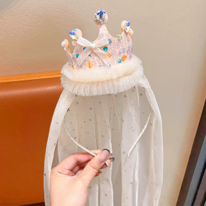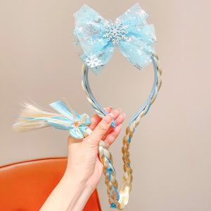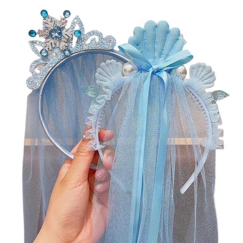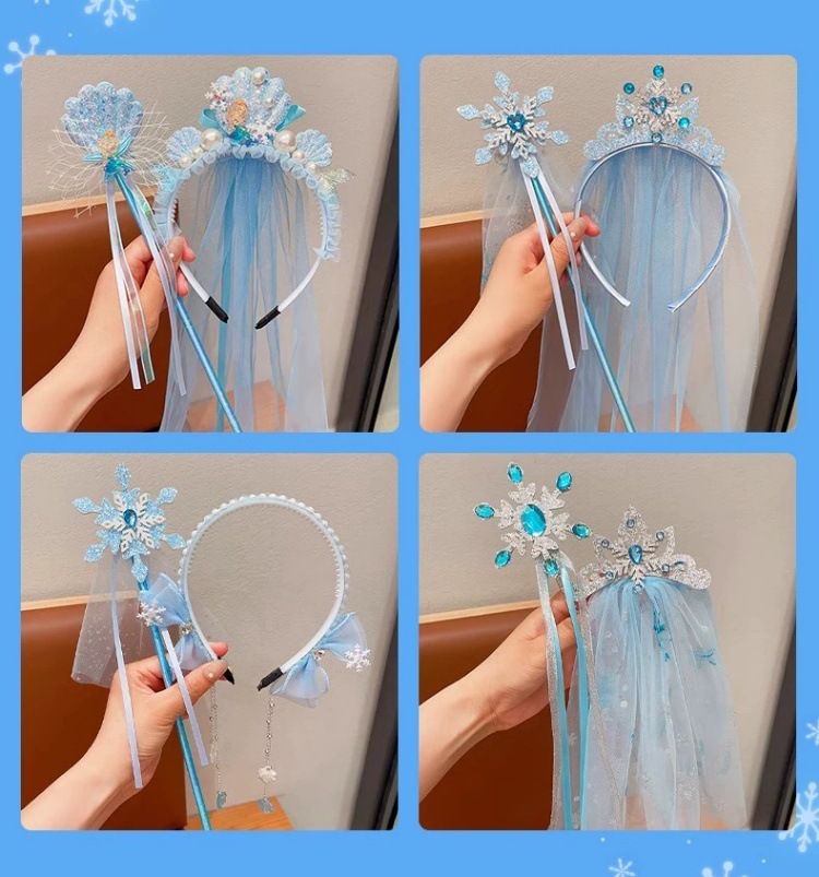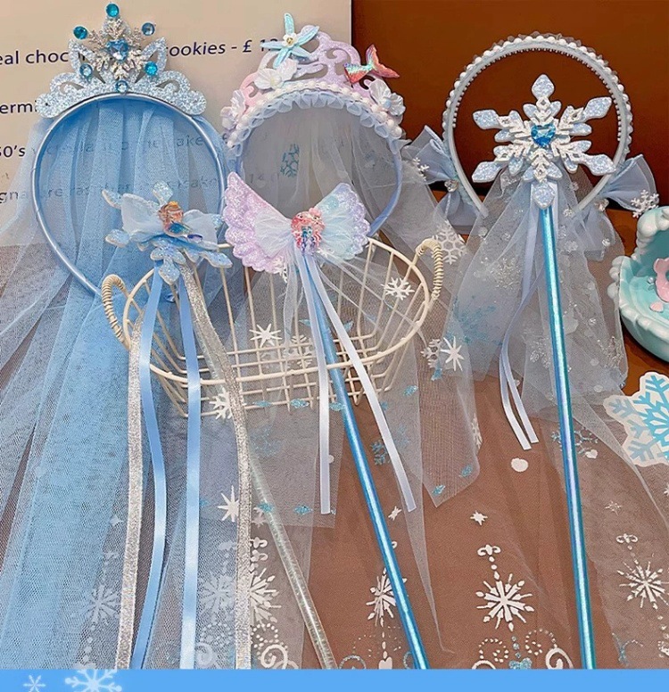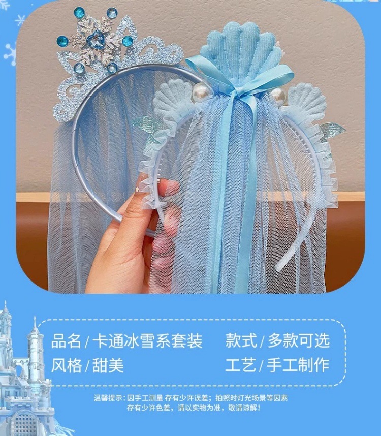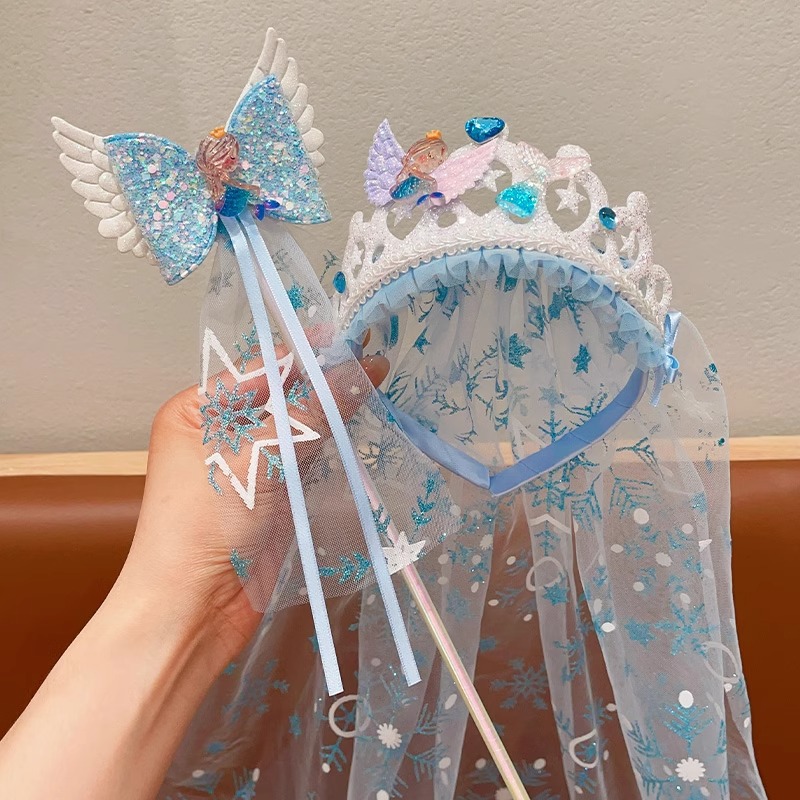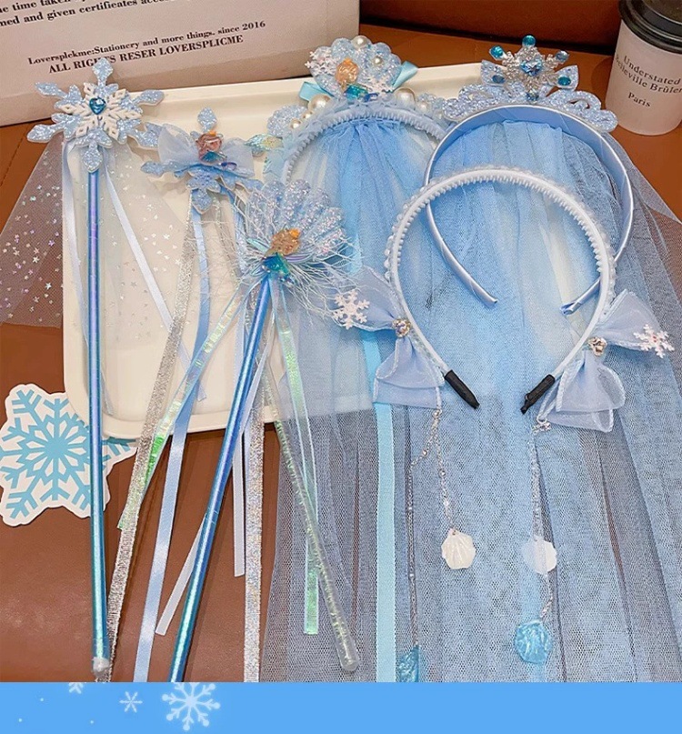 爱莎头饰女童冰雪奇缘发饰皇冠头纱魔法棒公主蝴蝶结假发发夹发箍