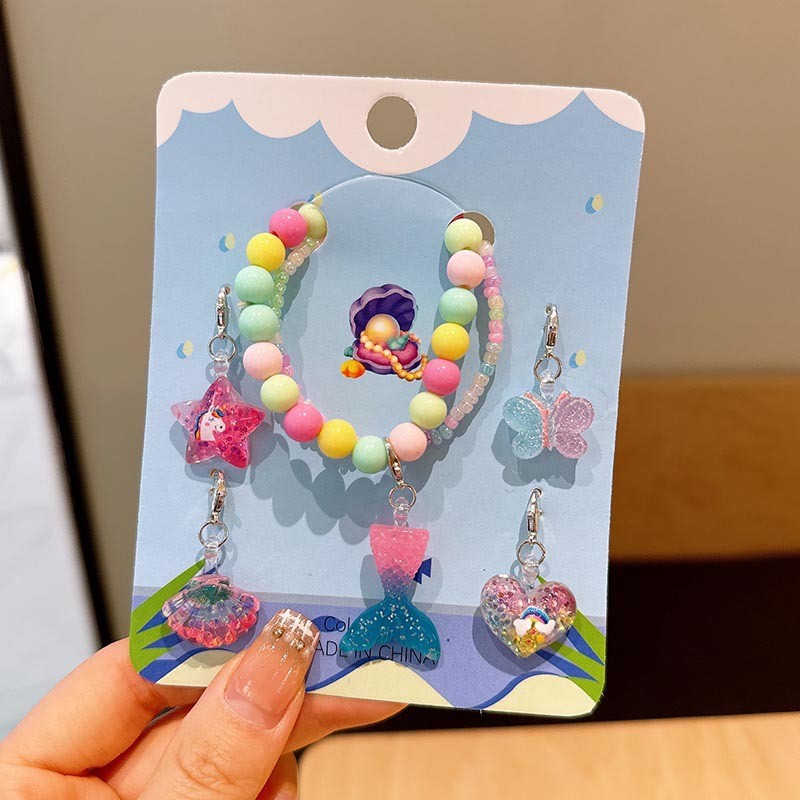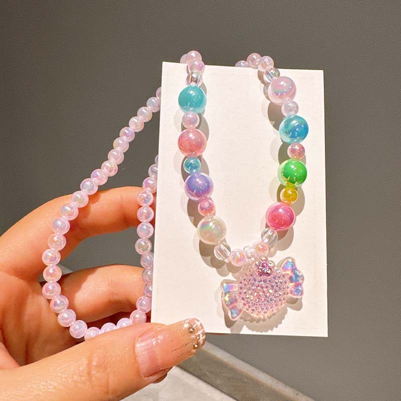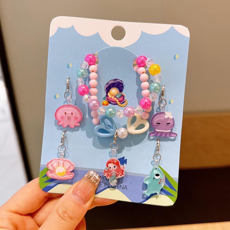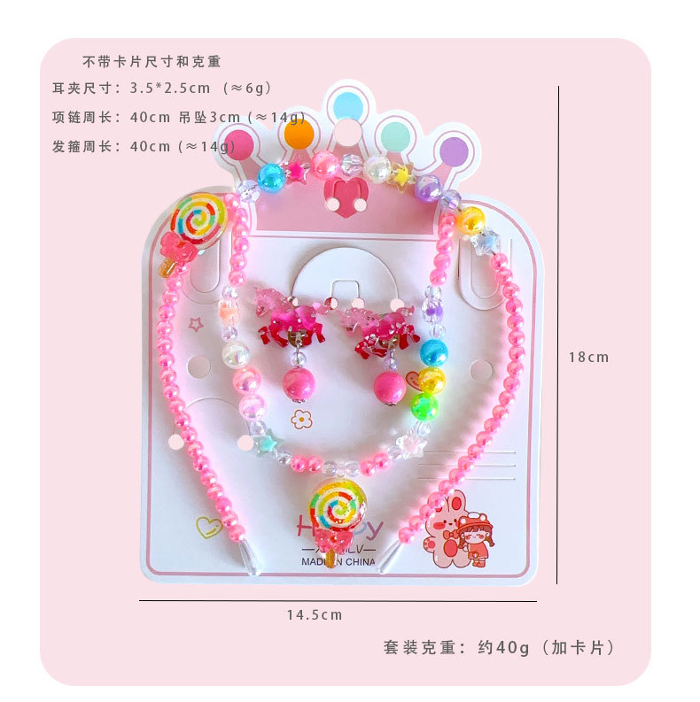 跨境新款儿童项链首饰套装炫彩串珠手链卡通发箍耳环公主女童配饰