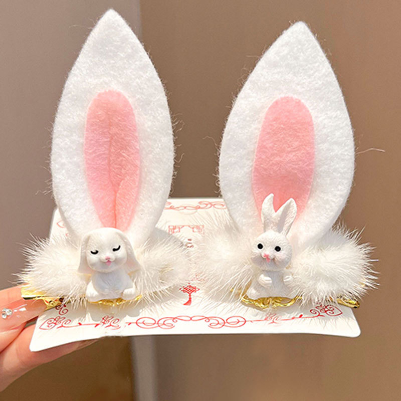 儿童古风发夹粉色毛球流苏发卡可爱兔耳朵头饰女宝宝2025冬季发饰