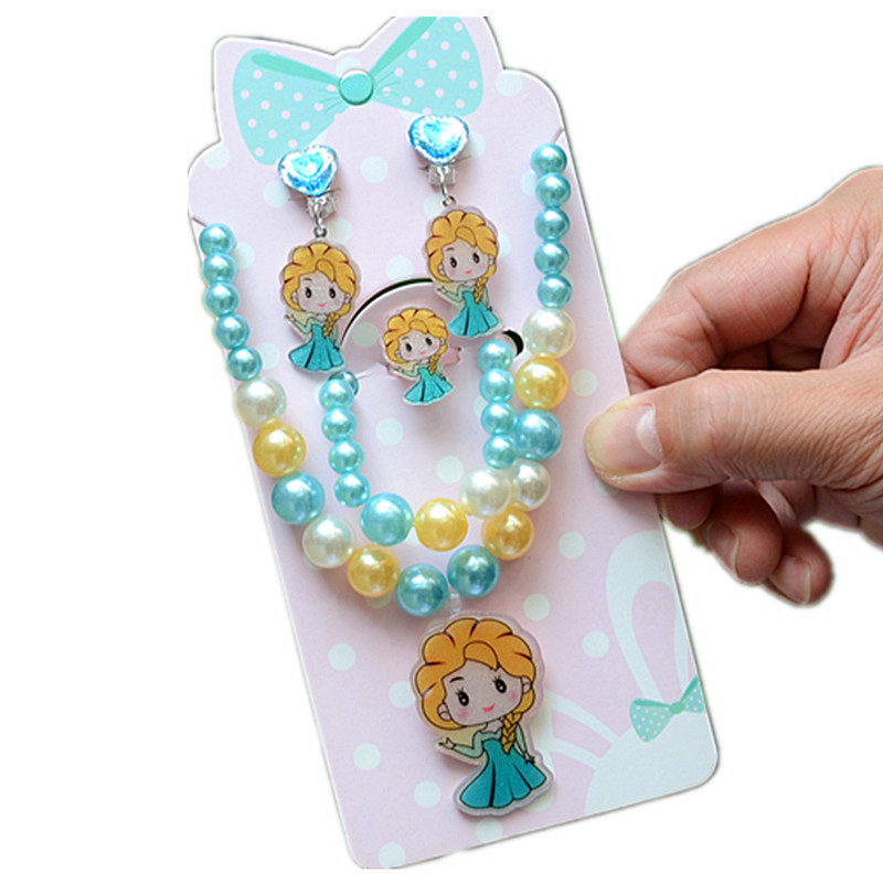 儿童新款饰品冰雪奇缘艾莎公主灰姑娘吊坠项链手链耳环套装