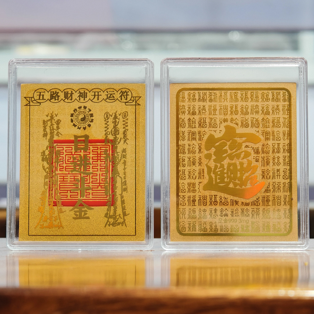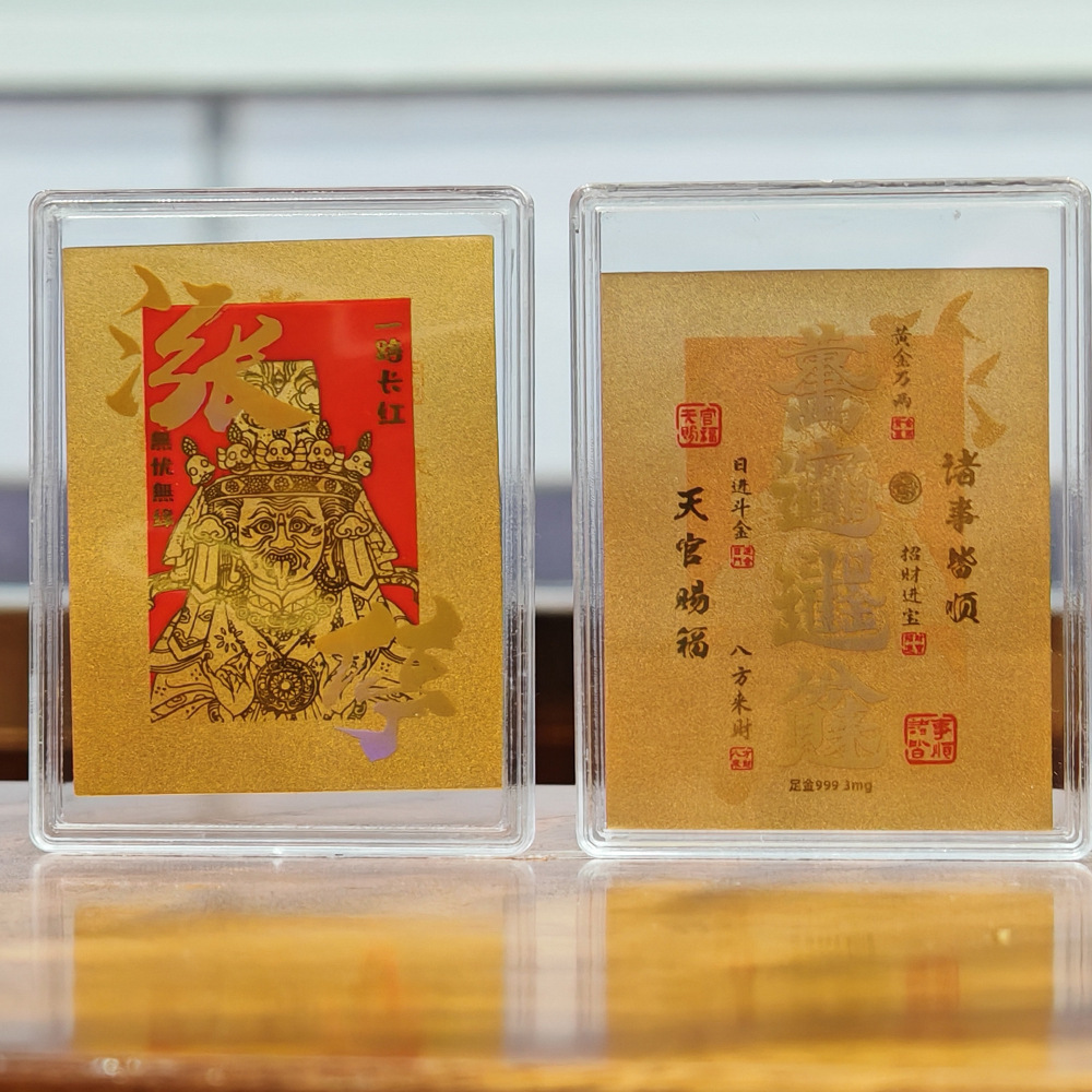 足金999黄金手机贴逢考必过五路财神冰箱贴赠送礼物直播引流 批发