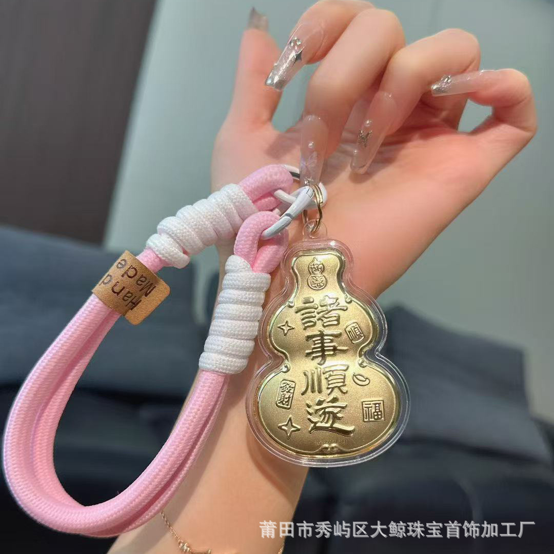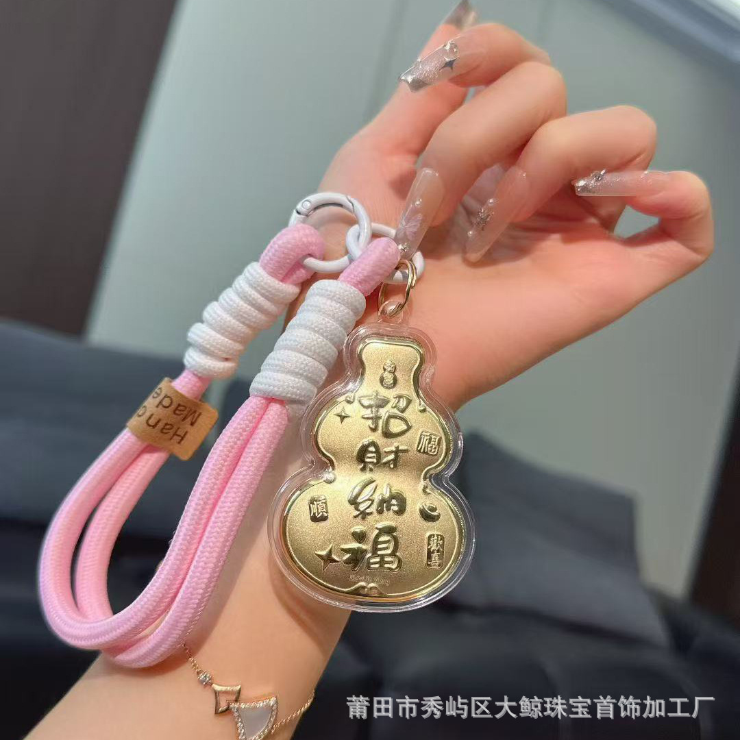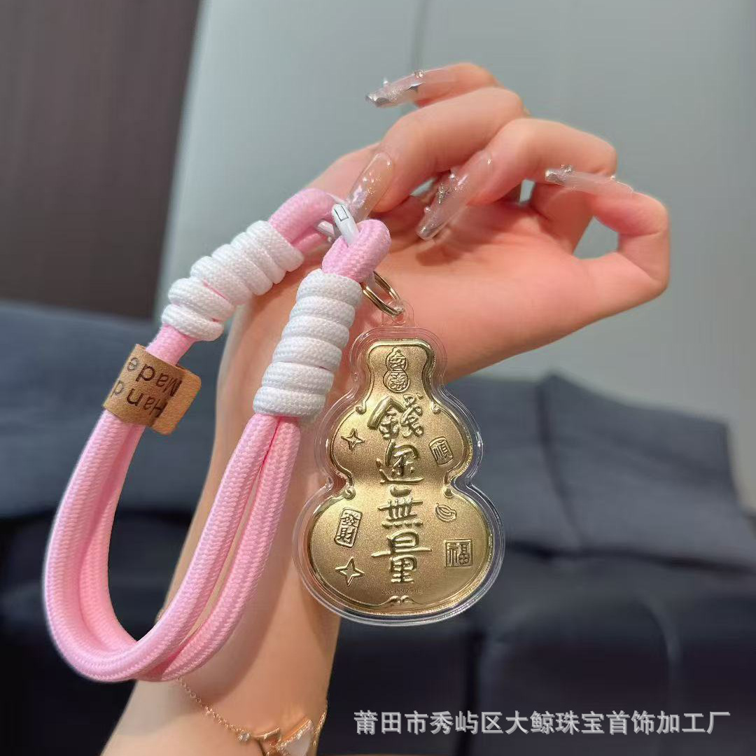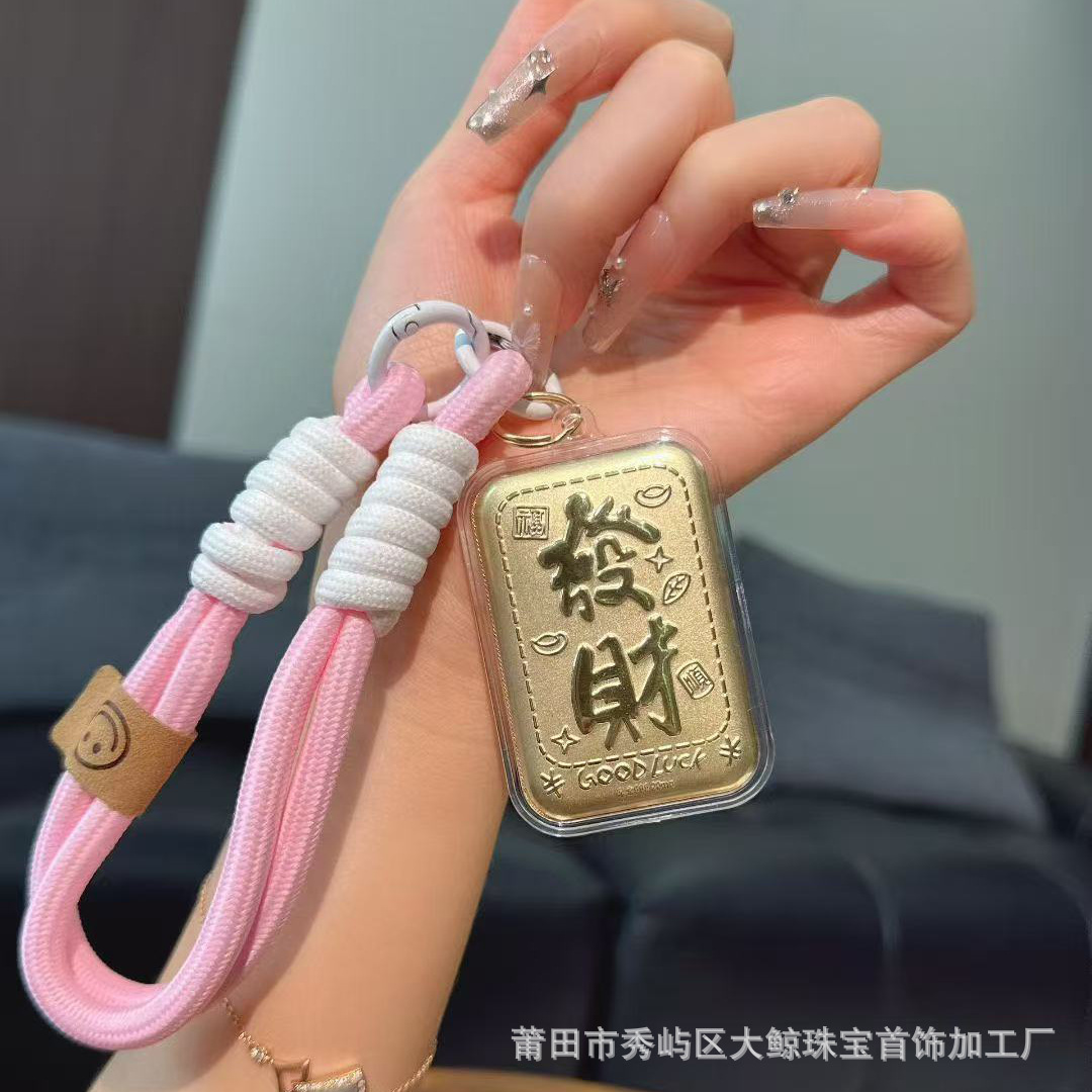 足金999手机链挂饰天官赐福奉旨发财挂绳车钥匙扣包包挂礼品礼物