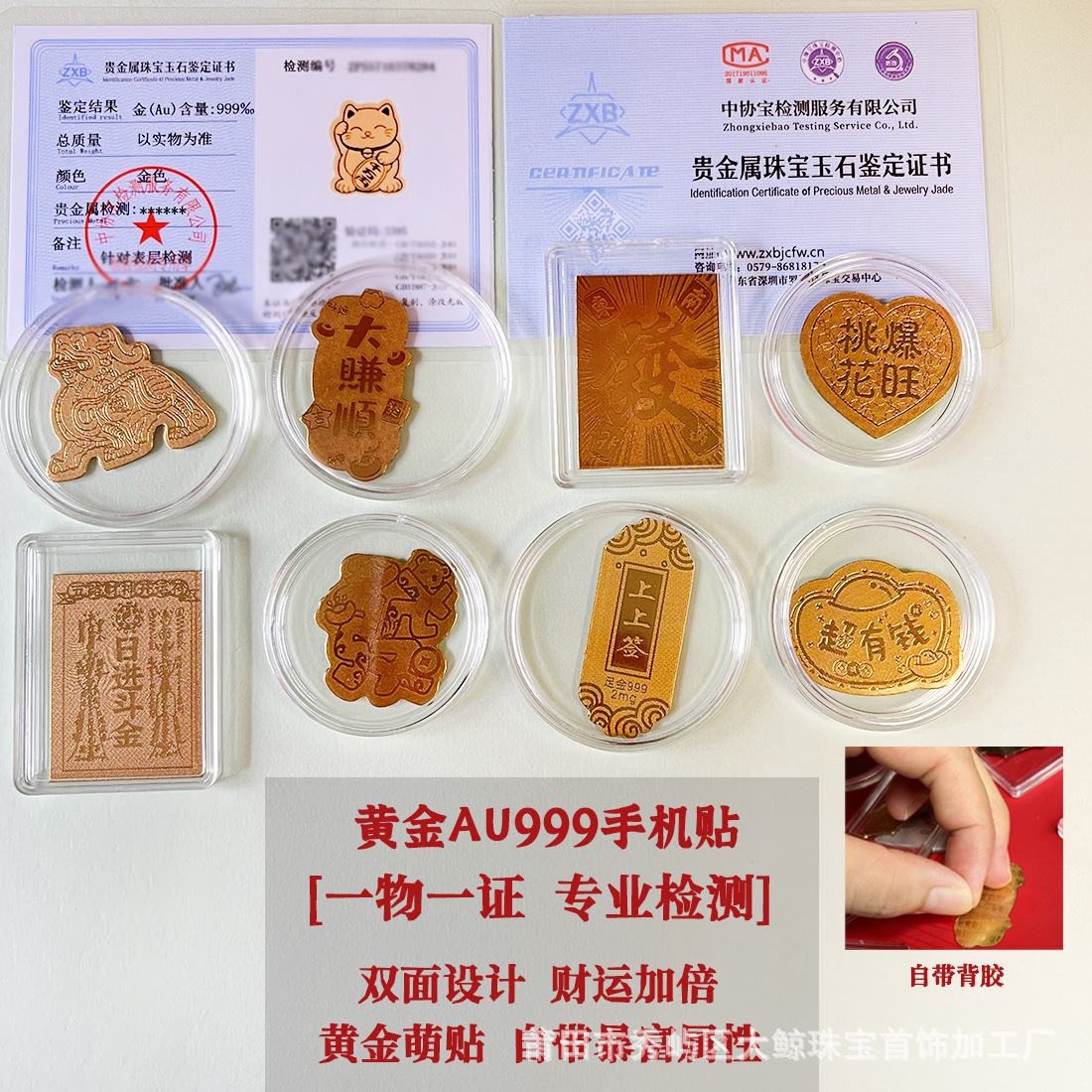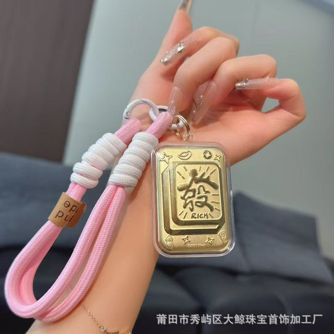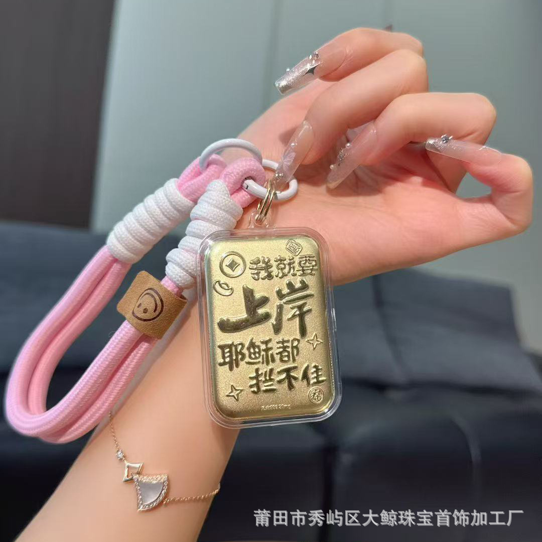 足金999手机链挂饰天官赐福奉旨发财挂绳车钥匙扣包包挂礼品礼物