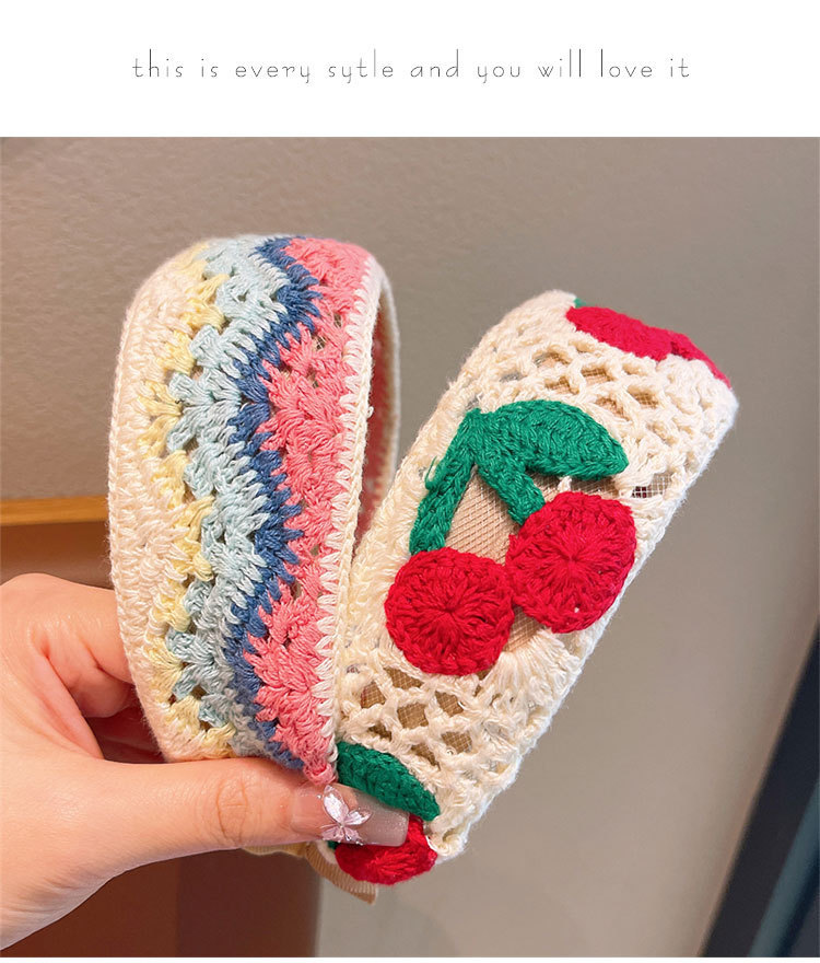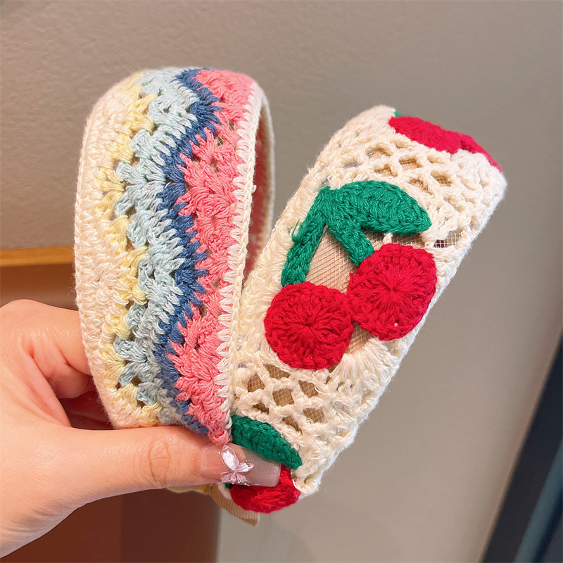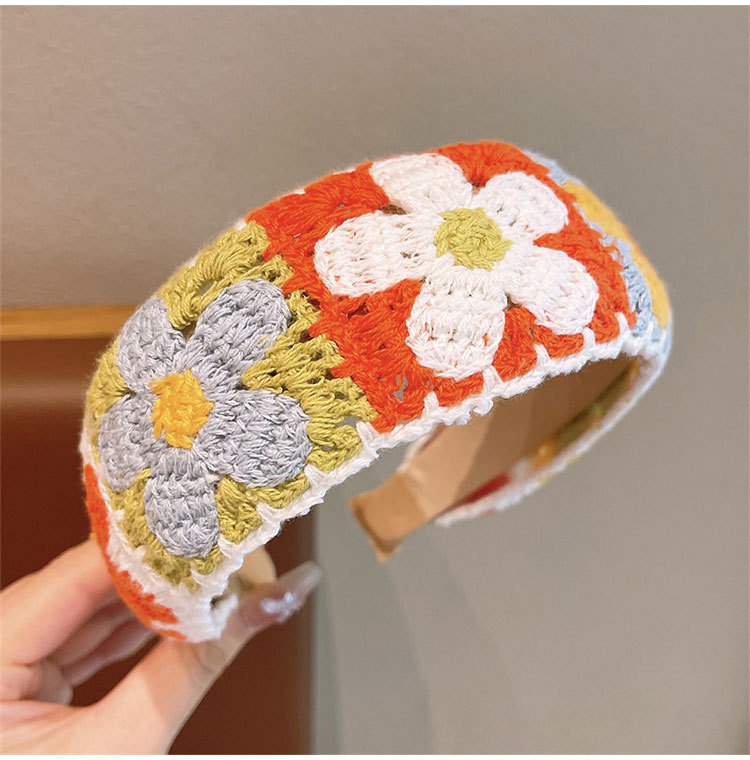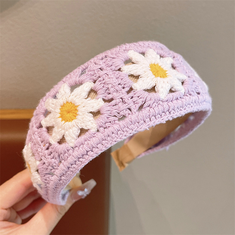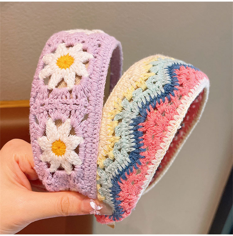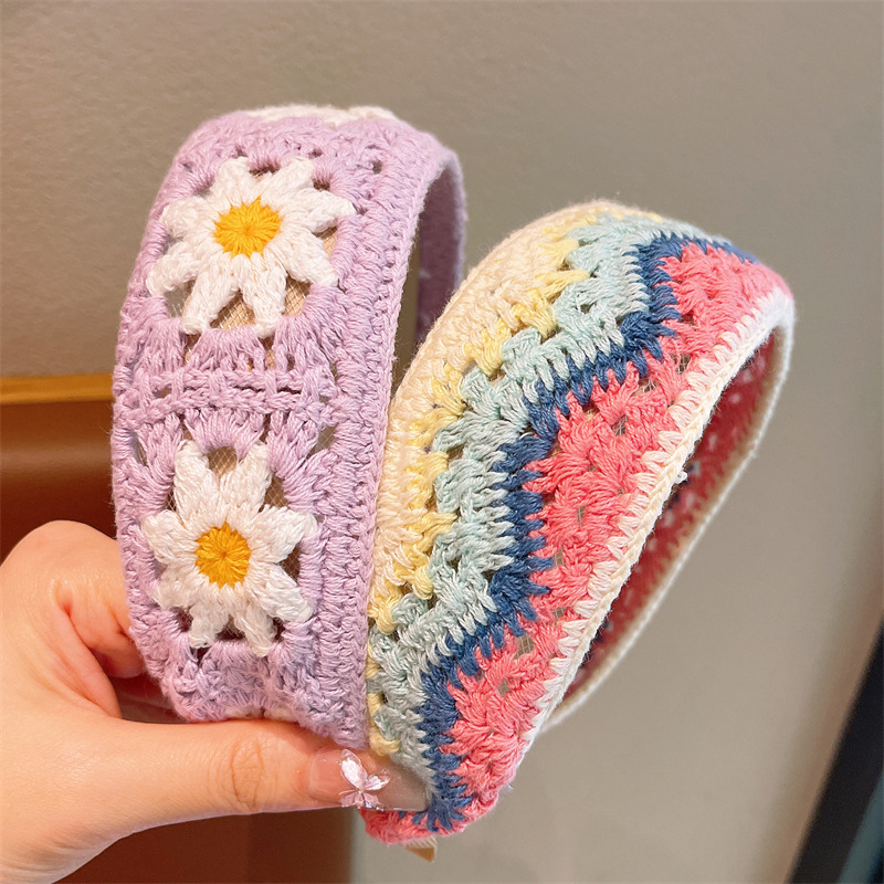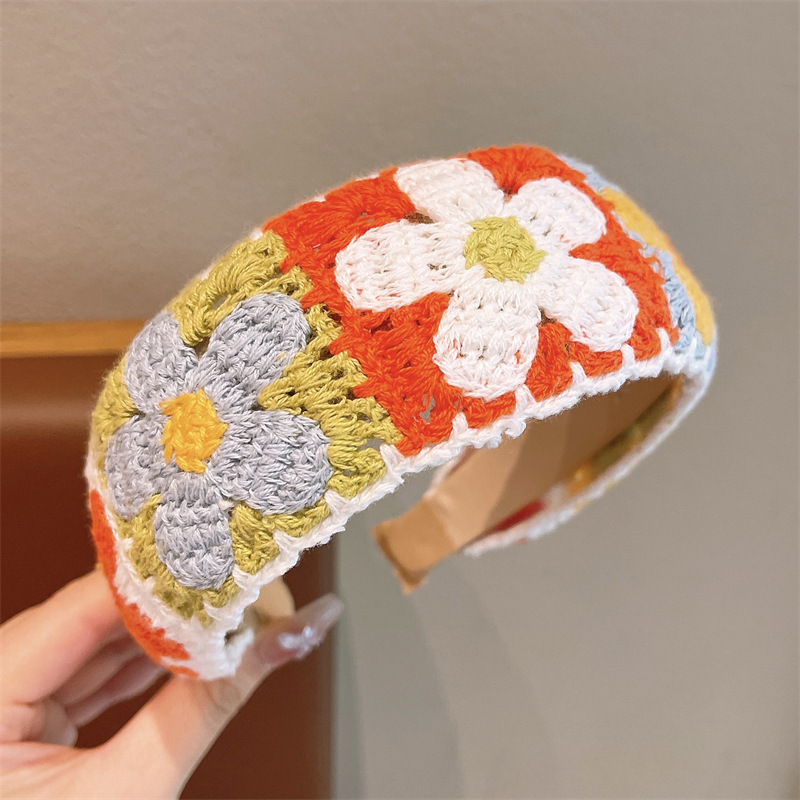 儿童针织刺绣毛线花朵发箍女孩整理碎发神器女童宽边头箍刘海发卡