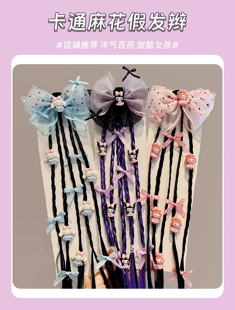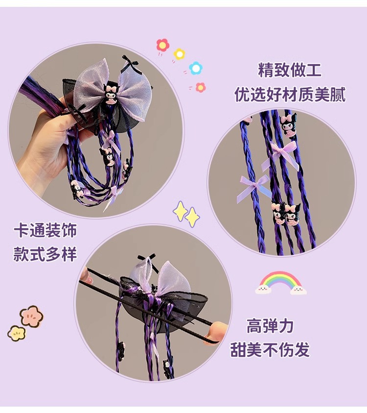 儿童库洛米假发辫子发圈发绳头饰甜酷小女孩新款拳击辫高马尾头绳