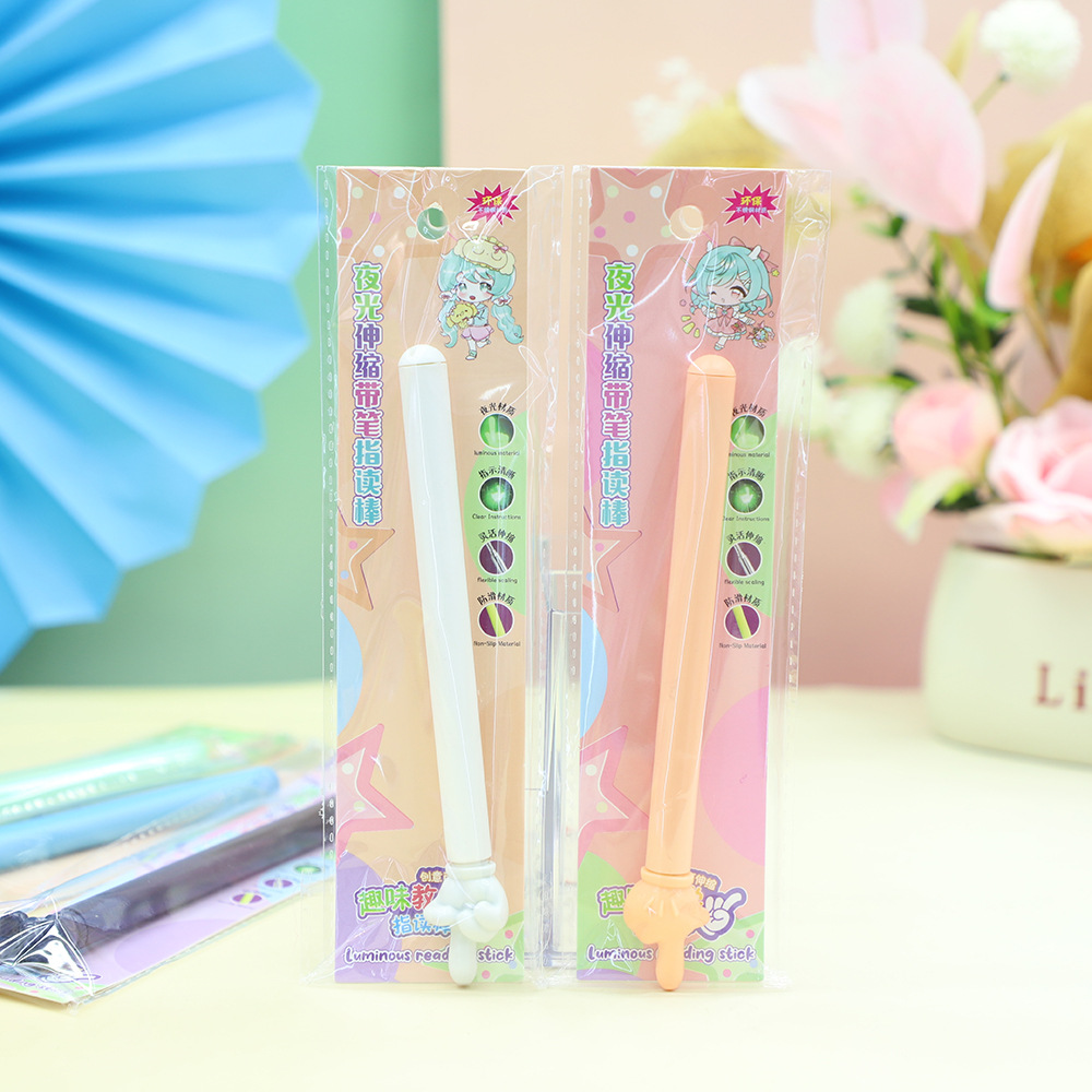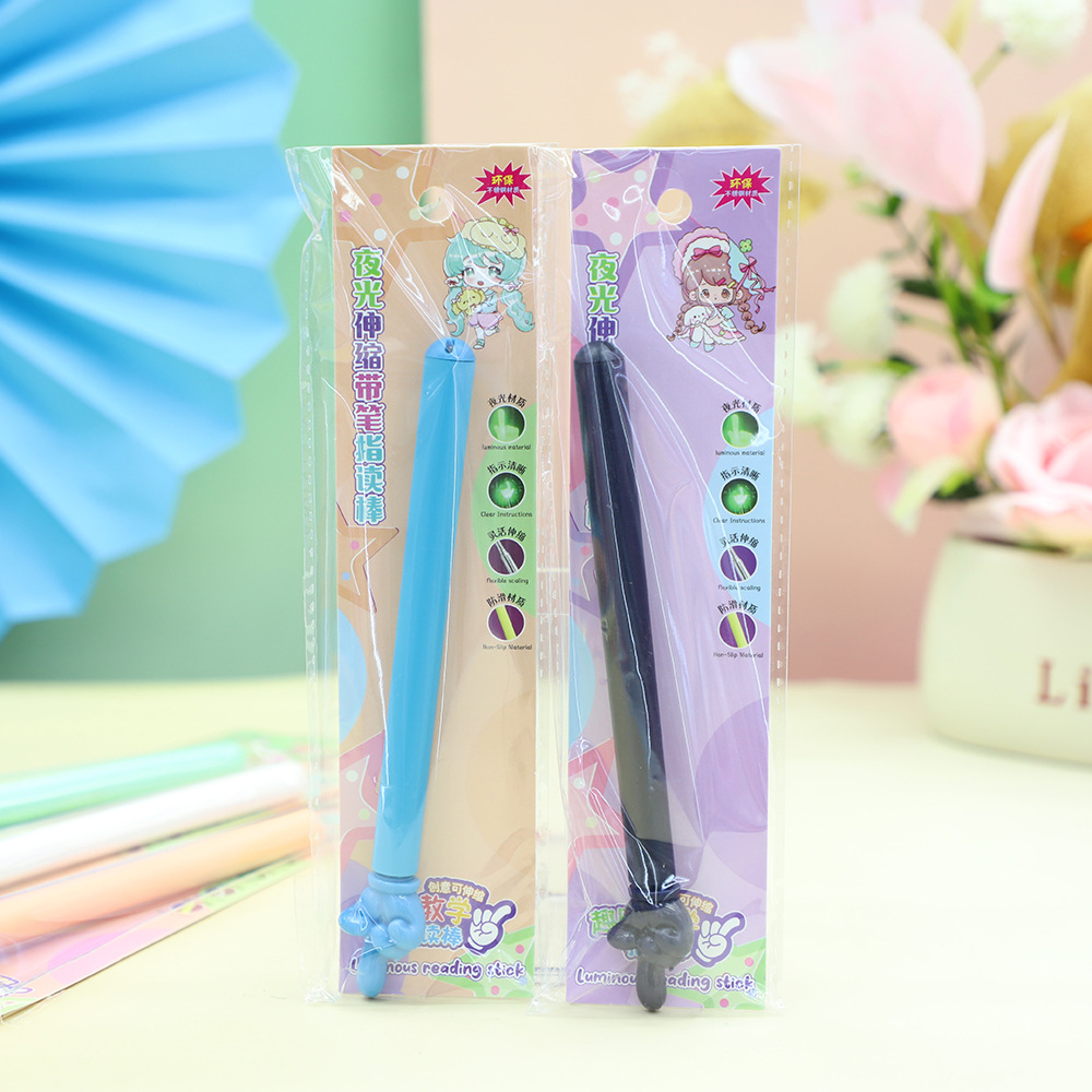 夜光伸缩带笔指读棒可爱卡通设计便携写字神器 多色可选 现货批发